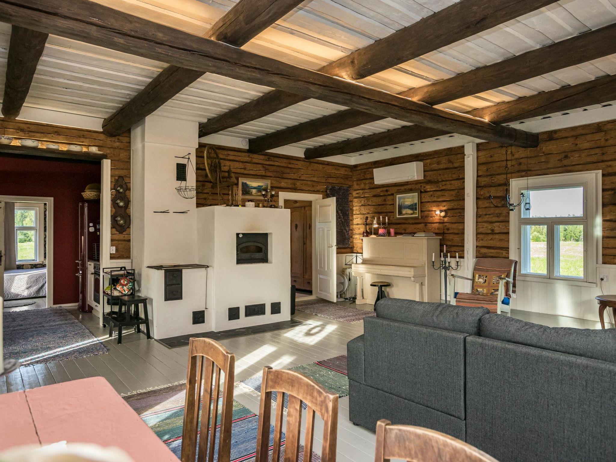 The cottage also has a wood stove and baking oven. Ceramic hob and convection oven. The dishwasher is a small table model.