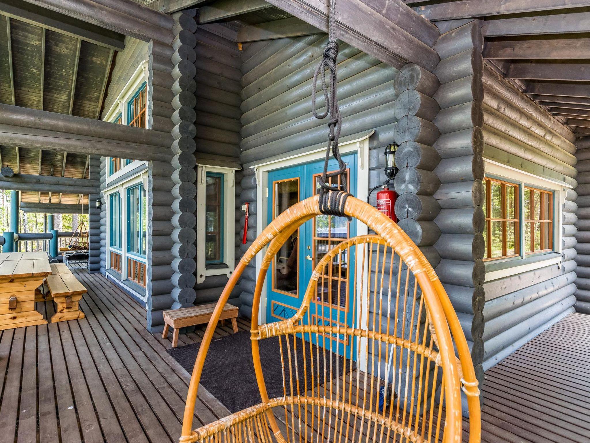 Log cottage 2005, kitchen, dining room, living room, two bedrooms, both with 2 separate beds, washroom, sauna (wood stove), utility room, separate toilet. Upstairs, two bedrooms, each with 2 separate beds. Large covered terrace, barbeque, bio toilet.