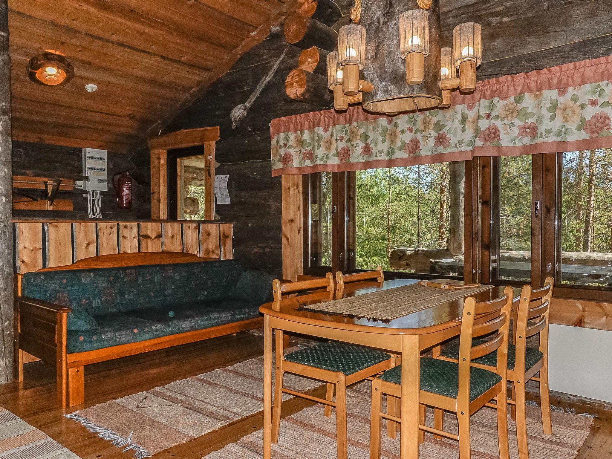 Log cottage, built in 2006. Living room-kitchen with wooden sofa bed, 2 bedrooms both with 2 single beds, loft with 2 mattresses (loft is low and stairs steep), sauna with wood stove, shower in the steam room, separate toilet and large covered terrace on the river side.
