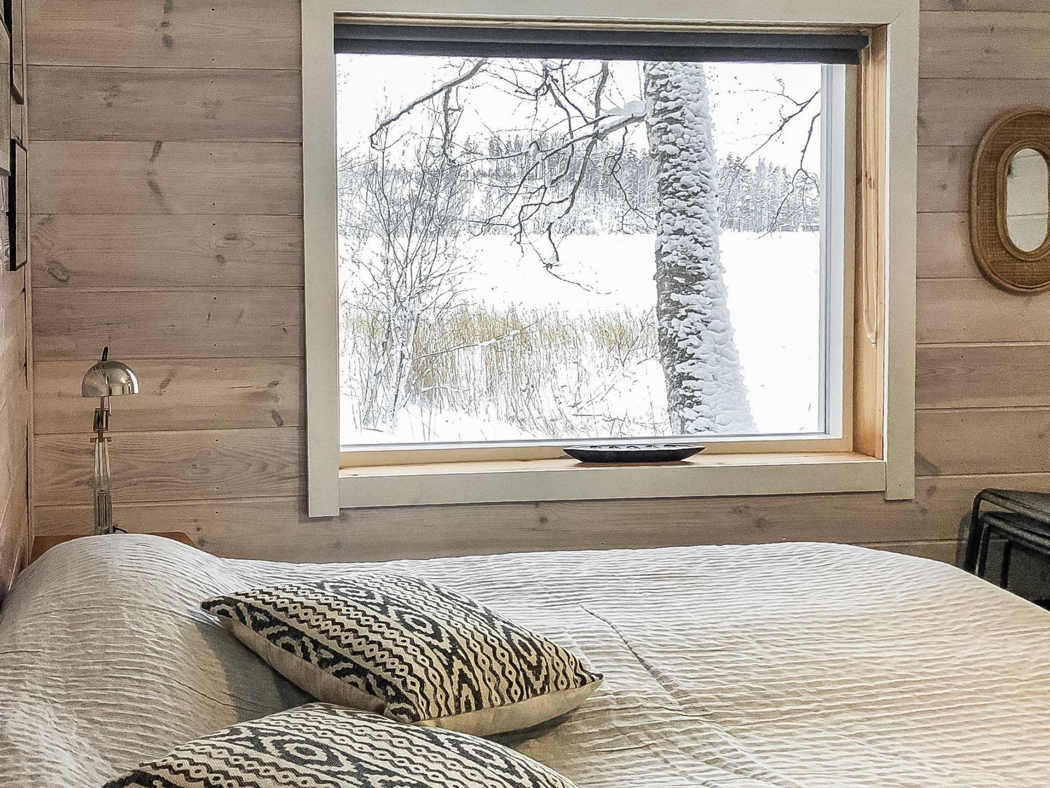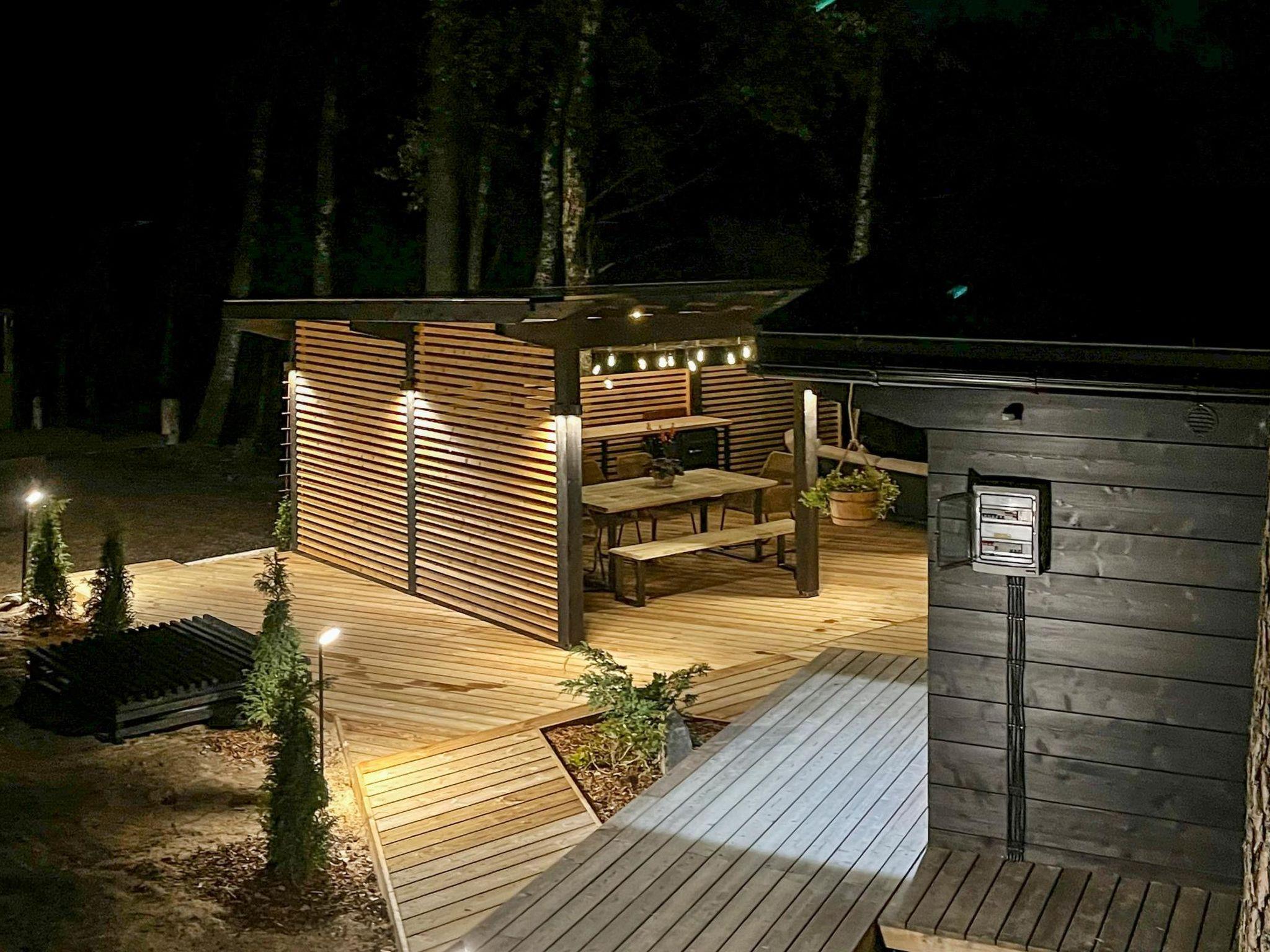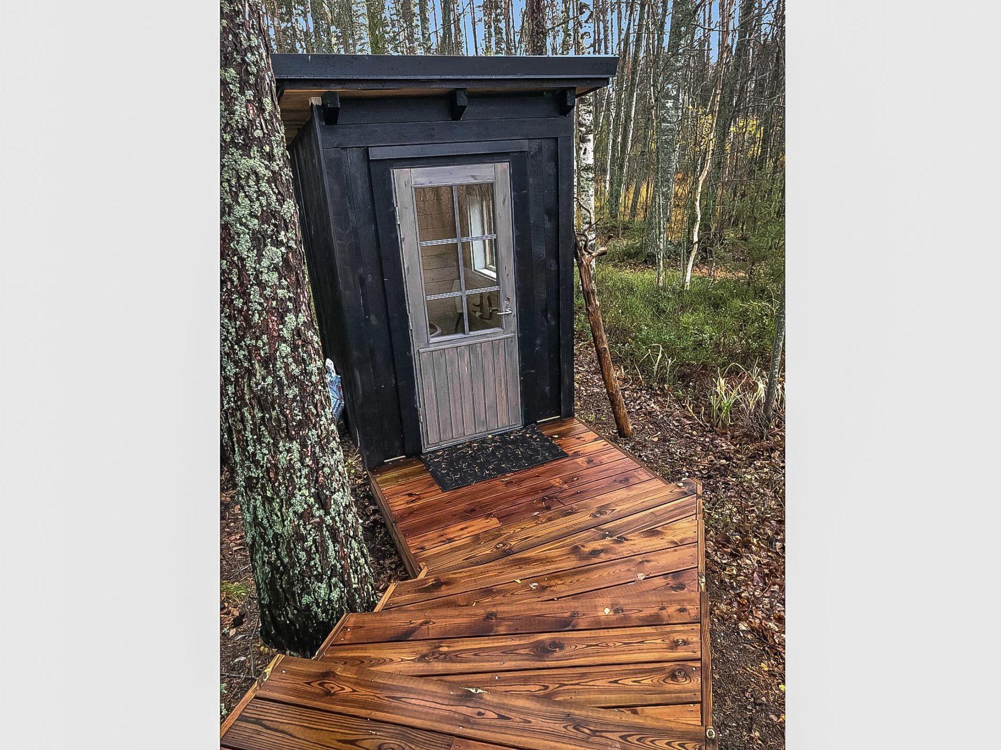 On the beach, there is a sauna building with dressing room, wood-burning sauna stove and large landscape window facing to the lake. Washing water to the sauna comes from a well by pump. Tank in connection with the sauna stove for heating the water.