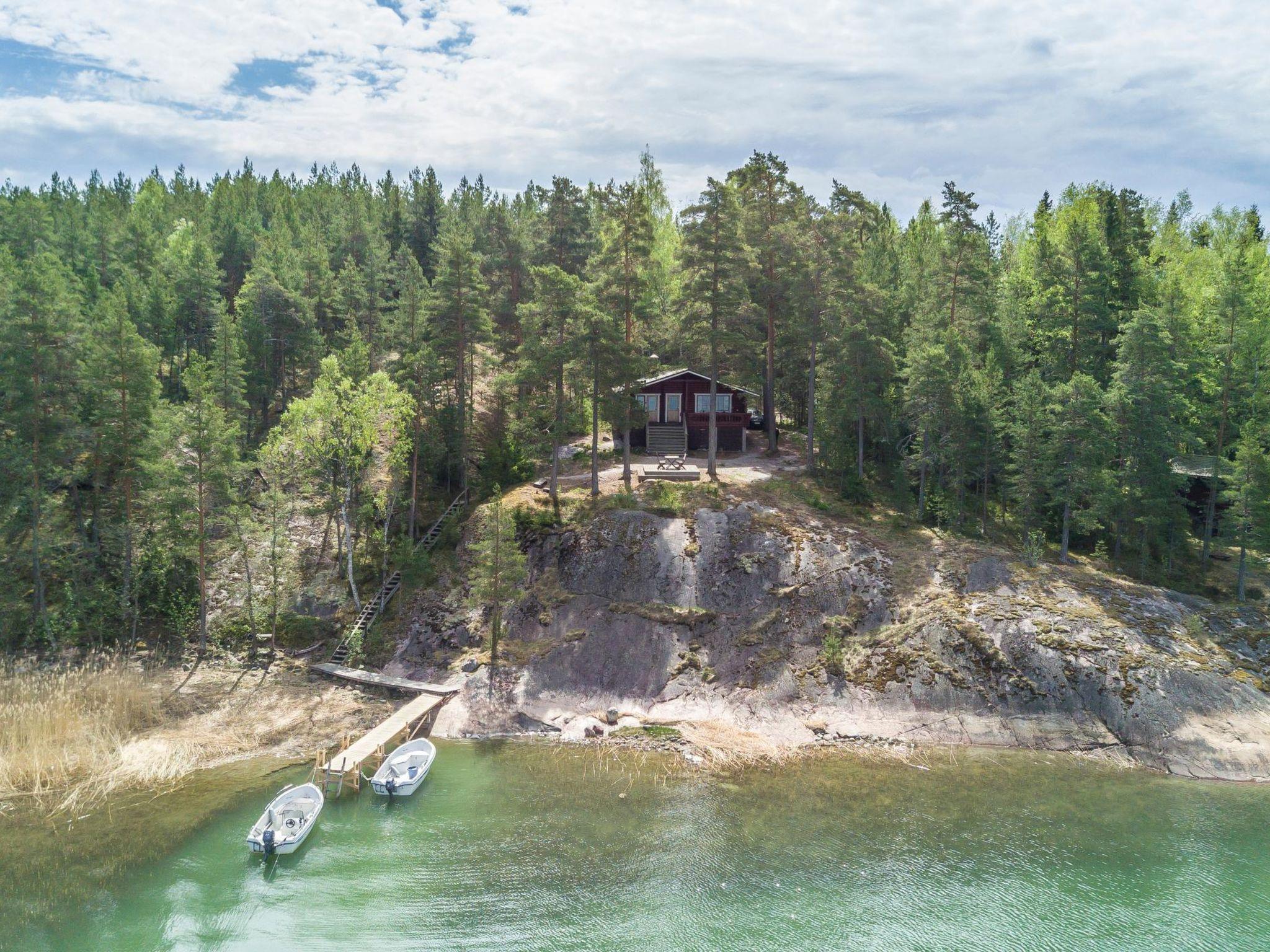 55 km south of Turku, Archipelago / Peimari (width 1 km) 30 m, cliff beach, to which via stairs, shore dredged, clay bottom, pier, own boat.