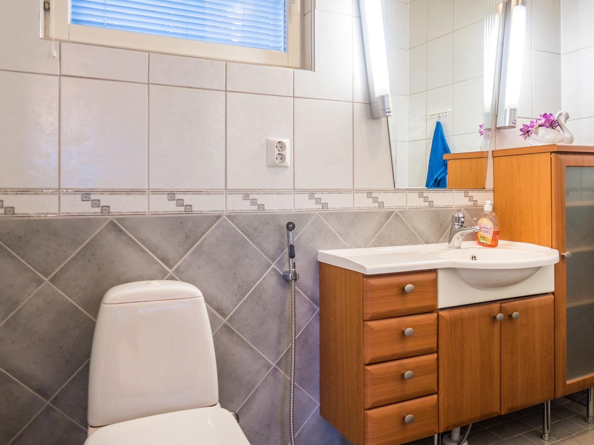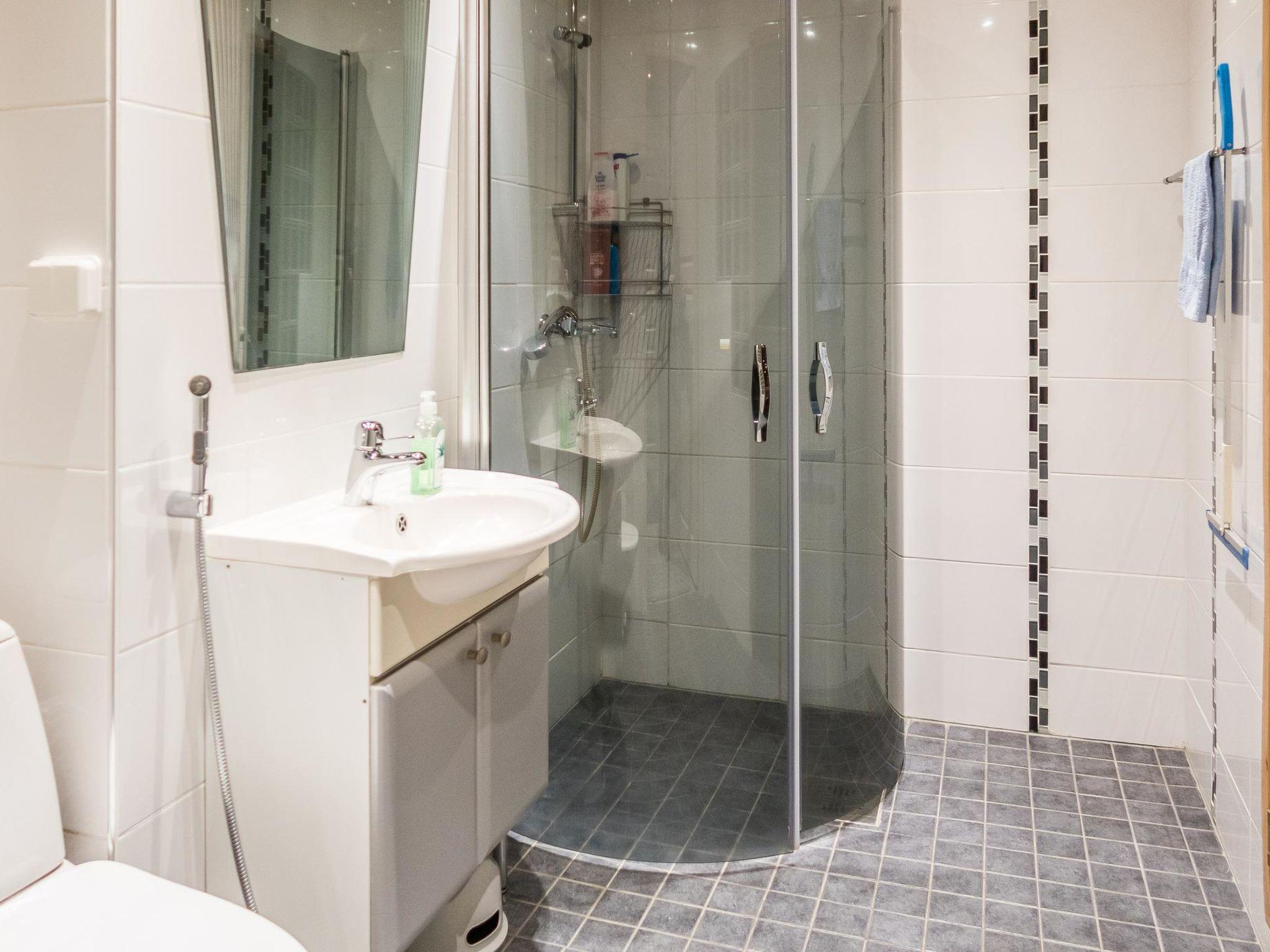 Total area approx. 112 m², on three floors. On the middle floor, an open kitchen and living room, a dining set for 6-8. A bedroom with a double bed (160 cm). Separate toilet. In the open loft, separate beds for 4 (2 x 80 cm and 2 x 110 cm beds), the loft is open space. On the lowest floor, a room with a fireplace, with a sofa bed for 1-2 as an alternative bed, and a bedroom with a double bed (160 cm). Washroom/toilet and sauna (electric stove), in addition a small utility room (washing machine, cleaning equipment). There is a drying cabinet in the airing cupboard downstairs. In connection with the middle floor, a terrace/balcony with garden furniture and an electric grill (in use during the summer).