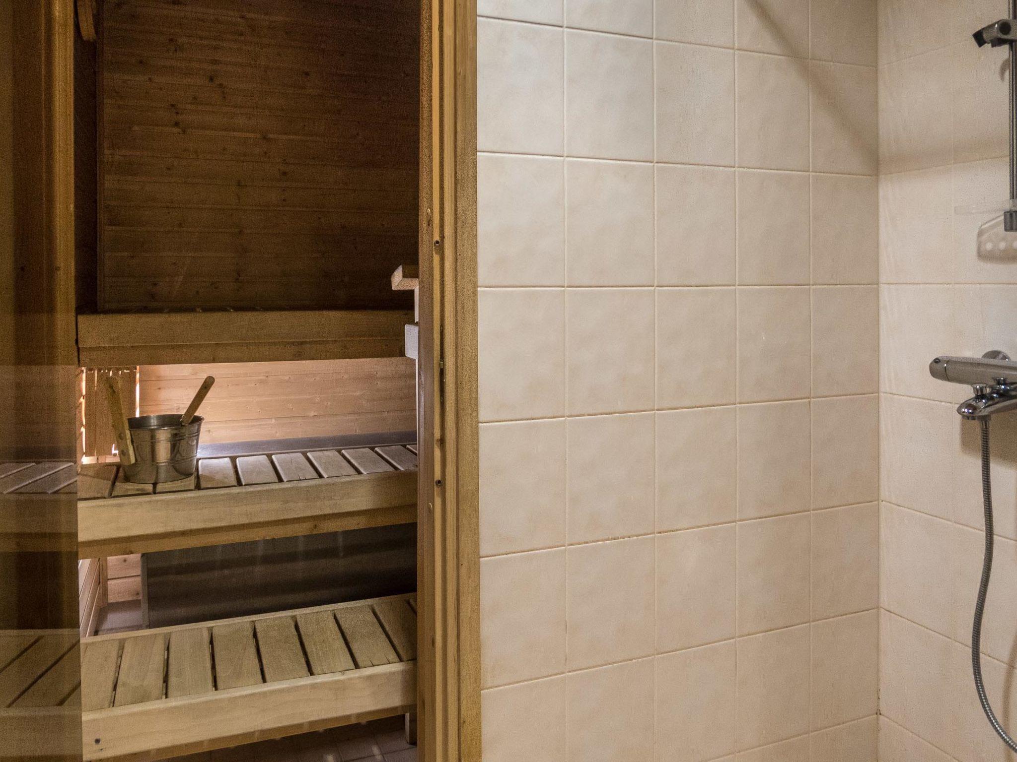 This apartment in log semi-detached house located in Vuokatti ski centre was completed in 2003. Floor area 59m². Combined living room & kitchen with sofa-bed for one person (width 120 cm), two bedrooms, one with twin bed and one with separate beds for two, sauna (electric heating), washroom, two toilets and veranda.