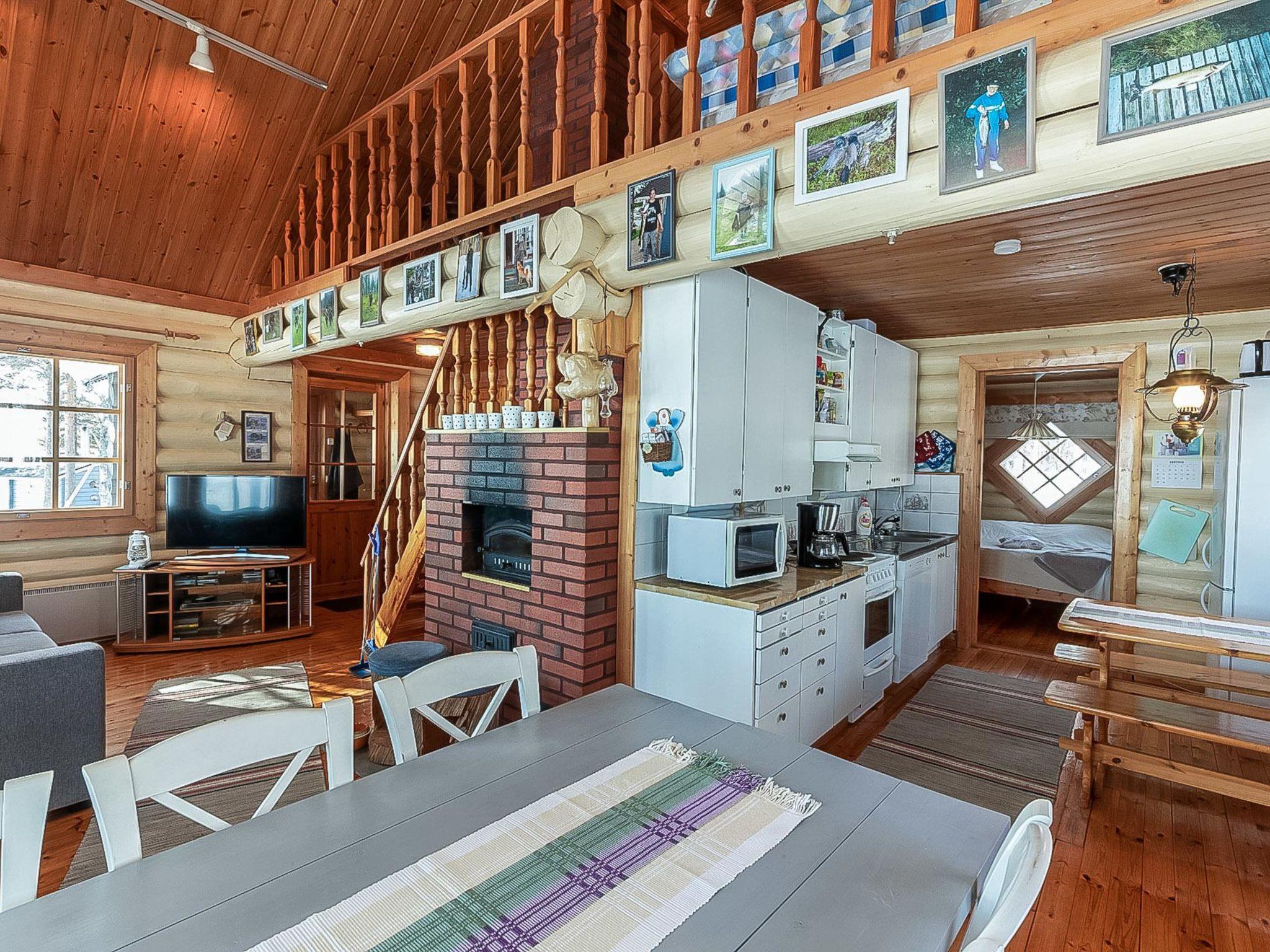 Log cottage 1998, living room/kitchen, bedroom double bed, sleeping loft double bed, sauna (wood-burning stove), washroom, separate WC, open porch, balcony. Additionally, 2 moveable extra beds which can be sited as required.