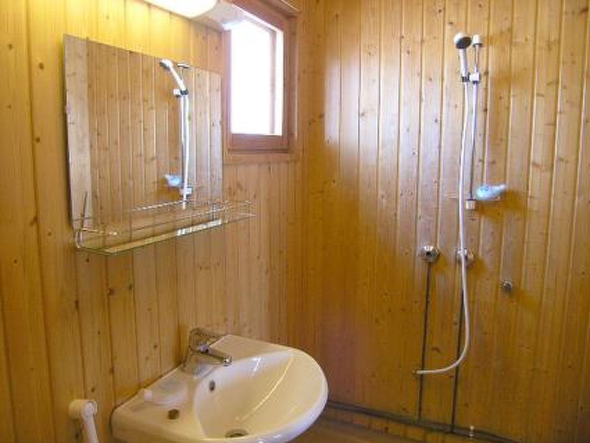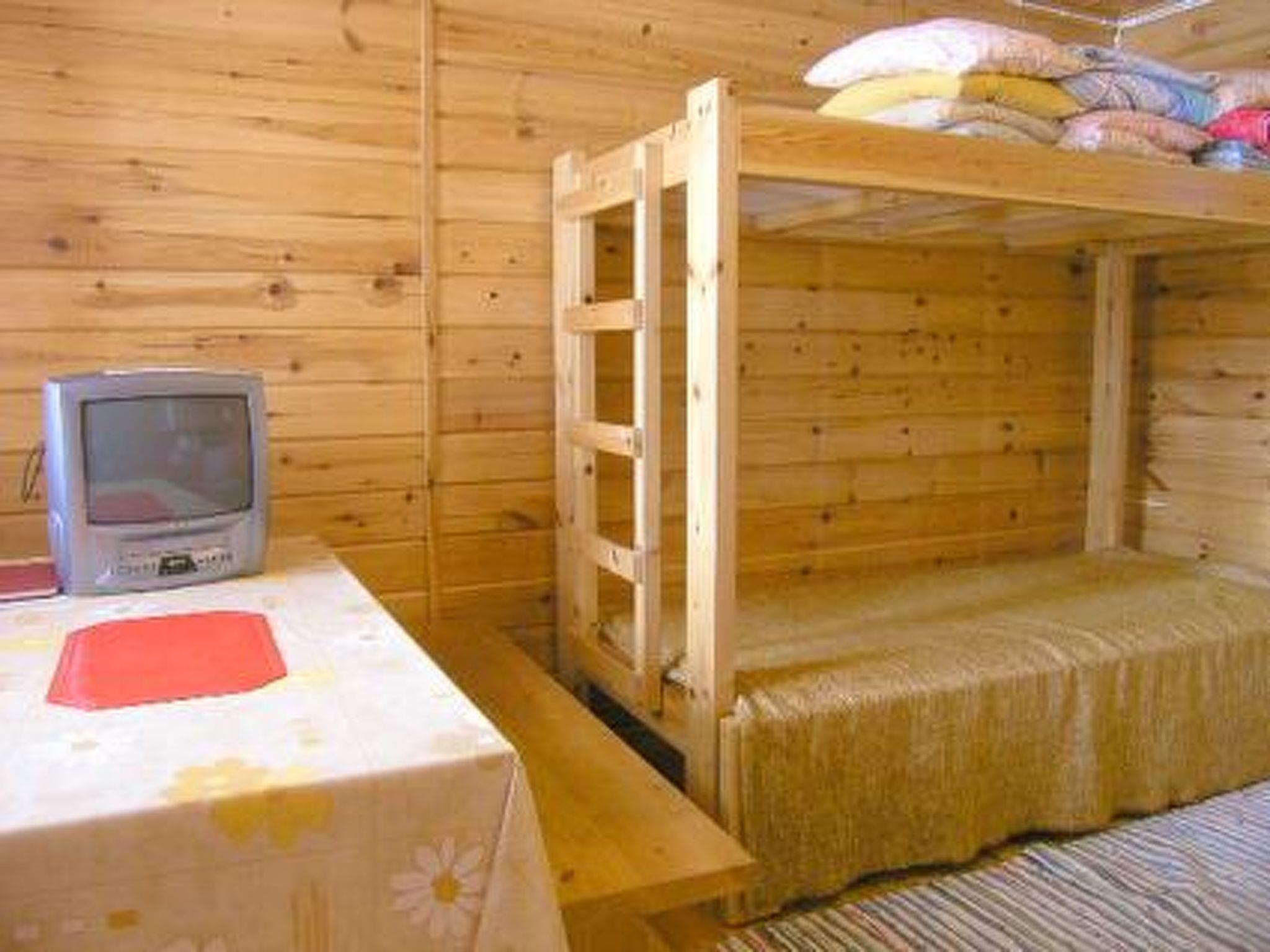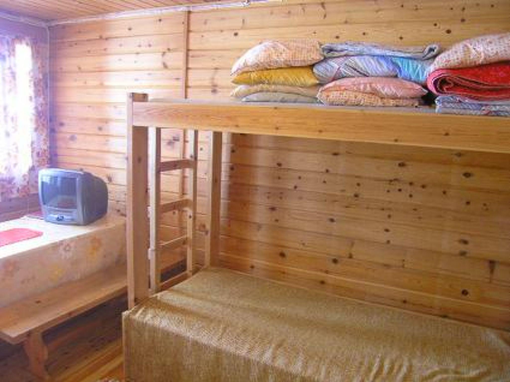 Wooden cottage, inside paneled, built in 1993. Livingroom with bunk bed (lower bed is wider) and one single bed. Sauna with electric stove, bathroom and small veranda. Free-standing electric heater.