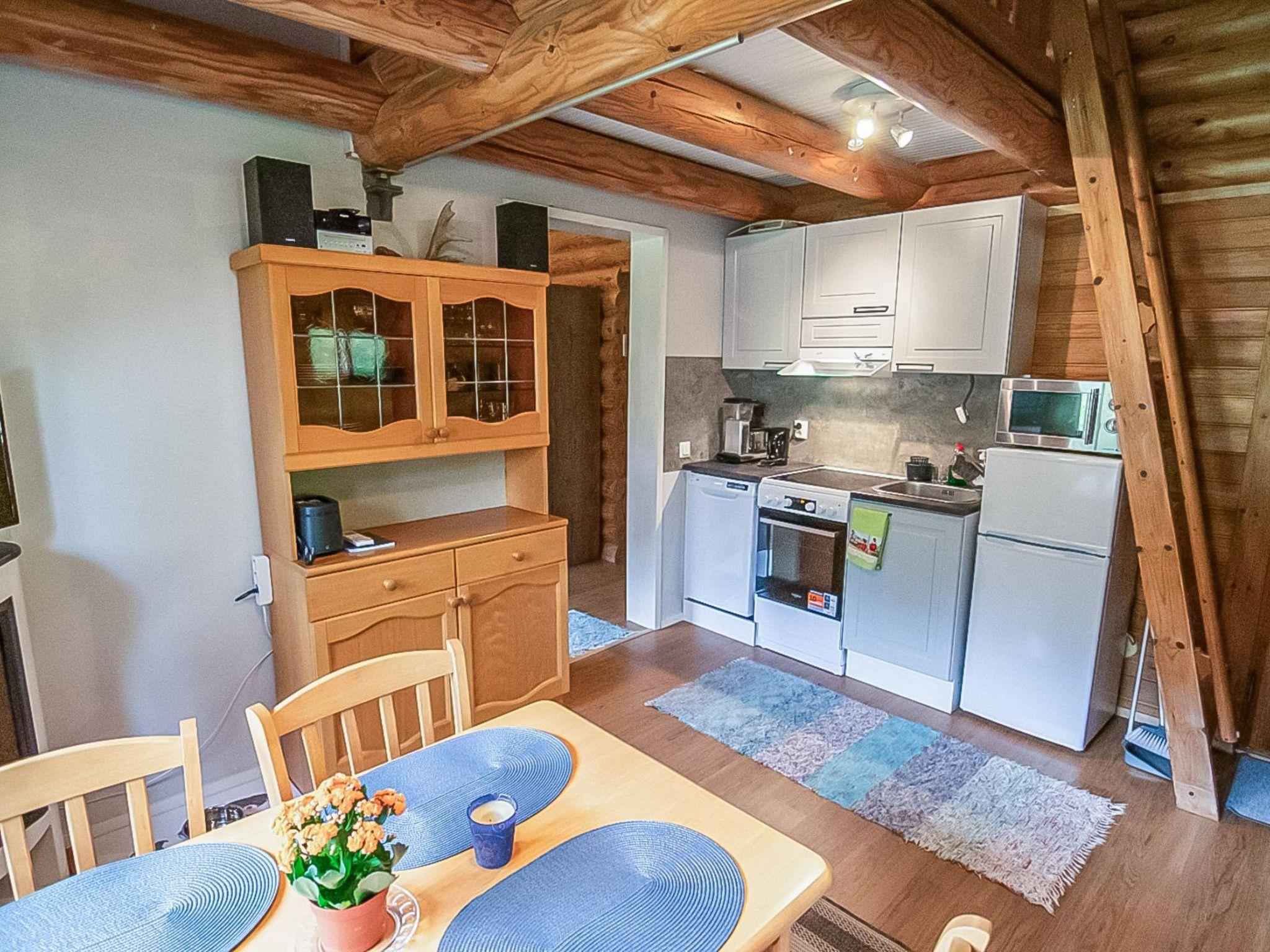 Round log cottage built in 1986. Sleeping area with two 80 x 200 cm beds. Living room with kitchen and dining area with sofa bed that can be converted into an additional 140 x 190 cm bed for two. Loft with 120 x 200 cm mattress as an additional bed for one. The kitchen is fully equipped, with dishwasher, microwave, coffee maker, toaster and kettle. The kitchen has an atmospheric artificial fireplace that produces pleasant heat using an electric heater.