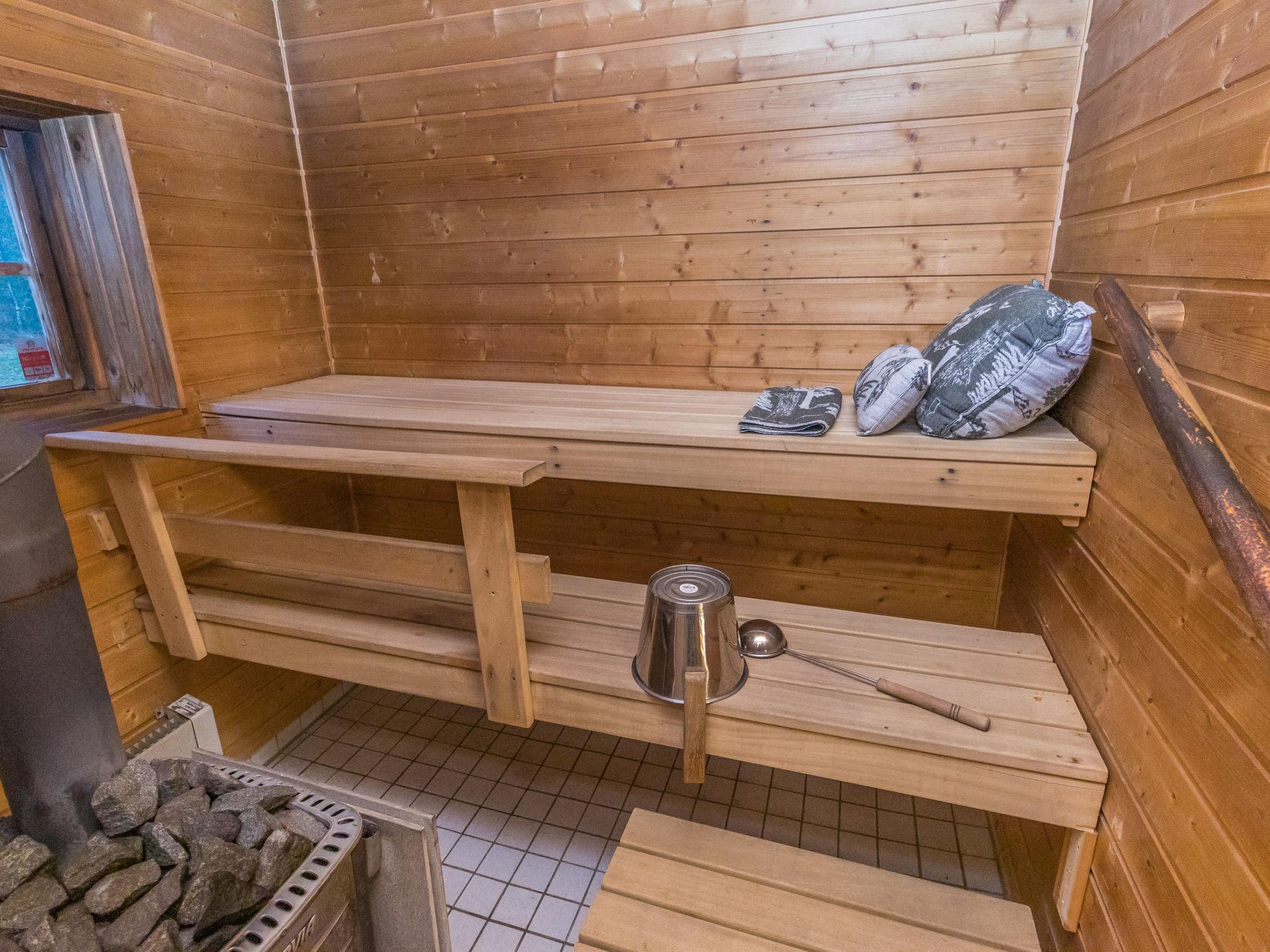 The cabin features a spacious living area with a dining space, a well-equipped kitchen, and two bedrooms — one with a double bed and the other with two separate beds. Additional facilities include a separate WC, a dressing room with a sofa bed that can be converted into an extra bed, a washroom with a shower, and a cozy wood-heated sauna. Outside, a campfire site invites you to enjoy evenings outdoors. Although the neighboring plot is close by, its limited use ensures a peaceful stay.