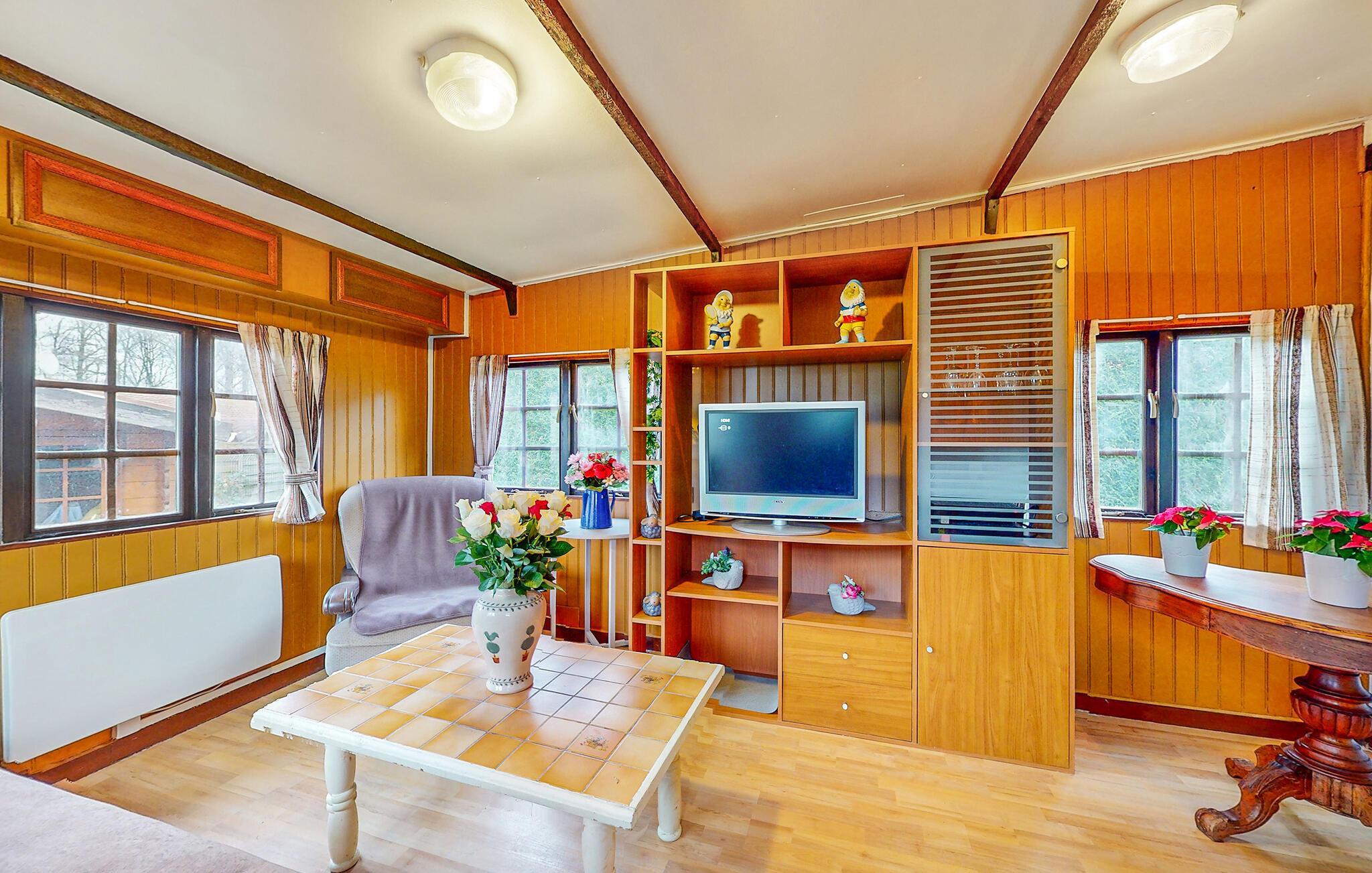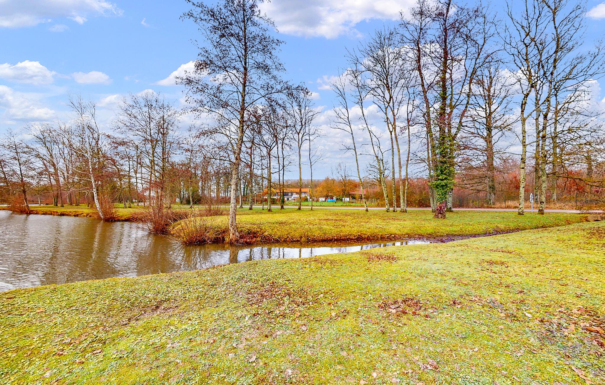 Huset ligger på en grund med en stor dam. Brug den som base for en hyggelig pause fra hverdagen, hvor I kan udforske området og opleve naturen. Nyd en smuk udsigt over det fri gennem store vinduespartier og læg planer for de kommende dage i opholdsstuen.