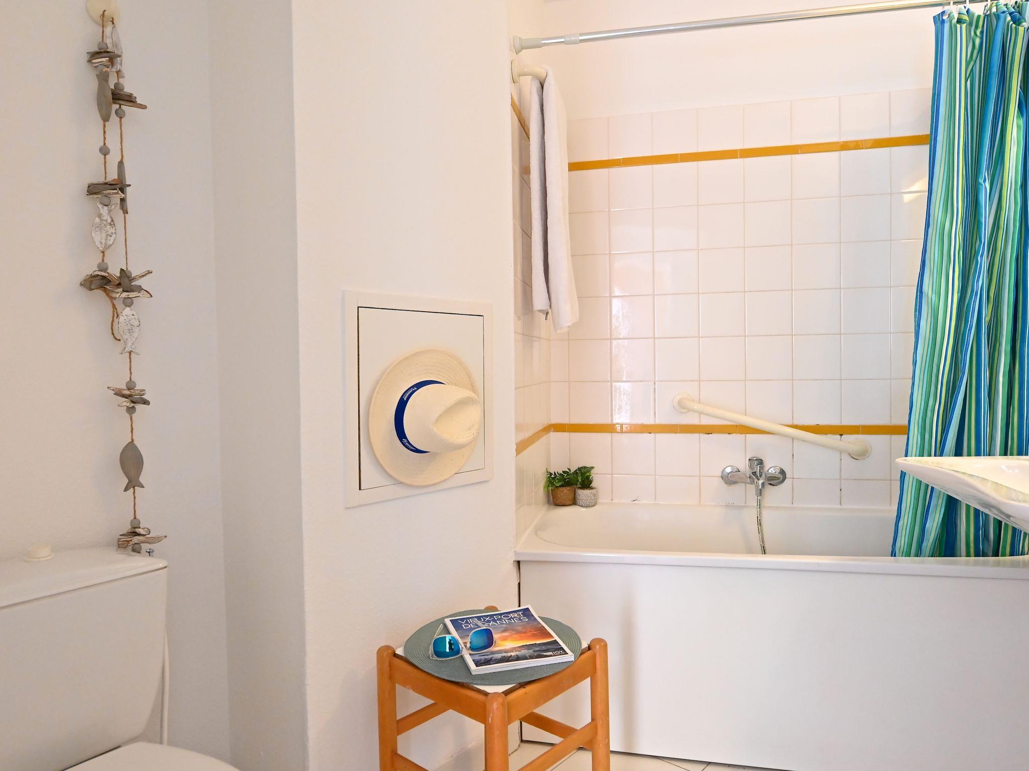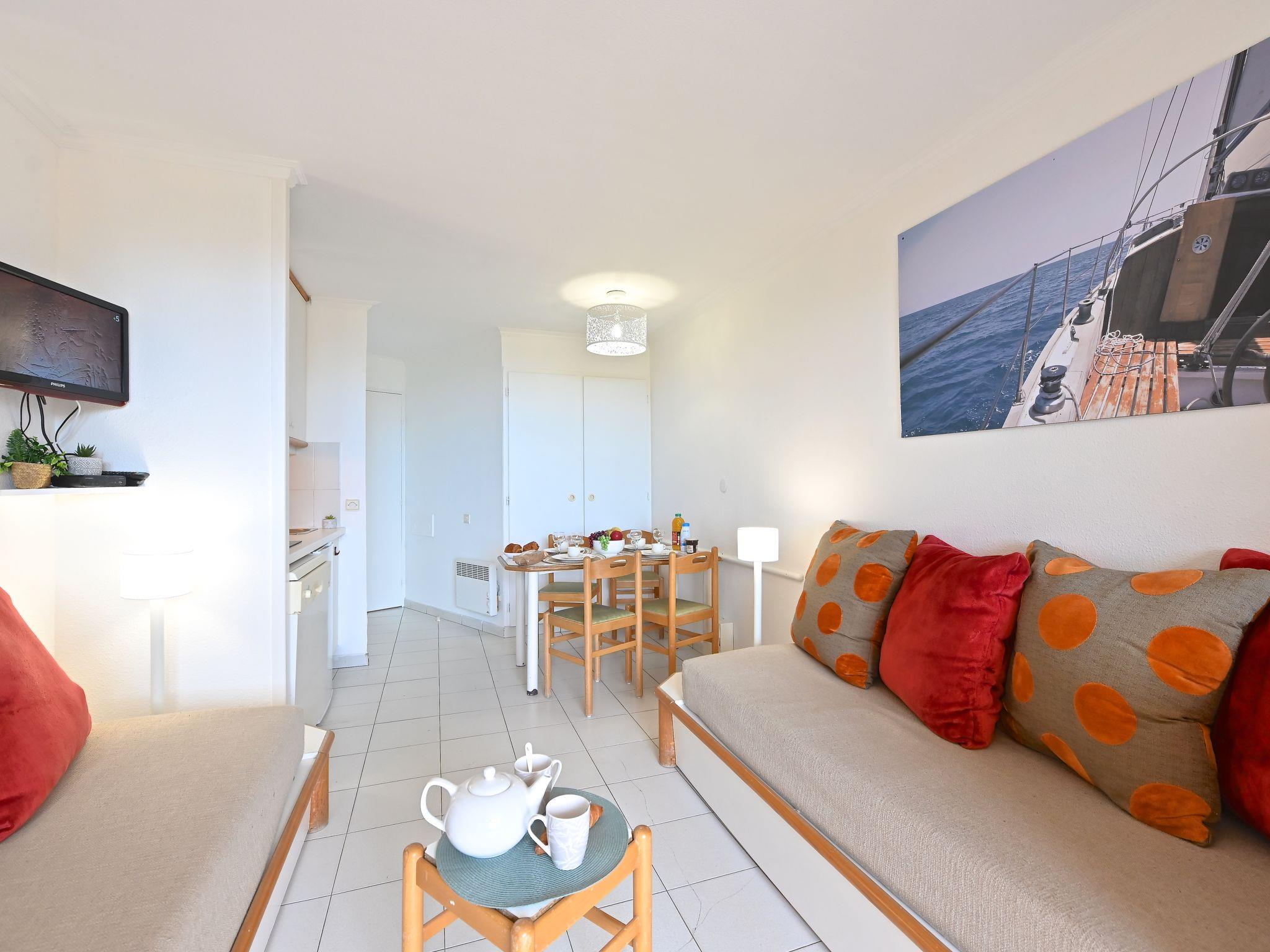 "Le Village (C2 105)", 1-room studio 28 m2, on the ground floor. Object suitable for 2 adults + 2 children. Living room with 2 sofabeds (80 cm, length 190 cm), TV (flat screen). Exit to the terrace. Sleeping alcove with 1 x 2 bunk beds (80 cm, length 190 cm). Kitchenette (4 hot plates, dishwasher, toaster, kettle, microwave, electric coffee machine, Capsules for coffee machine (tassimo) extra). Bath/WC. Electric heating. Terrace 8 m2. Terrace furniture. View of the sea. Facilities: Internet (WiFi, extra). Parking space n 2378 (roofed, 1 car), height 180 cm. Please note: non-smokers only. Maximum 1 small pet/ dog allowed. Smoke alarm. Instead of an enclosed bedroom, some sleeping areas are located in an open-plan area (gallery, alcove, etc.). Offer by a private individual according to Art. 155, IV of CGI.