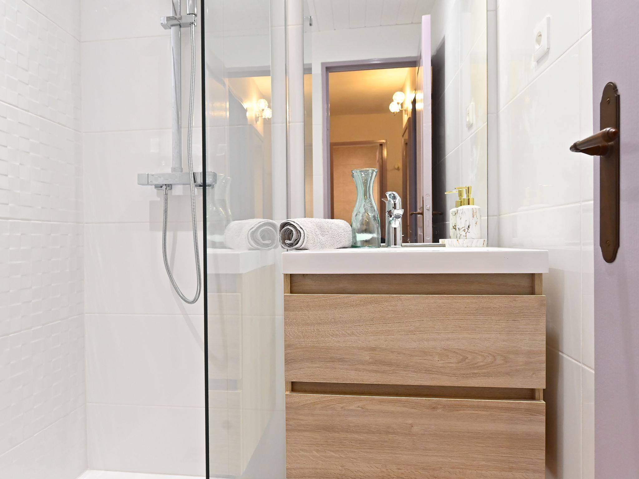 "L'Esquinade (H3 106)", 3-room apartment 46 m2, on the ground floor, north facing position. Spacious, fully renovated in 2025, very comfortable and modern furnishings: large living/dining room with 1 sofabed (160 cm, length 200 cm), TV (flat screen), air conditioning. Exit to the terrace, to the patio, north facing position. 1 room with 1 french bed (140 cm, length 190 cm), air conditioning. Sleeping alcove with 1 x 2 bunk beds (90 cm, length 190 cm), air conditioning. Open kitchen (4 hot plates, oven, dishwasher, 4 induction hot plates, toaster, kettle, microwave, electric coffee machine) with air conditioning. Bathroom, shower/WC. Electric heating, air-conditioning. Large terrace 21 m2. Terrace furniture. View of the mountains and golf course. Facilities: washing machine, iron. Internet (WiFi, extra). Parking (1 car). E-charging station. Please note: non-smokers only. Maximum 1 pet/ dog allowed. Offer by a commercial proprietor according to Art. 155, IV, CGI