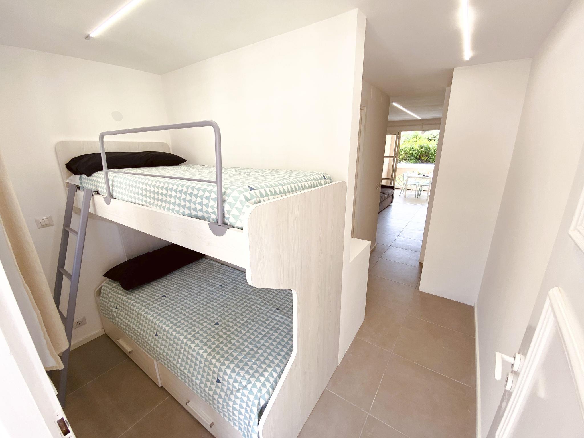 "L'Esquinade (J2 206)", 1-room studio 24 m2 on 1st floor. Object suitable for 2 adults + 2 children. Living room with 1 double sofabed (140 cm, length 190 cm), TV (flat screen). Exit to the terrace. Sleeping alcove with 1 x 2 bunk beds (80 cm, length 190 cm). Kitchenette (4 hot plates, dishwasher, toaster, microwave, electric coffee machine). Shower/WC. Electric heating. Terrace 8 m2, roofed. Terrace furniture. Facilities: Internet (WiFi, extra). Parking (1 car). Please note: non-smokers only. Smoke alarm. Instead of an enclosed bedroom, some sleeping areas are located in an open-plan area (gallery, alcove, etc.). Offer by a private individual according to Art. 155, IV of CGI.
