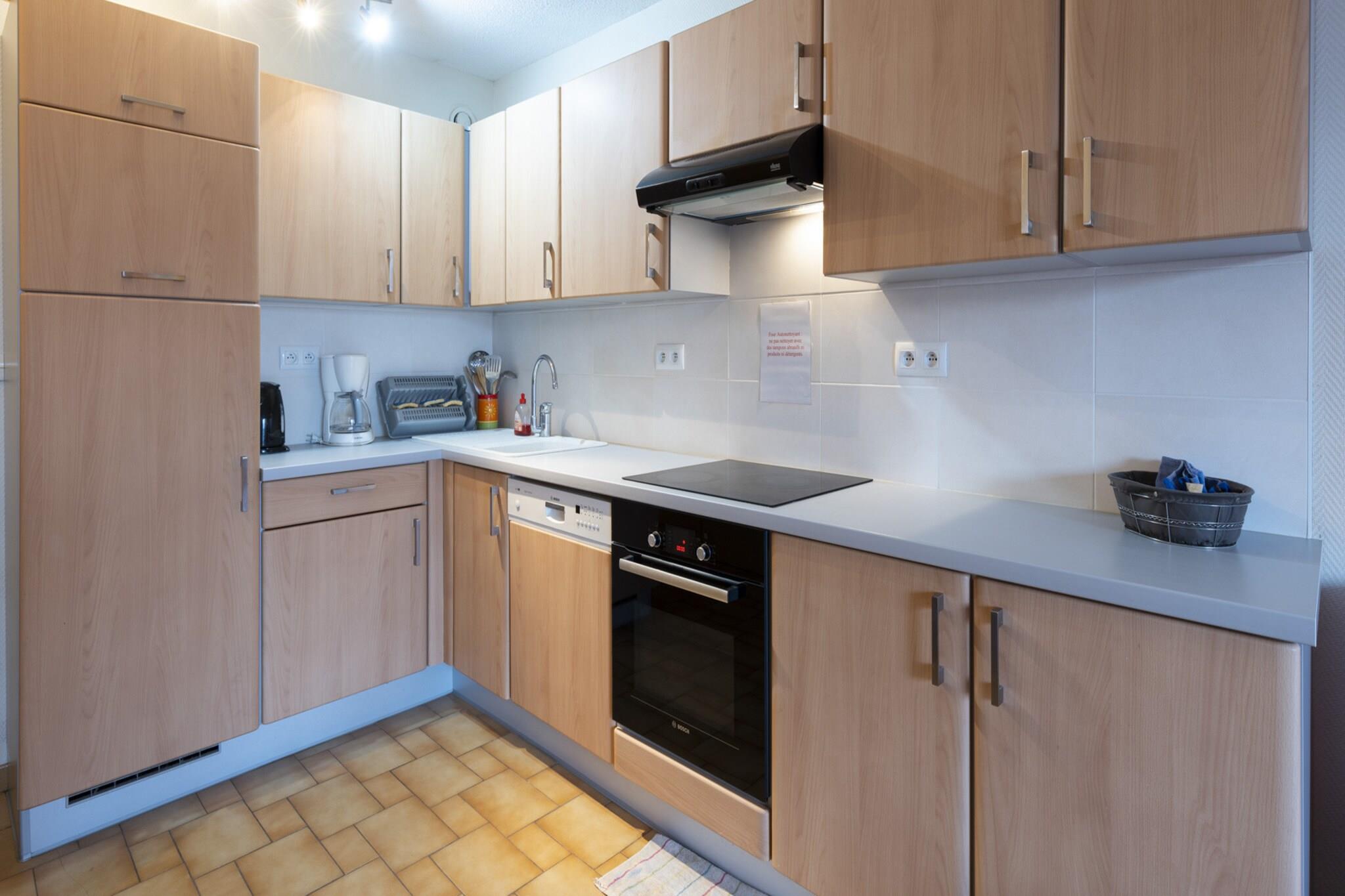 Denne studiolejlighed er perfekt til op til 4 gæster og tilbyder et komfortabelt layout på 30 m² i en uovertruffen beliggenhed kun 50 meter fra sandstranden. Det har en balkon med udendørs møbler, en fælles swimmingpool til forfriskende dukkert og praktisk udendørs parkering. Ejendommen omfatter også en vaskemaskine og elevator, hvilket sikrer et problemfrit og afslappende ophold. Der er et tv til underholdning, hvilket gør det til et godt valg for par eller små familier, der søger en ferie ved havet. Beliggende kun 150 meter fra byens centrum, giver studiet nem adgang til lokale butikker, caféer og restauranter. Uanset om du udforsker Agdes pulserende gader, forkæler dig med frisk fisk og skaldyr eller nyder solen på den nærliggende strand, henvender beliggenheden sig til en række forskellige interesser. Dens nærhed til både stranden og byen gør den ideel til at nyde det bedste fra begge verdener. Køkkenet er fuldt udstyret med moderne bekvemmeligheder, herunder en glaskeramisk kogeplade, køleskab, mikroovn, ovn og opvaskemaskine. Derudover giver den alle nødvendige tallerkener, bestik og køkkenredskaber, så du nemt kan tilberede lækre måltider. Dette studie tilbyder alt, hvad der er nødvendigt for et behageligt og mindeværdigt feriested ved kysten.