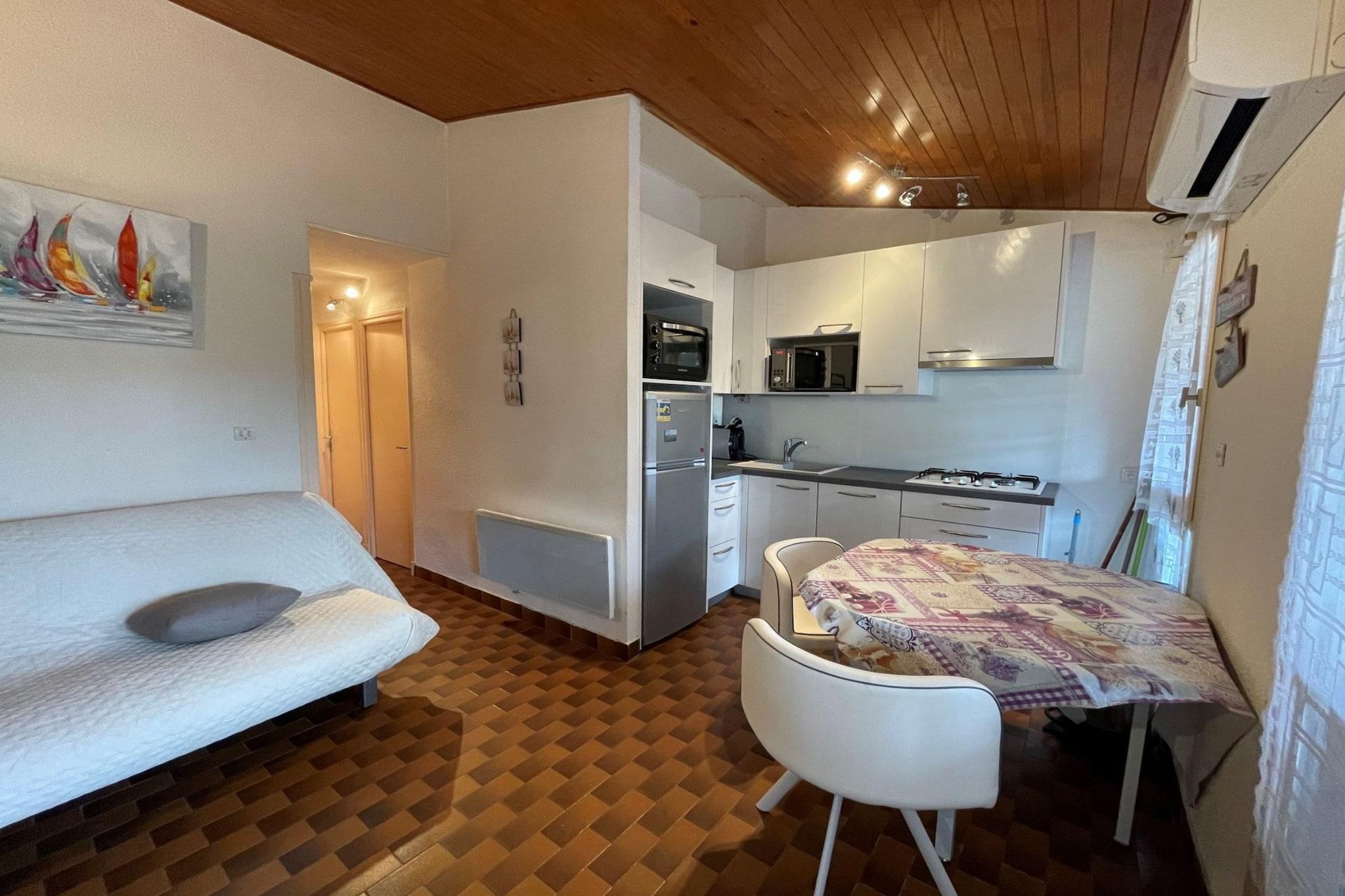 Denne komfortable lejlighed har 1 soveværelse og kan rumme op til 6 personer, hvilket gør den perfekt til familier eller små grupper. Ejendommen spænder over 35 m² og giver en hyggelig og rummelig atmosfære. Det er kæledyrsvenligt, så du kan tage dine lodne ledsagere med. Gæsterne vil nyde udendørsmøbler, en privat terrasse, aircondition, en vaskemaskine og udendørs parkering samt et tv til underholdning under deres ophold. Beliggende kun 100 meter fra sandstranden og 450 meter fra byens centrum, er denne lejlighed ideelt beliggende i et familievenligt område ud til havet. Udforsk nærliggende attraktioner, nyd at spise på lokale caféer, eller shop friske råvarer på nærliggende markeder. Med sin nærhed til stranden kan du nemt bruge dine dage på at slikke solen eller tage afslappede gåture langs kysten. Lejligheden har et fuldt udstyret køkken med gaskomfur, køleskab, mikroovn, ovn, opvaskemaskine, tallerkener, bestik, køkkenredskaber og kaffemaskine, hvilket gør det nemt at tilberede måltider. Ejendommen indeholder også et badeværelse med moderne indretning for et bekvemt og behageligt ophold. Med alle disse faciliteter og dens førsteklasses beliggenhed sikrer denne lejlighed en mindeværdig og afslappende ferieoplevelse.