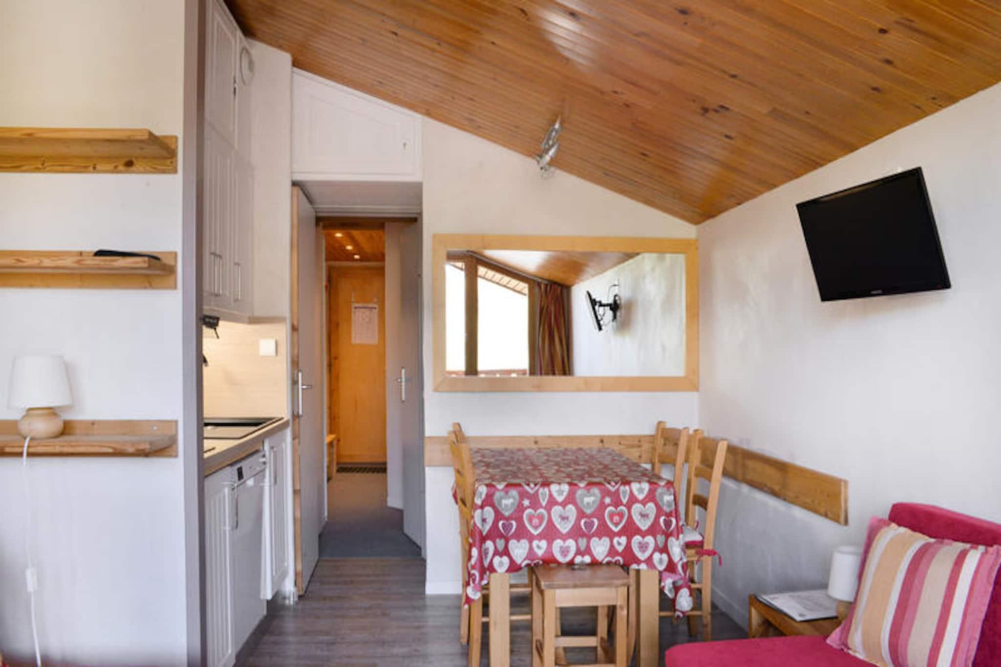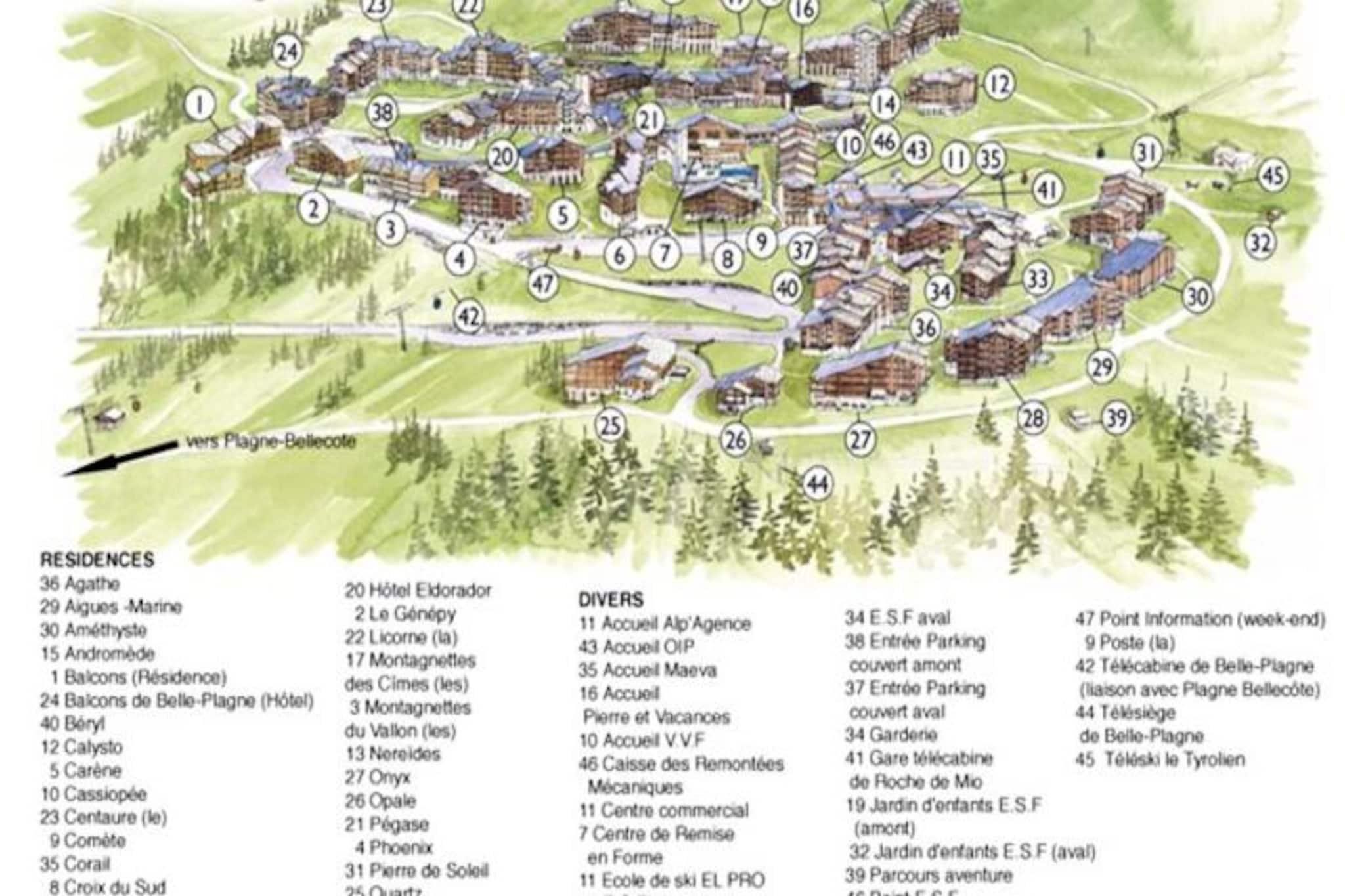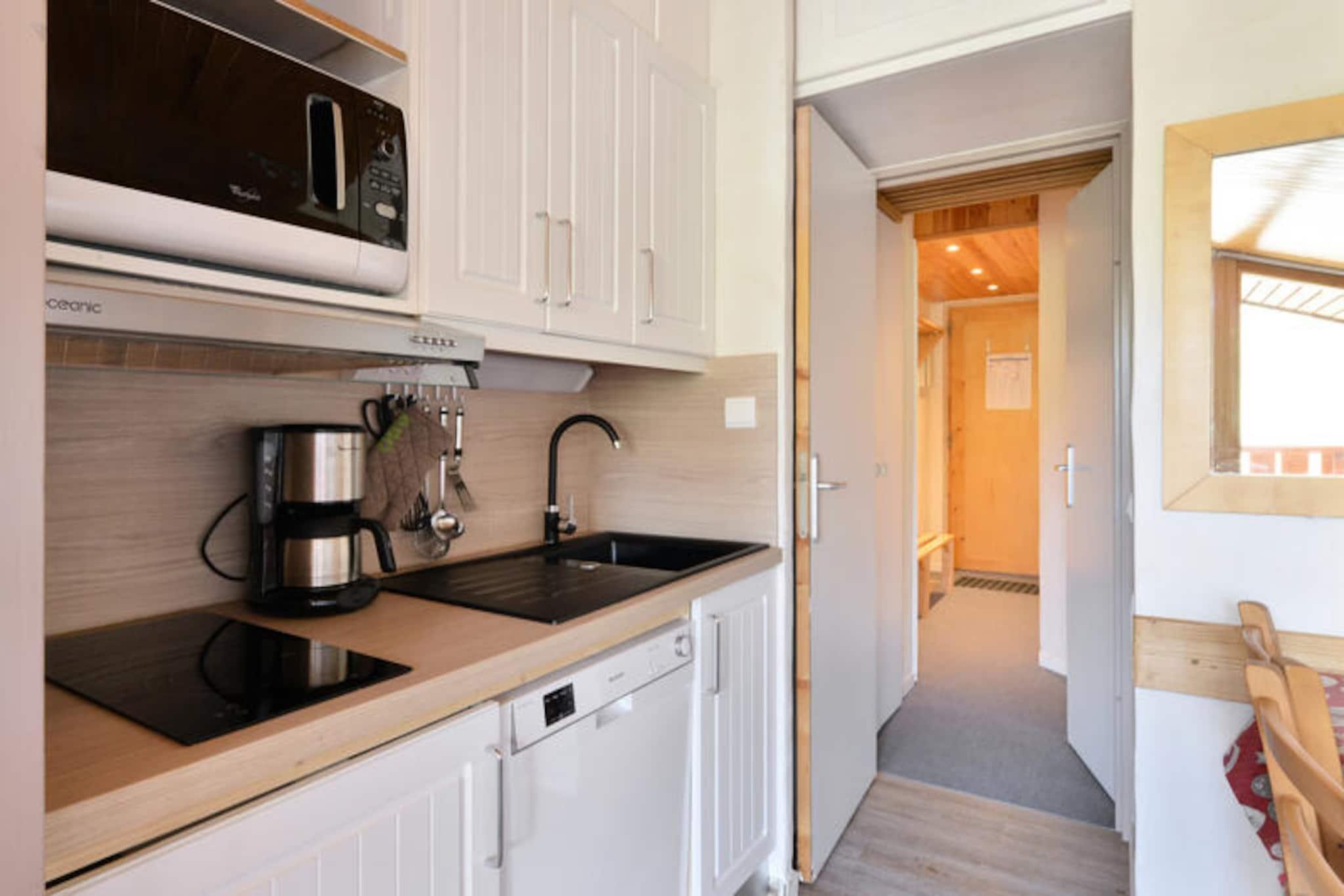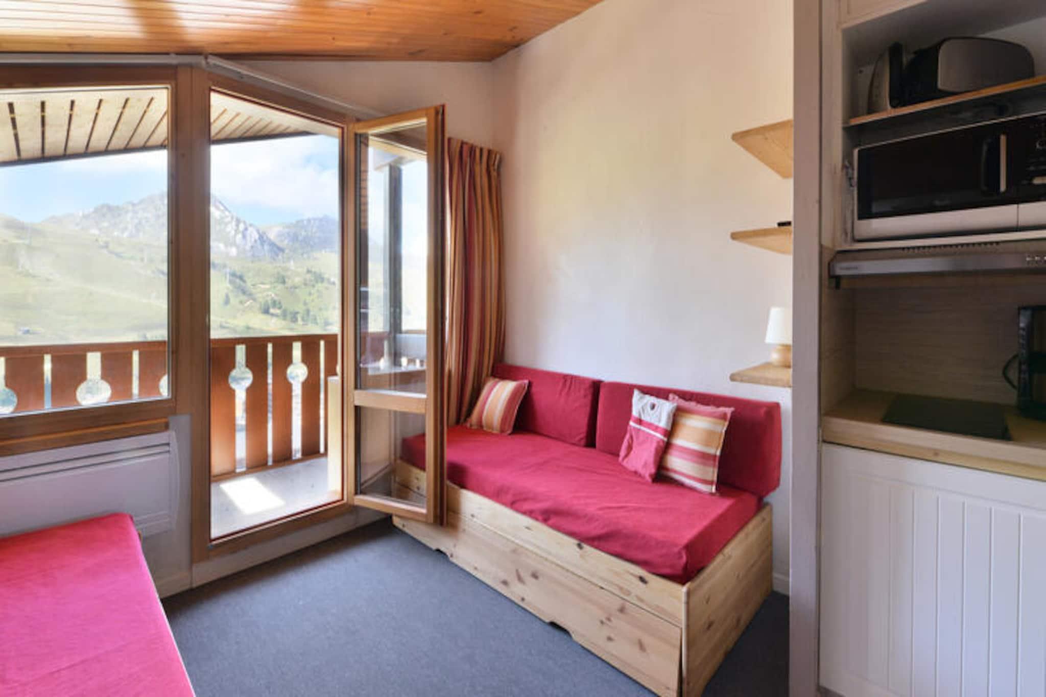 Højt over det fortryllende Belle Plagne-resort inviterer denne hyggelige alpelejlighed dig til at opleve magien i de franske alper i enhver sæson. Beliggende på femte sal tilbyder denne sydvestvendte perle en betagende udsigt over pisterne direkte fra din private balkon, hvilket skaber en rolig kulisse for din bjergferie. Uanset om du er her for at grave dig gennem uberørt sne eller udforske frodige sommerstier, placerer denne bolig dig i hjertet af alpint eventyr. Lejligheden er designet til op til fem gæster og kombinerer komfort og praktisk anvendelighed med et veludstyret køkken med mikrobølgeovn, grill, opvaskemaskine og induktionskogeplader. Stuen er et indbydende rum med to sovesofaer, en udtræksseng og et fladskærms-tv, mens det separate soveværelse tilbyder en hyggelig dobbeltseng til afslappende nætter. Badeværelset har badekar og toilet, hvilket sikrer bekvemmelighed efter en dag med udendørsaktiviteter. Individuelle skibokse og betalt underjordisk parkering med direkte adgang til boligen bidrager til dit opholds bekvemmelighed. Beliggende i den øvre del af Belle Plagne, kan boligen prale af direkte adgang til pisterne, hvilket gør den til et paradis for skientusiaster. Der ligger butikker kun 100 meter væk, så du har alt, hvad du behøver, lige ved hånden. Om sommeren forvandles feriestedet til et paradis af vandrestier, mountainbikeruter og fantastiske udsigter. For ekstra bekvemmelighed er der Wi-Fi mod betaling, og der er tæpper til rådighed. Uanset om du søger spændende nedkørsler, rolige alpine vandreture eller blot et hyggeligt tilflugtssted blandt majestætiske tinder, tilbyder denne lejlighed en uforglemmelig ferie i en af ??Frankrigs mest maleriske bjergdestinationer.