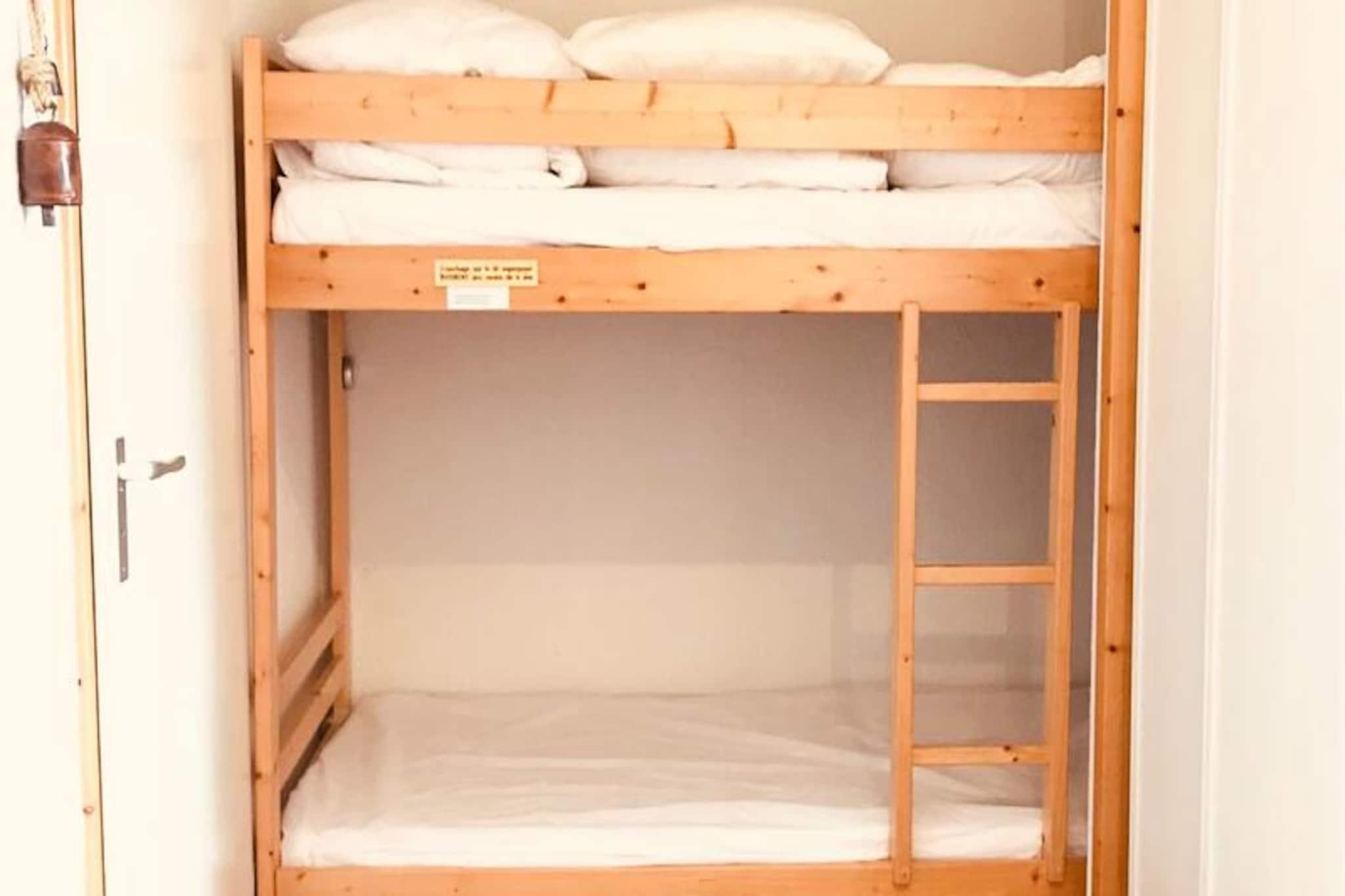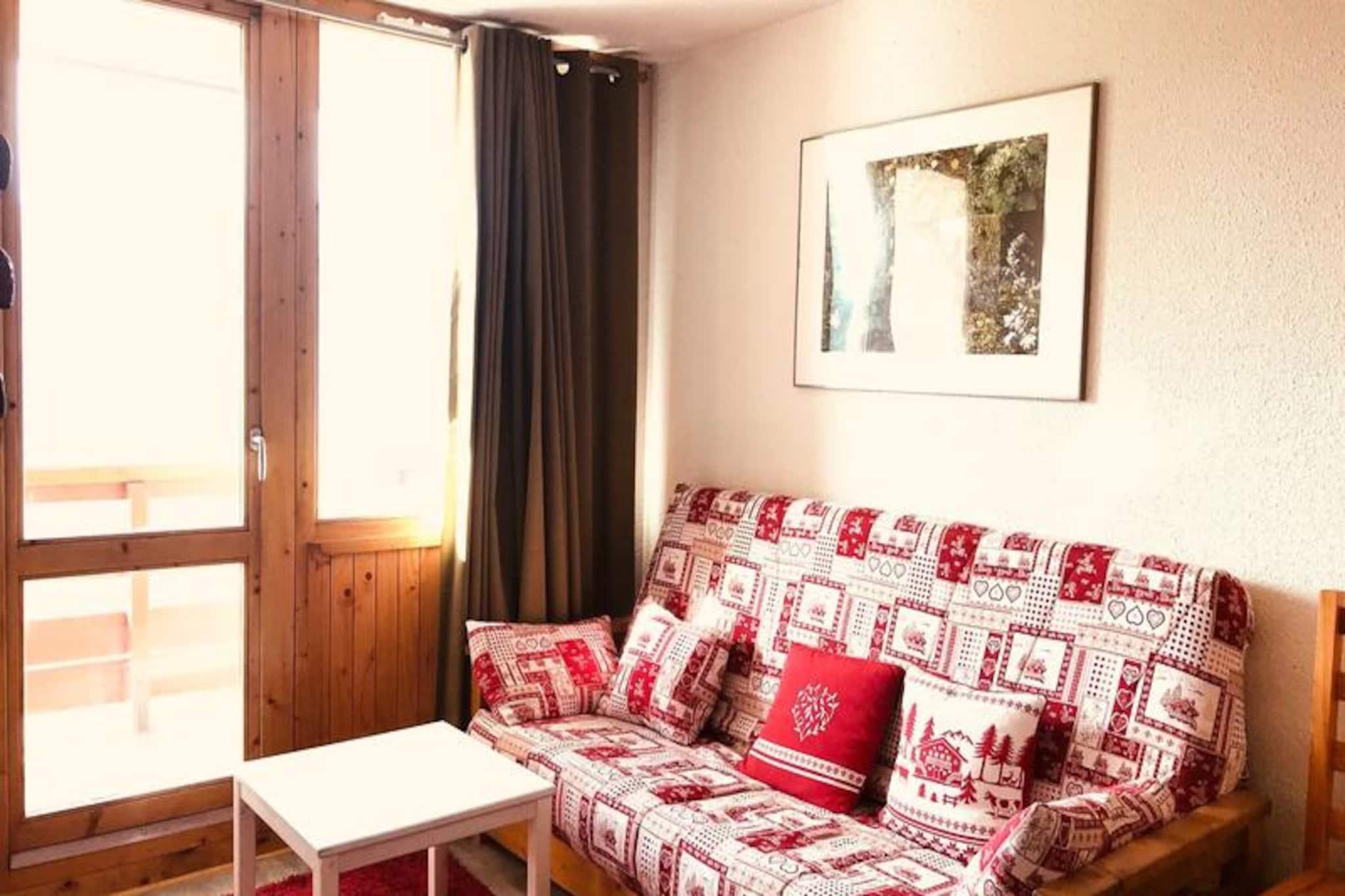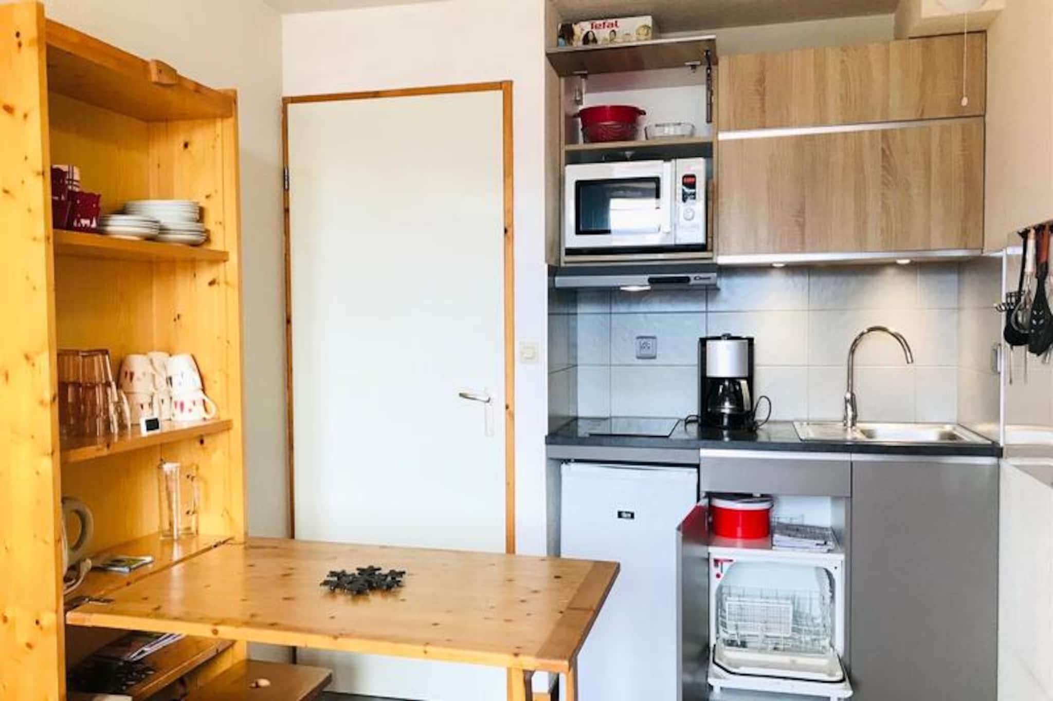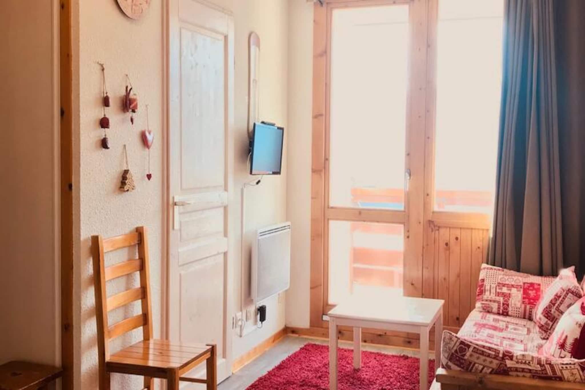 Beliggenhed: Residens uden elevator, beliggende på pisterne, 500 m fra butikker og skilifter (ski-adgang fra boligen, når sneforholdene er tilstrækkelige). Faciliteter: Individuelle skibokse i stueetagen og niveau -1. Gratis parkering foran boligen. Residens "Le Chanteloup", på pisterne, rolig, behagelig og renoveret lejlighed på 26 m² til 4 personer, på 1. sal uden elevator, med balkon med udsigt over dalen og et individuelt skiboks i stueetagen (gang mod pisterne). Lejligheden har et tekøkken udstyret med køleskab, mikrobølgeovn, opvaskemaskine, keramisk kogeplade, kaffemaskine, brødrister og elkedel. Det åbner ud til stuen, som har et hyrdebord, sofa og fladskærms-tv. En sovealkove har plads til to køjesenge (ikke egnet til børn under 6 år) og et opbevaringsskab. Soveværelset har en dobbeltseng. Badeværelset har en håndvask og et badekar. Der er et separat toilet. /!\ Sengelinned og slutrengøring er tilgængelig mod et ekstra gebyr. Indkvarteringen er udstyret med dyner. Depositum (i euro) - 400 Opvarmning - 1