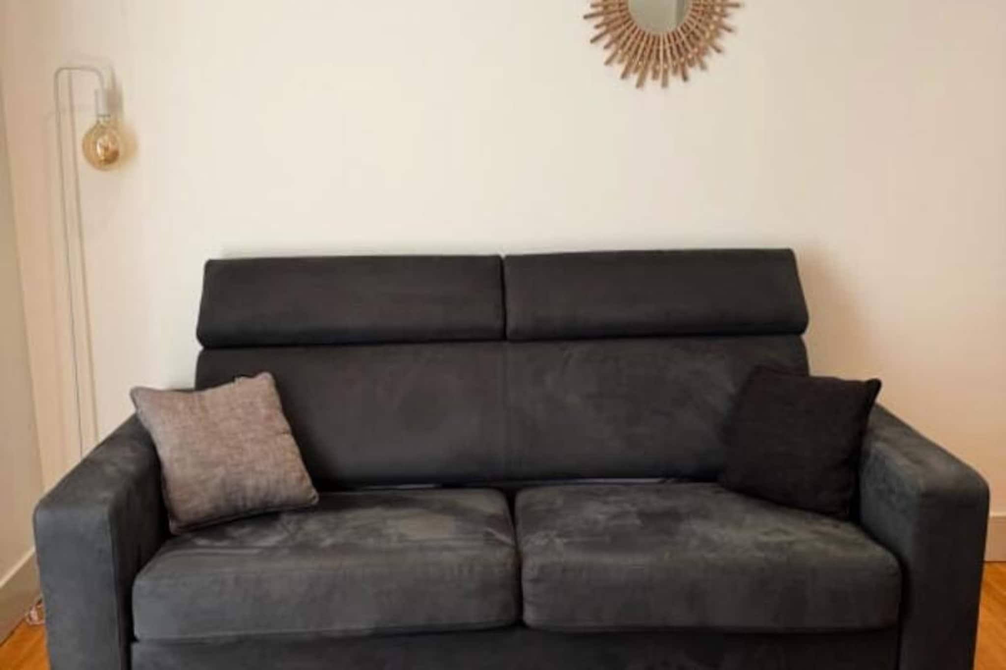 I det charmerende hjerte af Aix-les-Bains tilbyder denne lejlighed med to aspekter et roligt tilflugtssted for både spa-gæster, forretningsrejsende og turister. Kun 10 minutters gang fra togstationen ligger den i nærheden af ??byens pulserende butikker, restauranter og kulturelle vartegn. Uanset om du er her for at udforske de termiske bade, nyde søbredden eller blot slappe af, er denne lejlighed den perfekte base for dit ophold. Træd indenfor og oplev en lys og indbydende stue med en komfortabel sovesofa, et spisebord til fire personer og et lille skrivebord til dem, der har brug for at arbejde eksternt. Det fuldt udstyrede køkken er, omend kompakt, kompakt, og har alt, hvad du behøver for at tilberede lækre måltider, fra kogeplader til køleskab og essentielle redskaber. Det hyggelige soveværelse har en blød 160 cm seng og rigelig opbevaringsplads, mens det moderne badeværelse kan prale af et rummeligt brusebad, håndvask og toilet for din bekvemmelighed. Udenfor inviterer en privat terrasse dig til at slappe af med en morgenkaffe eller slappe af efter en dag med udforskning. Sikker parkering er en sjælden luksus i byens centrum, hvilket sikrer ro i sindet under hele dit ophold. Højhastigheds fiberoptisk Wi-Fi, friskredte senge og betænksomme detaljer som håndklæder og basale fornødenheder gør din ankomst problemfri og stressfri. Med sin uovertrufne beliggenhed giver denne lejlighed dig mulighed for fuldt ud at fordybe dig i charmen ved Aix-les-Bains. Fra de nærliggende termiske kurbade til de maleriske bredder ved Lac du Bourget er hvert hjørne af denne smukke by inden for rækkevidde. Uanset om du søger afslapning, eventyr eller en blanding af begge dele, lover denne indkvartering et mindeværdigt og behageligt ophold.