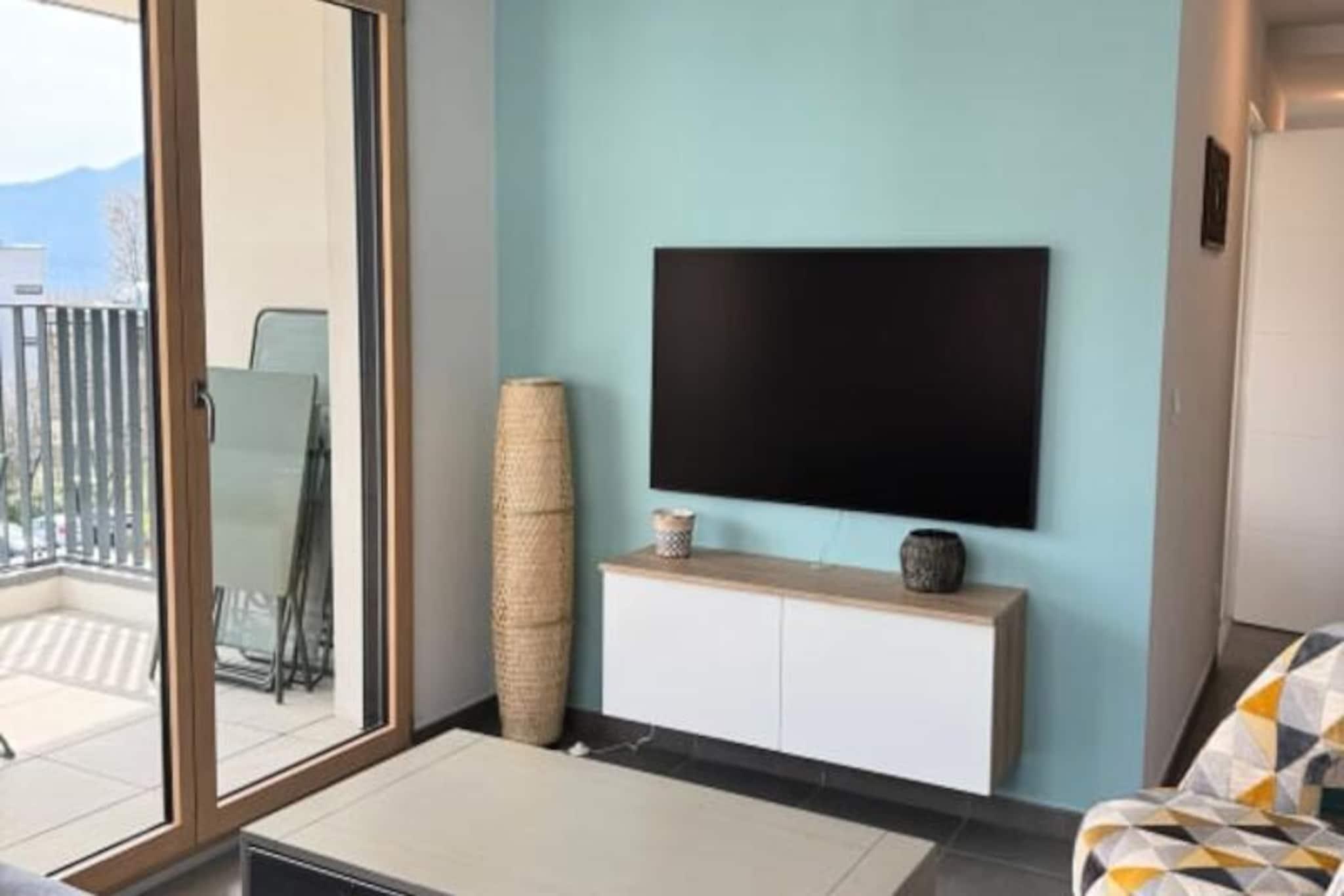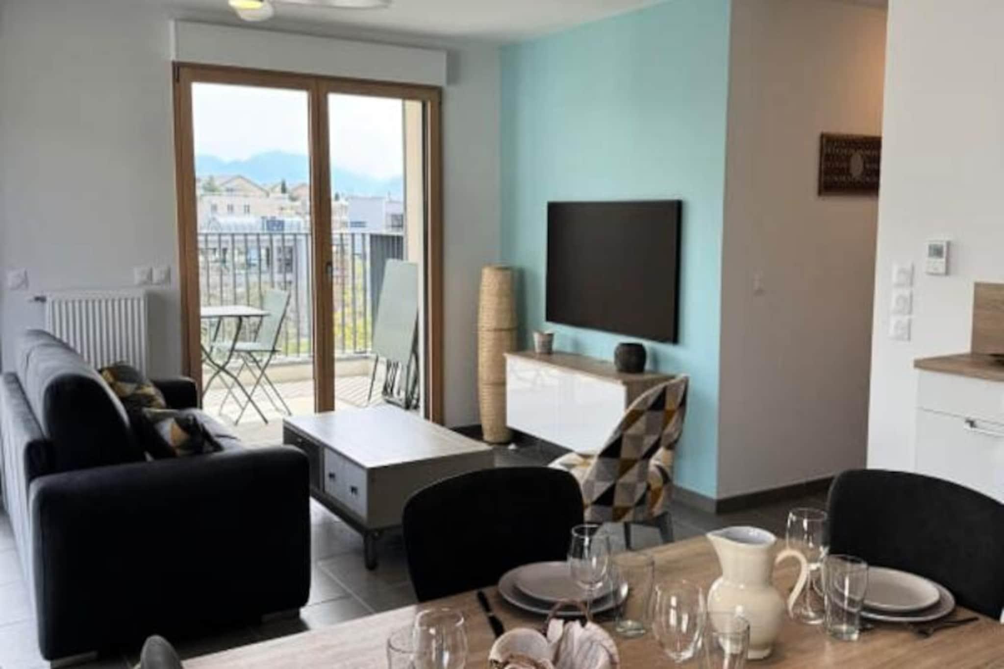 Med den fredfyldte baggrund af Bourget-søen tilbyder denne elegante 4-stjernede lejlighed en harmonisk blanding af moderne komfort og naturlig skønhed. Beliggende i en nybygget, sikker bolig, lover den en rolig tilflugtssted for dem, der søger afslapning og eventyr ved Frankrigs største naturlige sø. Uanset om du nipper til din morgenkaffe på den private terrasse eller nyder en aftenaperitif med udsigt over søens glitrende vand, føles hvert øjeblik her som et tilbagetog i ro. Indenfor er lejligheden omhyggeligt designet til at imødekomme alle dine behov. Den lyse og åbne opholdsstue har et fuldt udstyret køkken, perfekt til at tilberede måltider i en hyggelig atmosfære. To rummelige soveværelser, hver med queensize-senge og rigelig opbevaringsplads, sikrer afslappende nætter, mens det moderne badeværelse kan prale af en bruseniche, håndklædetørrer og en vaskemaskine/tørretumbler for ekstra bekvemmelighed. Et separat toilet øger komforten, og højhastigheds fiberoptisk Wi-Fi holder dig forbundet under hele dit ophold. Træd udenfor, og du vil blive fordybet i regionens skønhed. Bourget-søens bredder ligger kun få skridt væk og tilbyder direkte adgang til naturskønne vandrestier. I nærheden inviterer charmerende restauranter, lokale butikker og et bageri dig til at forkæle dig selv med områdets kulinariske lækkerier. For wellness-entusiaster ligger de berømte Aix-les-Bains termiske bade kun få minutter væk, mens der er masser af vandsports- og vandremuligheder for de eventyrlystne. Med privat parkeringskælder, en sikker garage og nem adgang til offentlig transport er denne lejlighed perfekt beliggende til at udforske Aix-les-Bains, Annecy og Chambéry. Uanset om du er her for en romantisk ferie, en familieferie eller et soloophold, lover dette paradis ved søen en uforglemmelig oplevelse. Book nu, og lad roen ved Bourget-søen betage dig.