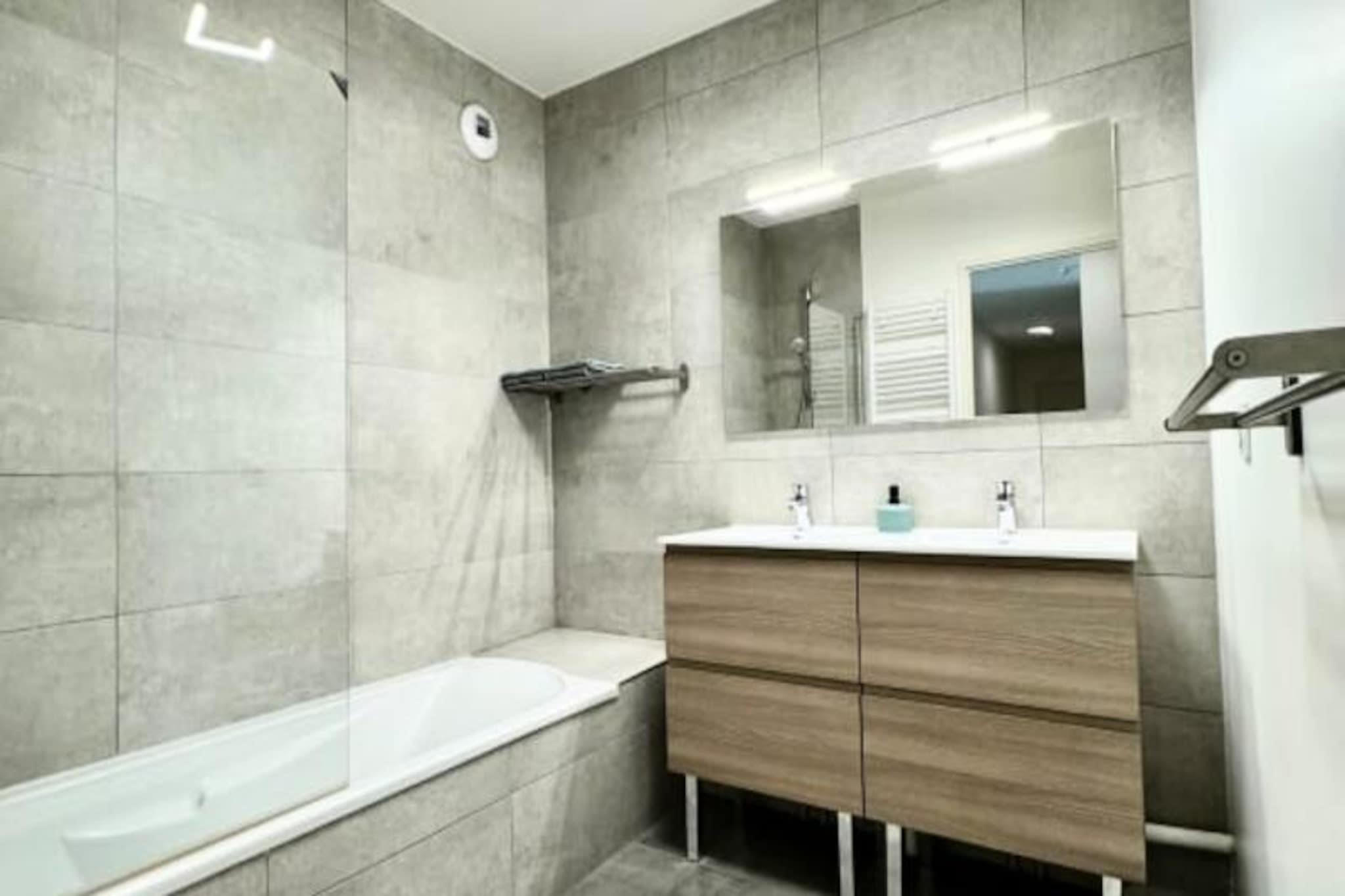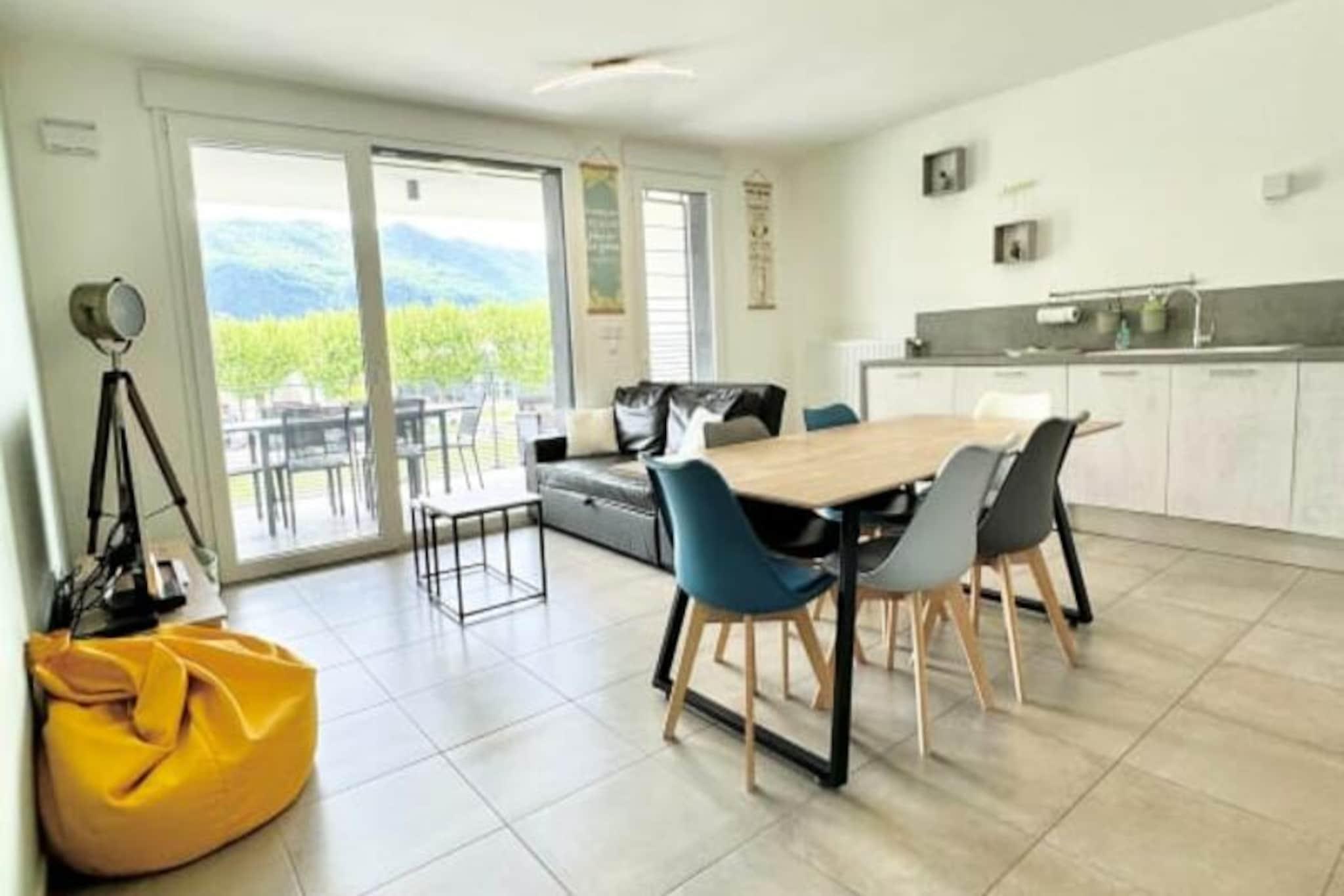 Vågn op til den fredfyldte skønhed ved Lac du Bourget, Frankrigs største naturlige sø, fra komforten i Dolce, en luksuriøs lejlighed, der er perfekt designet til familier eller grupper på op til 8 personer. Beliggende på første sal i en elegant bolig, tilbyder dette fristed en harmonisk blanding af moderne komfort og naturlig charme, beliggende mellem det rolige vand og de majestætiske bjerge i Aix-les-Bains. Uanset om du er her for en afslappende ferie eller en foryngende spa-oplevelse, er Dolce det perfekte sted. Lejligheden har tre rummelige soveværelser, herunder to med kingsize-senge og et med to enkeltsenge, der sikrer en god nats søvn for alle gæster. Den lyse stue og spiseplads har en blød sovesofa, et smart-tv og direkte adgang til en stor terrasse, hvor du kan nyde den fantastiske udsigt over søen. Et fuldt udstyret åbent køkken indbyder til nem madlavning, mens det moderne badeværelse og separate toilet øger komforten. Med fiberoptisk Wi-Fi, aircondition og en sikker parkeringsplads er alle detaljer omhyggeligt arrangeret for din komfort. Kun få skridt væk finder du en række restauranter, bagerier og butikker samt de berømte termiske bade i Aix-les-Bains. Tilbring dine dage med at udforske søen med aktiviteter som svømning, paddleboarding eller sejlads, eller tag på vandreture i de omkringliggende bjerge og nyd den betagende udsigt. Det livlige centrum med sin historiske charme og livlige markeder ligger kun en kort køretur eller busrejse væk. Dolce er mere end bare et sted at bo; det er en invitation til at fordybe dig i den naturlige skønhed og kulturelle rigdom i denne fortryllende region. Book dit ophold i dag og skab uforglemmelige minder ved bredden af Bourget-søen.