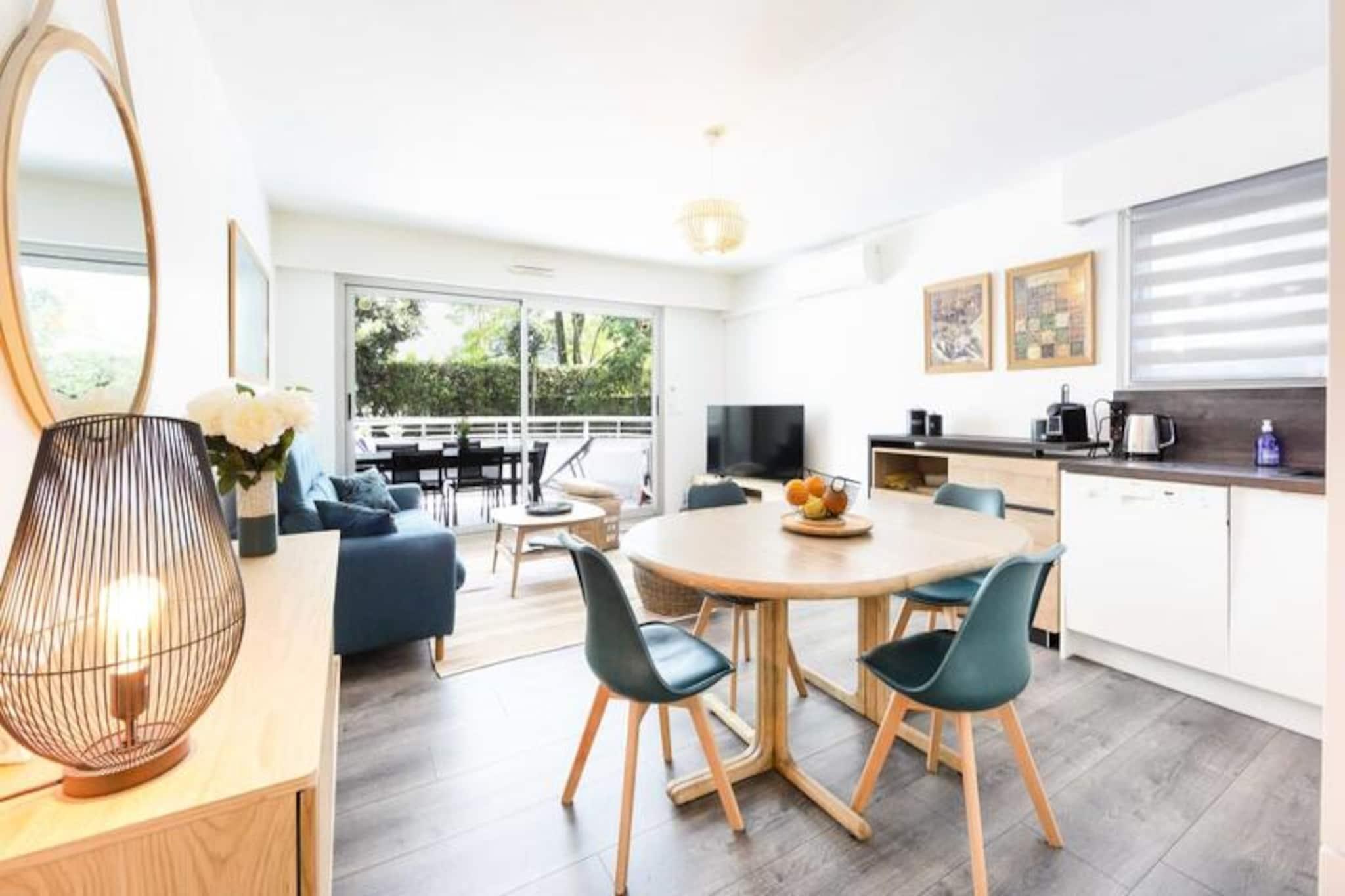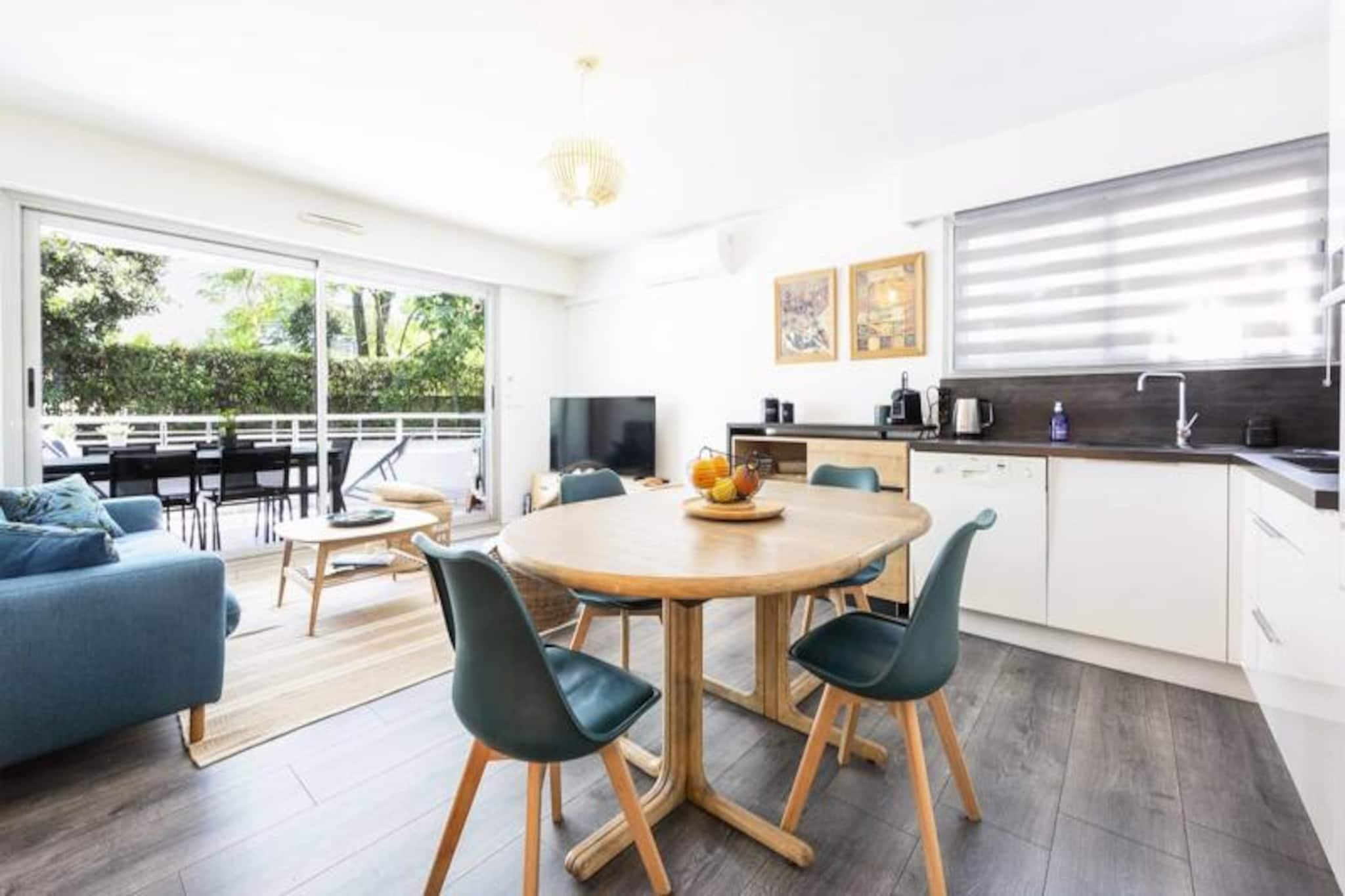 I hjertet af det prestigefyldte Ilette-distrikt i Antibes tilbyder denne elegante lejlighed et roligt tilflugtssted, kun 300 meter fra den gyldne sandstrand på Ponteil-stranden og 500 meter fra den rolige Salis-strand. Omgivet af charmen ved den franske riviera inviterer denne bolig i stueetagen dig til at slappe af i omgivelser, der blander kystskønhed med moderne luksus. Uanset om du slentrer langs den azurblå kystlinje eller nyder den pulserende lokale atmosfære, føles hvert øjeblik her som en middelhavsdrøm. Træd indenfor og oplev et gennemtænkt designet rum med to komfortable soveværelser, hver med en dobbeltseng, og aircondition for at sikre din komfort på varme sommerdage. Den rummelige stue, udsmykket med en hyggelig sofa og spiseplads, åbner ud til en privat terrasse på 12 m², hvor du kan nyde din morgenkaffe eller et glas vin om aftenen. Det åbne køkken er fuldt udstyret med alt hvad du behøver, fra komfur til kaffemaskine, hvilket gør det nemt at tilberede måltider derhjemme. To moderne badeværelser, det ene med badekar og det andet med bruser, gør dit ophold endnu mere behageligt. Lejligheden er en del af en sikker, eksklusiv bolig med to private parkeringspladser i en garage og en elevator for nem adgang. Kun få skridt væk finder du bagerier, købmandsforretninger, apoteker og meget mere, der sikrer, at alle dine behov bliver opfyldt. Familier vil sætte pris på nærheden til Ponteil-stranden, som tilbyder et sikkert og beskyttet miljø for børn. For dem, der søger eventyr, ligger den ikoniske Cap d'Antibes lige rundt om hjørnet og byder på naturskønne vandreture og betagende udsigter. Uanset om du er her for at slappe af på stranden, udforske Antibes' historiske charme eller forkæle dig selv med de kulinariske lækkerier på Côte d'Azur, er denne lejlighed den perfekte base for en uforglemmelig ferie. Book dit ophold og oplev magien ved den franske riviera.