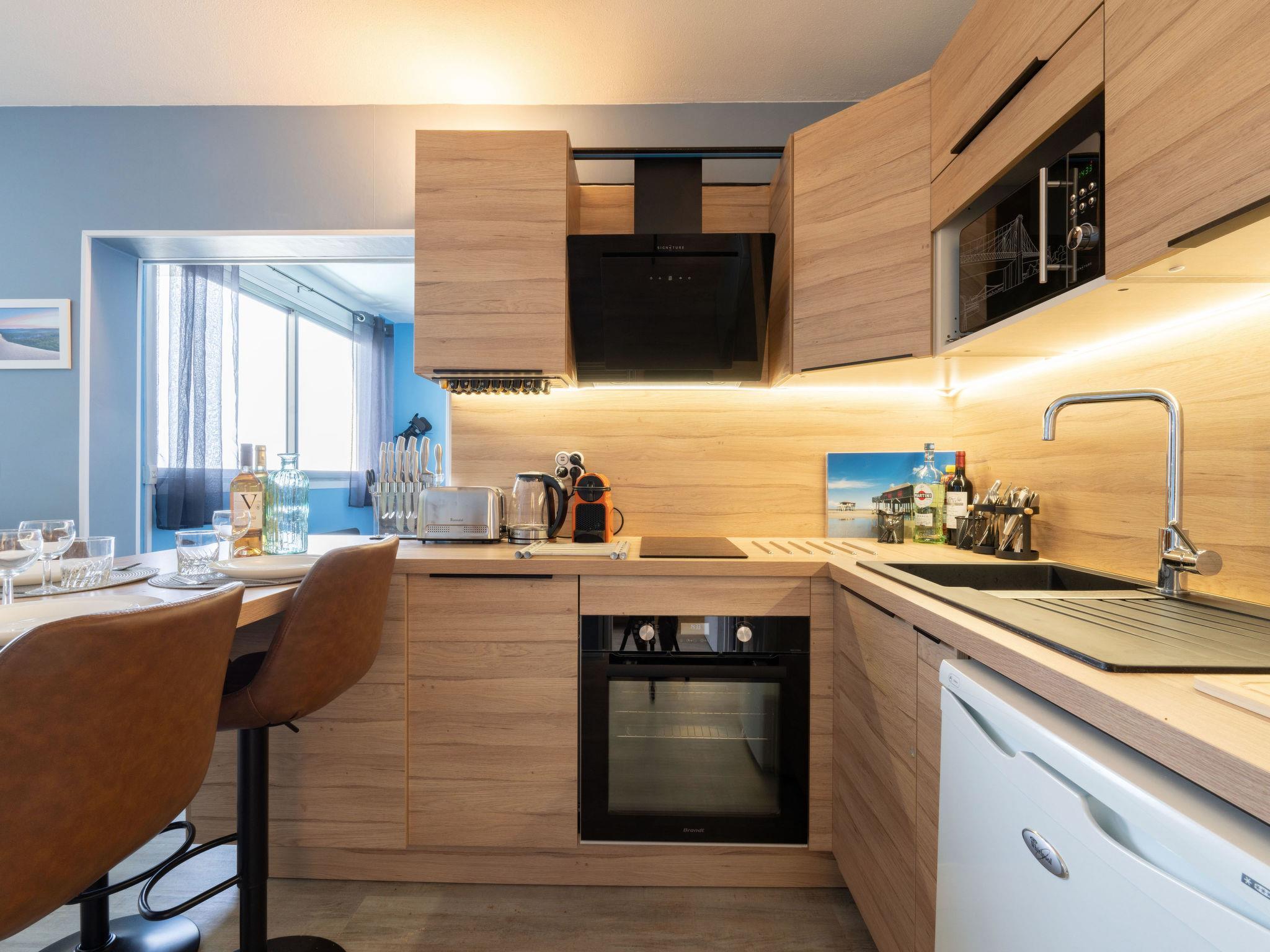 3-room apartment 45 m2 on 9th floor. Beautiful and tasteful furnishings: living/dining room with TV (flat screen). Exit to the balcony. 1 room with 1 french bed (1 x 140 cm, length 190 cm). 1 room with 2 beds (90 cm, length 190 cm). Open kitchen (oven, dishwasher, 2 induction hot plates, toaster, kettle, microwave, electric coffee machine, Capsules for coffee machine (Nespresso) extra). Shower, sep. WC. Electric heating. Balcony 5 m2, north facing position and west facing position. Balcony furniture. Partial view of the sea. Facilities: washing machine, hair dryer. Internet (WiFi, free). Parking space n 1355 (fenced 1 car). Please note: smoke alarm. Offer by a private individual according to Art. 155, IV of CGI. 330090025593B