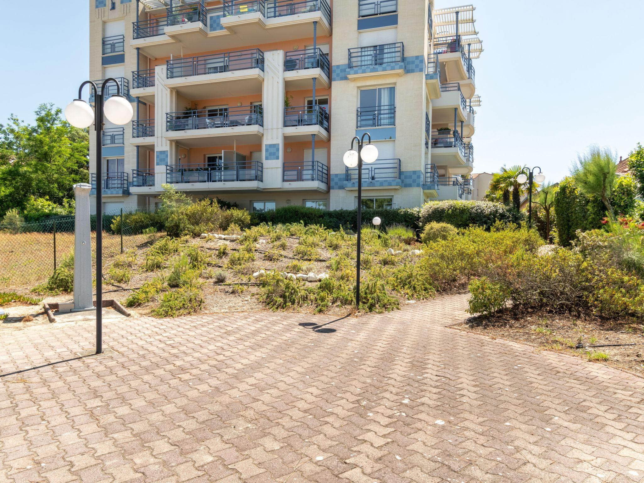 Arcachon: Residence "Océane". In the district of Aiguillon, from the sea, 50 m from the beach, direct access to the beach. Shop 500 m, grocery, supermarket 450 m, shopping centre 3.1 km, restaurant, bar 400 m, bakery 450 m, café 400 m, bicycle rental 900 m, bus stop "Aiguillon" 450 m, railway station "Arcachon" 2 km, sandy beach "Plage de l'Aiguillon" 50 m, park "Mauresque" 2.7 km, thermal baths "Thalazur" 4.8 km. Sports harbour 400 m, golf course (18 hole) 4.3 km. Nearby attractions: Dune du Pyla 10.1 km, Marché Municipal 2.5 km, ArcaJetMarine 220 m, Observatoire Sainte Cécile 3 km, Eratopia 7.9 km, Navette Maritime pour le Cap Ferret 2.5 km. Well-known lakes can easily be reached: Lac de la Magdeleine 9.2 km, Lac de Cazaux 15.4 km. The keys‘ handover takes place by the agency Interhome in Arcachon, 3 km.