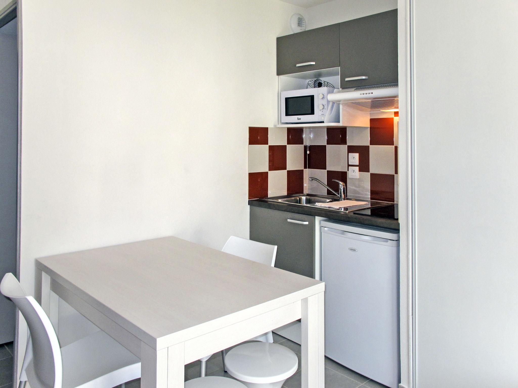 "Le Domaine de la Corniche", 2-room terraced house 30 m2 on 2 levels. Bright, practical furnishings: living/sleeping room with 1 double sofabed, dining table and TV. Kitchenette (2 ceramic glass hob hotplates, kettle, microwave, electric coffee machine). Sep. WC. Upper floor: 1 room with 1 french bed (160 cm). Bathroom. Electric heating. Balcony or terrace. Terrace furniture. Please note: non-smokers only. Maximum 1 pet/ dog allowed. Smoke alarm, fire extinguisher.