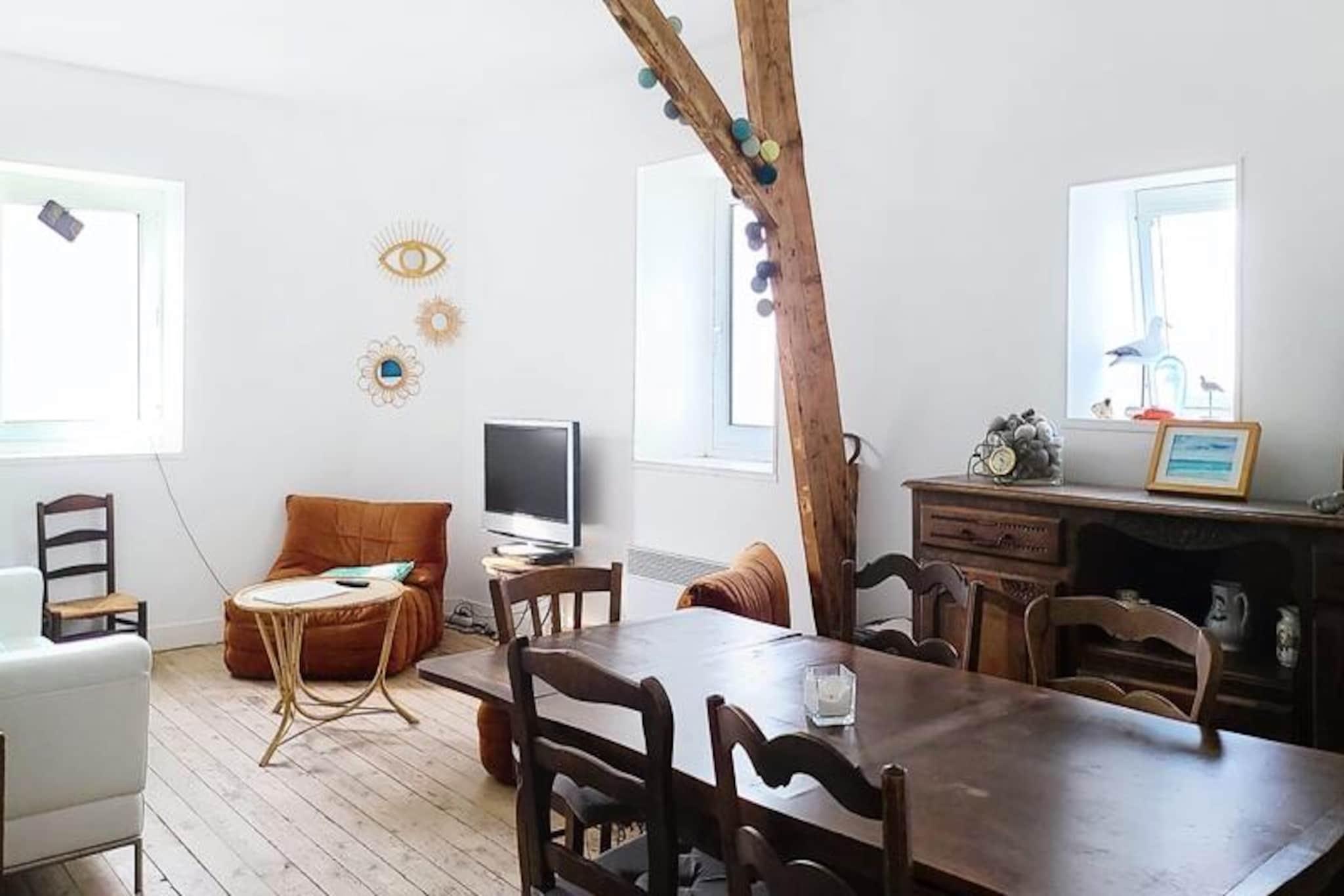 Højt over den maleriske kystlandsby Ault tilbyder denne charmerende lejlighed på tredje sal en uovertruffen flugt med en betagende udsigt over Baie de Somme. Når du går op ad trappen, bringer hvert trin dig tættere på et panorama, der vil gøre dig målløs - et perfekt tilflugtssted for dem, der søger ro og inspiration ved havet. Indsatsen belønnes med en uforglemmelig udsigt, der strækker sig over horisonten og blander de dramatiske klipper med det rolige vand nedenfor. Indvendigt er lejligheden designet til både komfort og stil. En rummelig og solrig stue inviterer dig til at slappe af i den hyggelige sofa eller nyde måltider ved spisebordet, mens du kigger ud på det stadigt skiftende havlandskab. Det fuldt udstyrede køkken er perfekt til at tilberede friske, lokale delikatesser og tilbyder en udsigt, der gør enhver madlavningsoplevelse til en fornøjelse. To generøst store soveværelser med bløde dobbeltsenge giver et afslappende fristed efter en dag med udforskning, mens det moderne brusebad sikrer bekvemmelighed og lethed. For ekstra komfort er der mulighed for at leje linned for at gøre dit ophold helt stressfrit. Denne lejlighed ligger i hjertet af Ault, lige ved porten til Baie de Somme, en region berømt for sin naturlige skønhed og autenticitet. Gå en tur gennem de charmerende gader i Onival og Bois de Cise, eller udforsk de vilde strande og tårnhøje klipper, der definerer denne unikke kystlinje. Uanset om du slentrer langs kysten eller opdager skjulte stier, byder området på uendelige muligheder for eventyr og afslapning. Perfekt til par, familier eller venner. Denne idylliske ferie kombinerer charmen fra en historisk kystlandsby med komforten ved et moderne liv. Book dit ophold i dag, og oplev magien ved Ault - en sand perle på den franske kystlinje.