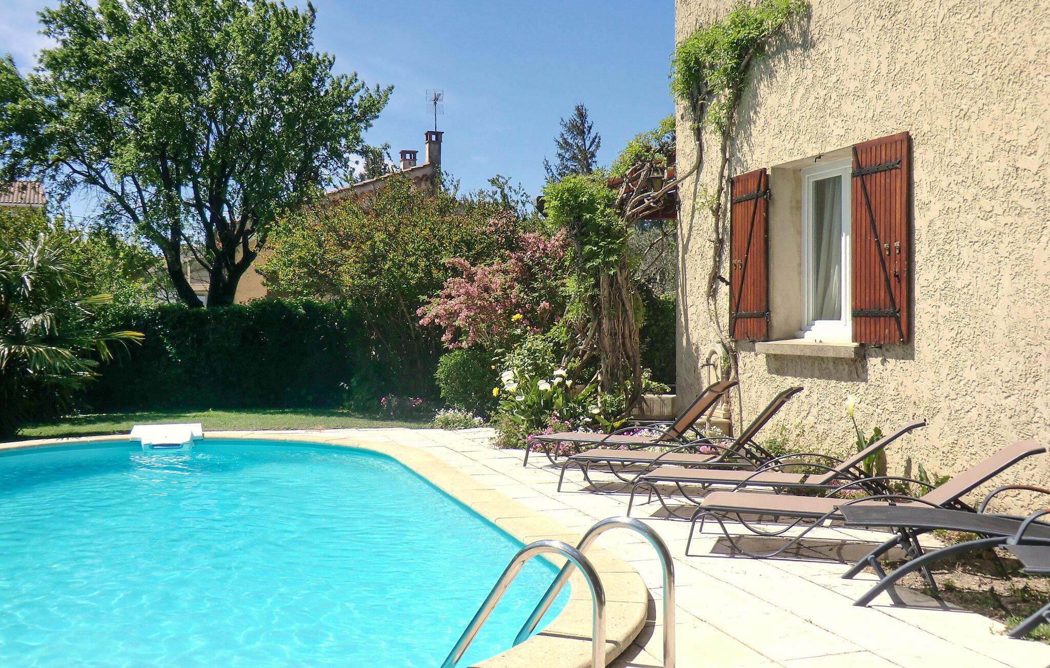 I hjertet af Vaucluse, ikke langt fra den storslåede by Avignon, inviterer dette rummelige hus jer til at tilbringe idylliske dage med venner eller familie. Eksperimenter med provencalske urter i det store køkken, søg efter en interessant bog i det interne bibliotek, og tag plads i den hyggelige stue til sociale spilleaftener.
