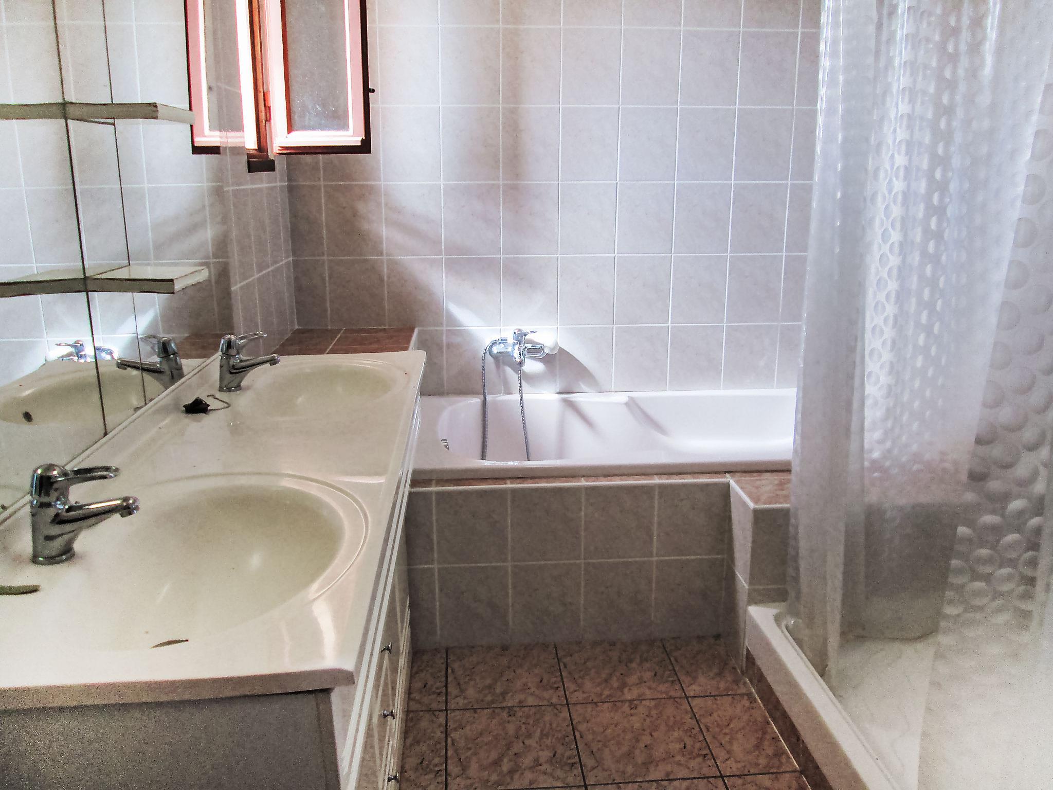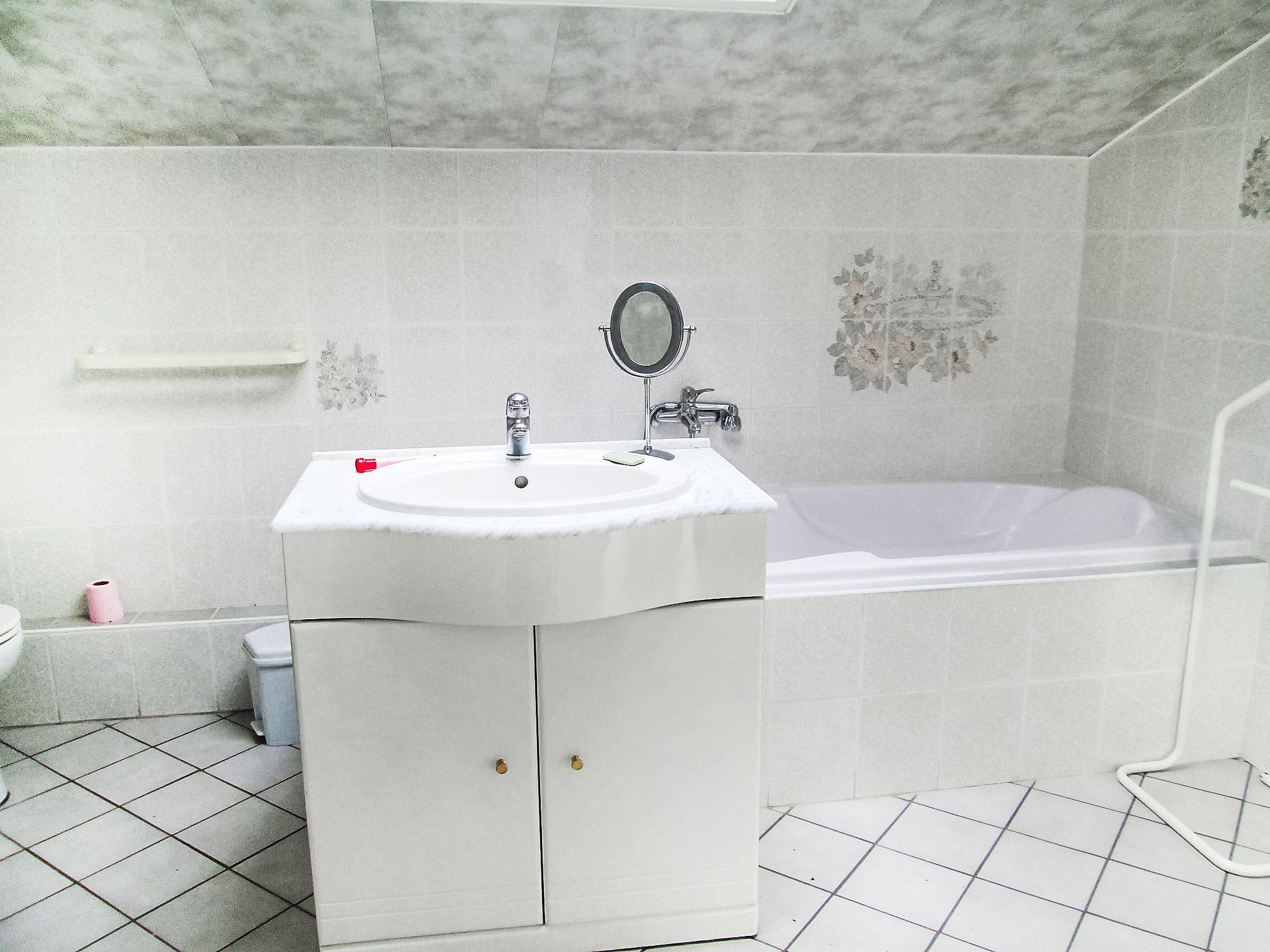 5-room house 270 m2 on 2 levels. Spacious, practical furnishings: entrance hall. Large living/dining room with open-hearth fireplace and satellite TV (flat screen), DVD. Exit to the terrace. 1 room with 1 french bed (140 cm, length 190 cm), TV. Exit to the garden. 1 room with 2 beds (90 cm, length 190 cm). Exit to the terrace. Open kitchen (oven, dishwasher, 2 induction hot plates, 2 gas rings, toaster, microwave, freezer, electric coffee machine, Capsules for coffee machine (Senseo) extra) with bar. Bath/shower, sep. WC, double hand-basin. Upper floor: 1 room with 2 beds (90 cm, length 180 cm). Exit to the terrace. 1 room with 1 french bed (1 x 160 cm, length 200 cm), bath/shower/WC, TV and DVD. Gallery with sloping ceilings, ceiling height 170 cm with 1 bed (80 cm, length 190 cm). 2 terraces covered. Terrace furniture, barbecue, deck chairs (6). Beautiful view. Facilities: washing machine, iron, children's high chair, baby cot, logs (free). Internet (WiFi, free). Please note: non-smoking house. Maximum 1 pet/ dog allowed. Smoke alarm. Instead of an enclosed bedroom, some sleeping areas are located in an open-plan area (gallery, alcove, etc.).