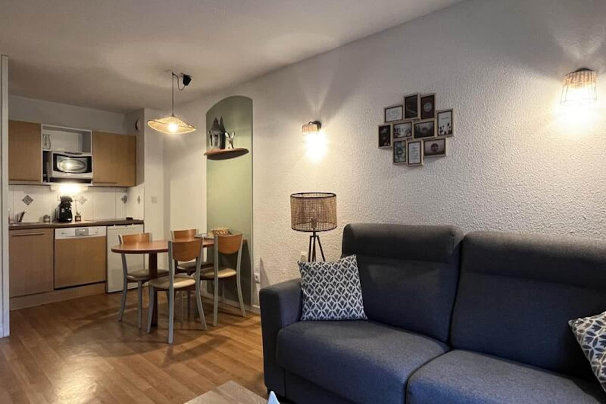 Højt beliggende i hjertet af de franske Pyrenæer, hvor tinderne rører skyerne, og luften er frisk og forfriskende, ligger Pic du Midi-residensen i La Mongie. Med udsigt over det vidtstrakte Grand Tourmalet-skiområde inviterer dette charmerende tilflugtssted dig til at omfavne bjergenes skønhed, uanset om det er dækket af sne eller badet i sommersolskin. Her føles hvert øjeblik som et postkort, der kommer til live. Residensen er en harmonisk blanding af traditionel pyrenæisk arkitektur med træ- og stenelementer, der udstråler varme og autenticitet. Din hyggelige lejlighed på 35 m² er omhyggeligt designet med en sydvendt balkon, der tilbyder uforstyrret udsigt over de majestætiske tinder. Indenfor finder du en komfortabel opholdsstue med en sovesofa, et fuldt udstyret åbent køkken og et roligt soveværelse med en dobbeltseng. Badeværelset har et badekar med bruser, perfekt til at slappe af efter en dag med eventyr. Moderne faciliteter, herunder valgfri Wi-Fi og babysæt, sikrer et stressfrit ophold for både familier og par. Lige uden for døren tilbyder residensen en opvarmet indendørs pool, et fitnessrum og praktisk salg af liftkort og udlejning af udstyr. I nærheden finder du en restaurant, et pizzeria og et bageri, der tilfredsstiller dine kulinariske lyster. Om vinteren lover Grand Tourmalet-området spændende skiløjper og snefyldt sjov, mens sommeren forvandler regionen til et paradis for vandreture, cykling og whitewater-sport. Uanset om du søger adrenalinpumpende aktiviteter eller rolige øjeblikke omgivet af natur, er Pic du Midi-residensen din port til uforglemmelige minder i Pyrenæerne. Lad bjergene inspirere dit næste eventyr.