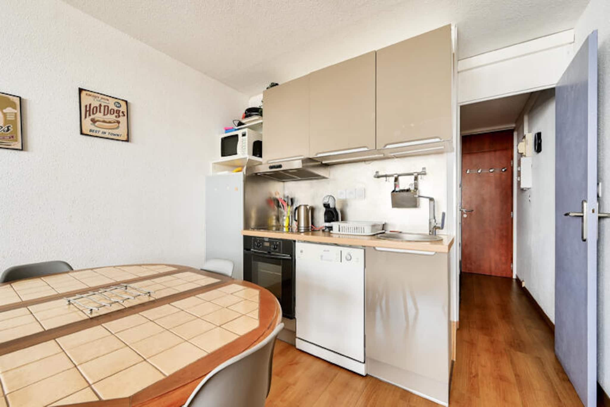 Højt oppe i de majestætiske Pyrenæer, hvor snedækkede bjergtoppe møder den endeløse himmel, tilbyder La Mongie Tourmalet Residence en fredfyldt alpin oase. Kun 1 km fra det livlige centrum af La Mongie-feriestedet kombinerer dette hyggelige fristed spændingen ved ski-in/ski-out-adgang med roen i et bjergparadis. Uanset om du søger eventyr eller afslapning, er denne ejendom din indgang til uforglemmelige vinter- eller sommeroplevelser. Indvendigt byder boligen på en gennemtænkt 28 m² stor lejlighed, der er perfekt til par eller små familier. Stuen med sin komfortable sovesofa åbner ud mod en privat altan, hvor du kan nyde den friske bjergluft og den betagende udsigt. Det åbne køkken er udstyret til at tilberede solide måltider efter en dag på pisterne, mens spiseområdet er et indbydende sted at samles. Badeværelset har badekar med bruser, der sikrer komfort og bekvemmelighed. Yderligere faciliteter såsom WiFi, babyudstyr og linned service er tilgængelige på anmodning, så dit ophold bliver så problemfrit som muligt. Kun 300 meter væk finder du alt, hvad du har brug for: skilifte, ESF-kontoret, et indkøbscenter og meget mere. En gratis shuttle-service forbinder boligen med resortets centrum og kører indtil kl. 22.00 i skoleferierne. Udover skiløb tilbyder området en lang række aktiviteter, fra snescooterkørsel og hundeslædekørsel til sneskovandring og kælkning, så der er noget for enhver smag. Uanset om du er tiltrukket af spændingen på pisterne eller Pyrenæernes naturlige skønhed, lover La Mongie Tourmalet Residence et mindeværdigt ophold. Nyd charmen ved livet i bjergene og skab varige minder på denne fortryllende destination.