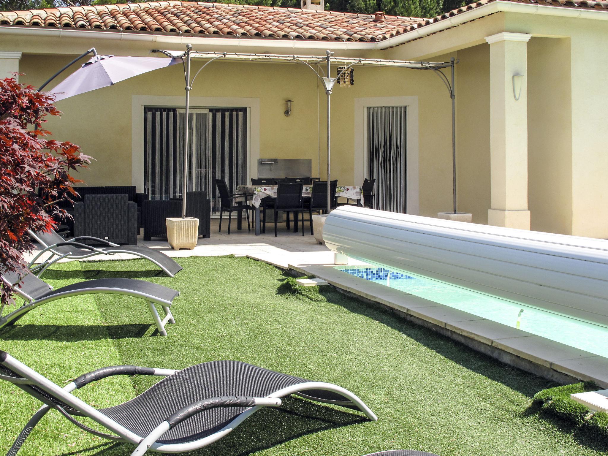 Modern, beautiful house "Au Romarin", built in 2011. 4.5 km from the centre of Bagnols-en-Forêt, 13 km from the centre of Fayence, 24 km from the centre of Saint Raphael, in the residential district, 18 km from the sea, 15 km from the lake. Private: property 1'200 m2 (fenced) with wildlife garden, swimming pool (10 x 5 m, depth 150 cm, seasonal availability: 01.Jan. - 31.Dec.). Outdoor shower, boules, terrace, parking (for 3 cars) on the premises. Shop 1 km, bus stop 2.5 km, railway station "Saint Raphael Valescure" 25 km, sandy beach "Fréjus" 18 km, lake Saint Cassien 15 km. Golf course (18 hole) 8 km. Nearby attractions: Gorges du Verdon. Well-known lakes can easily be reached: Lac de Sainte Croix, Lac de Saint Cassien. Hiking paths: Les Adrets de l'Esterel, Gorges du Blavet. The owner does not accept any youth groups. Neighbourhood highly sensitive to noise. Quietness and good behaviour expected.