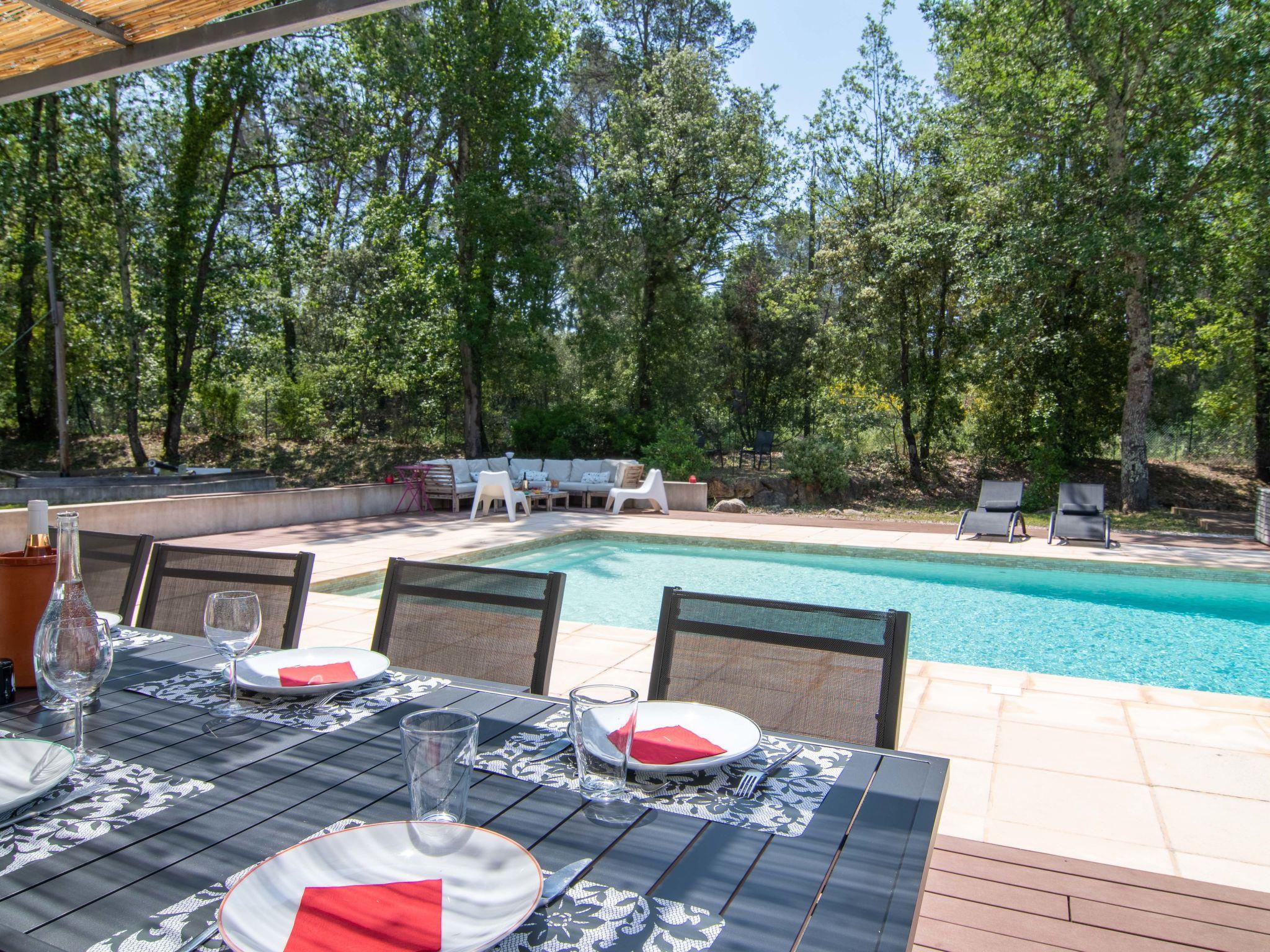 Beautiful single-family house. 4.5 km from the centre of Bagnols en forêt, 13 km from the centre of Fayence, 24 km from the centre of Saint Raphael, in the residential district, 18 km from the sea, 15 km from the lake. Private: property 1'500 m2 (fenced), swimming pool (10 x 5 m, depth 80 - 160 cm, seasonal availability: 01.Jan. - 31.Dec.) with alarm system. Outdoor shower, table tennis, boules, parking (for 2 cars) on the premises. Grocery 1 km, restaurant 4.5 km, bus stop 2.5 km, railway station "Saint Raphael Valescure" 25 km, sandy beach "Fréjus" 18 km. Golf course (18 hole) 8 km. Nearby attractions: Gorges du Blavet. Well-known lakes can easily be reached: Saint Cassien 15 km, Sainte Croix 73 km. The owner does not accept any youth groups. Neighbourhood highly sensitive to noise. Quietness and good behaviour expected.