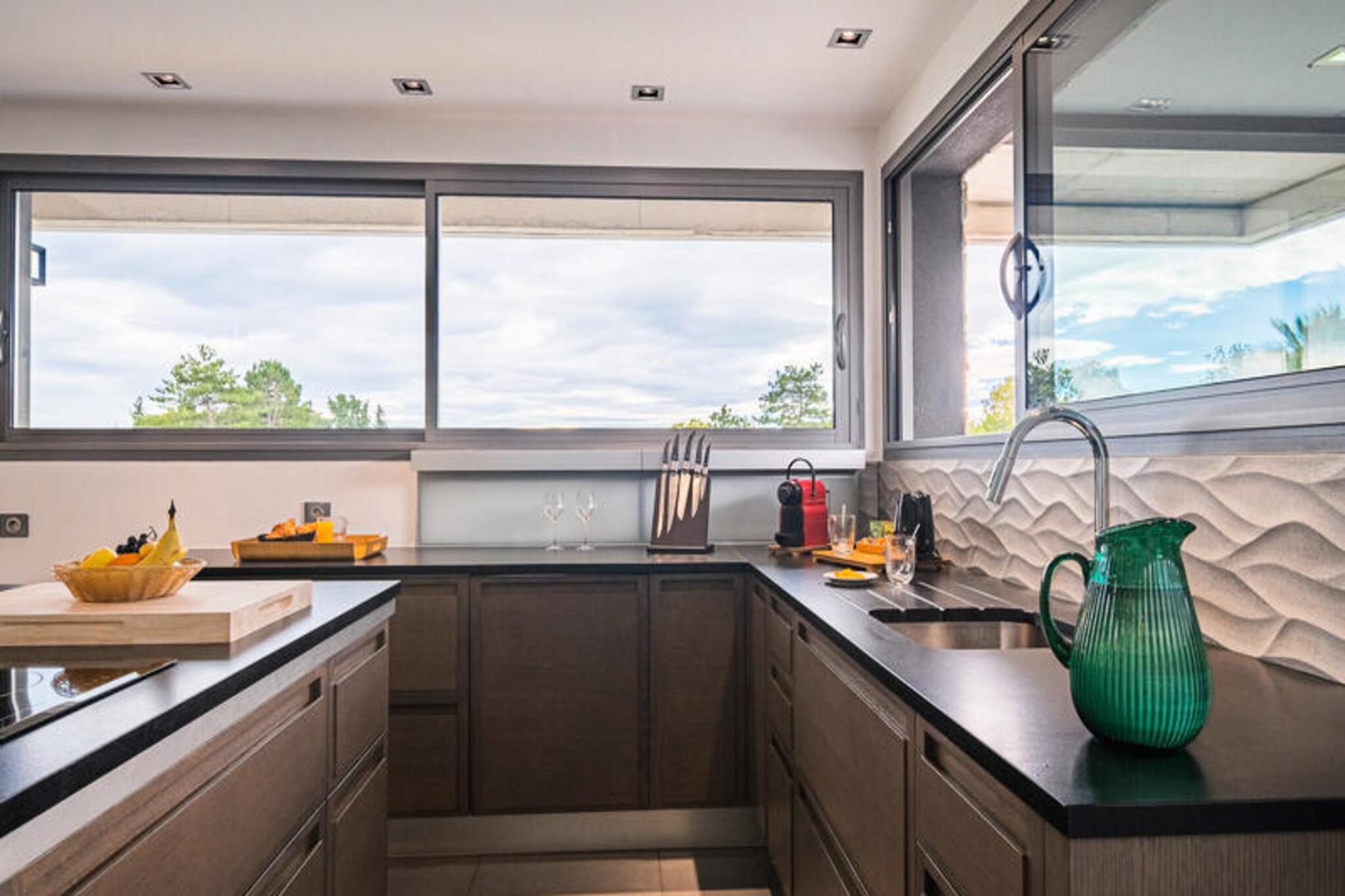 Denne rummelige villa tilbyder et luksuriøst ophold med en kombination af komfort og stil. Med tre soveværelser med kingsize-senge og et ekstra soveværelse med to enkeltsenge, er det ideelt for familier eller grupper. Villaen er kæledyrsvenlig og tillader et kæledyr pr. indkvartering mod et ekstra gebyr. Andre faciliteter inkluderer i alt fire badeværelser, et med badekar og hammam-bruser, og resten tilbyder praktiske faciliteter. Ejendommen omfatter også en komfortabel stue, et fuldt udstyret køkken og en privat terrasse med en swimmingpool til afslapning. Beliggende i den smukke Hérault-region giver denne villa nem adgang til lokale attraktioner med et fantastisk landskab, der inviterer til udforskning. Ejendommen byder på en golfbane og en wellness-spa med behandlinger og massager, som er tilgængelige mod et tillægsgebyr. For dem, der ønsker at slappe af, tilbyder den udendørs opvarmede swimmingpool en fredelig flugt. I nærheden finder du charmerende caféer, lokale markeder og lækre restauranter, hvor du kan opleve smagen fra Sydfrankrig. Villaens køkken er fuldt udstyret med moderne apparater til at tilberede måltider, mens en garage giver sikker parkering for din bekvemmelighed. Andre faciliteter omfatter gratis udendørs parkering, sengelinned, håndklæder og morgenbuffet. Ejendommen har også en ladestation til elbiler, hvilket gør det nemt at udforske området. Slutrengøring er inkluderet med undtagelse af affald og service.