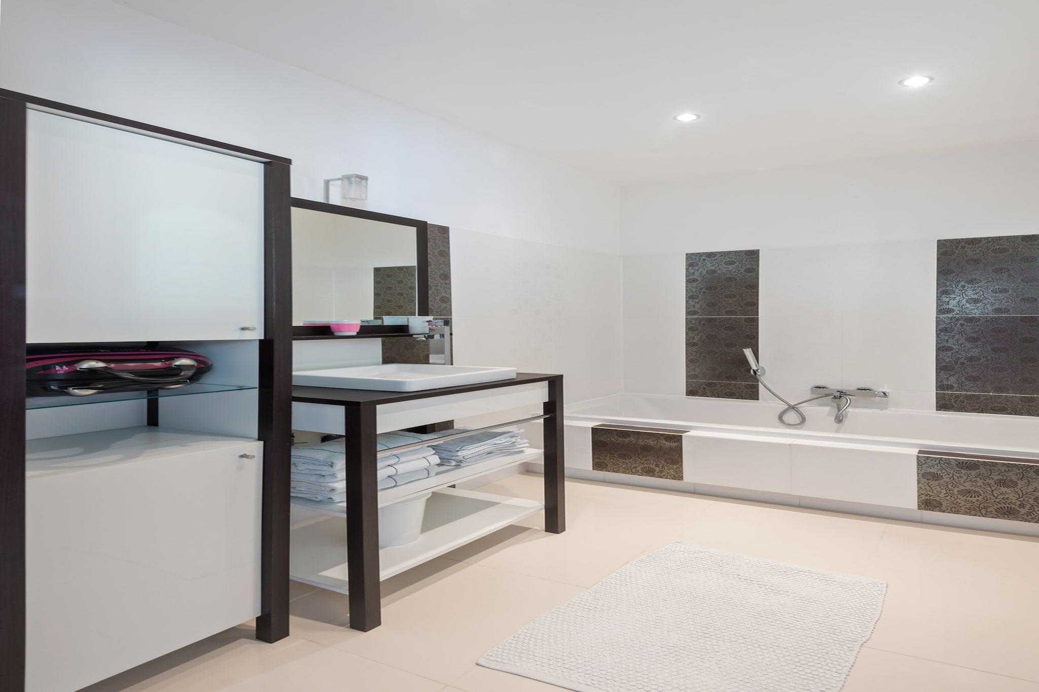 Stueetage: (Stue(Fjernsyn(fladskærm, Internationale TV-kanaler), pejs, sofahjørne, klimaanlæg), Køkken(bar, 2x kaffemaskine(kopper, kaffepude), mikrobølgeovn, opvaskemaskine , køle-fryseskab), Soveværelse med badeværelse(dobbeltseng(160 x 200 cm), Fjernsyn(Internationale TV-kanaler, Ingen hollandske TV-kanaler), klimaanlæg), toilet, tørretumbler, vaskemaskine) På 1. etage: (soveværelse(dobbeltseng(160 x 200 cm), Fjernsyn, balkon), soveværelse(dobbeltseng), soveværelse(dobbeltseng), badeværelse(bruser), toilet, klimaanlæg) terrasse, have, havemøbler, liggestole, swimmingpool(privat, 9 x 5 m., opened from 1/2 Jun upto and including 1/2 Sep), barneseng, barnestol, Pladegrill