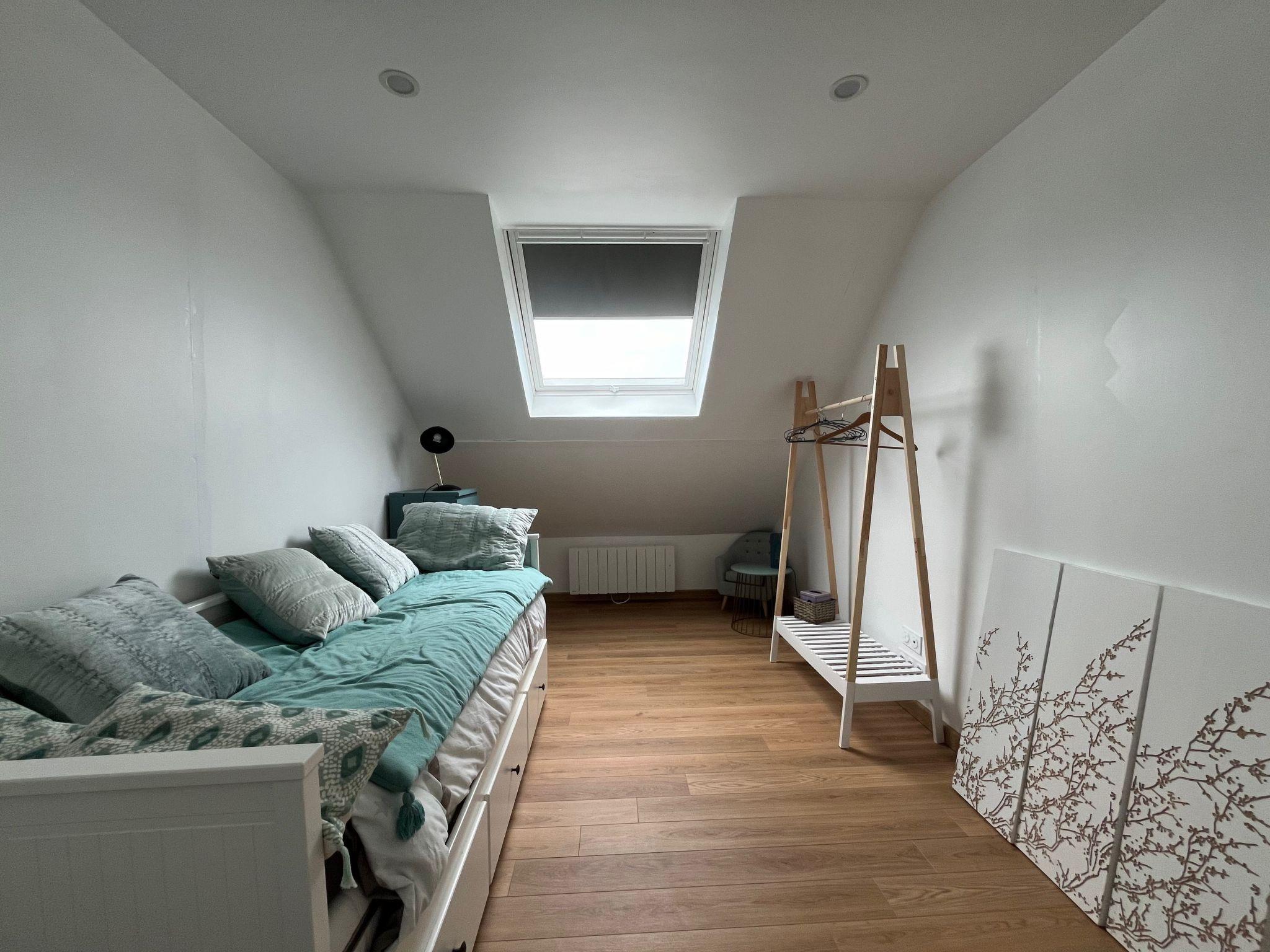 A bedroom with a trundle bed (simply pull out the drawer to make a 2nd bed).