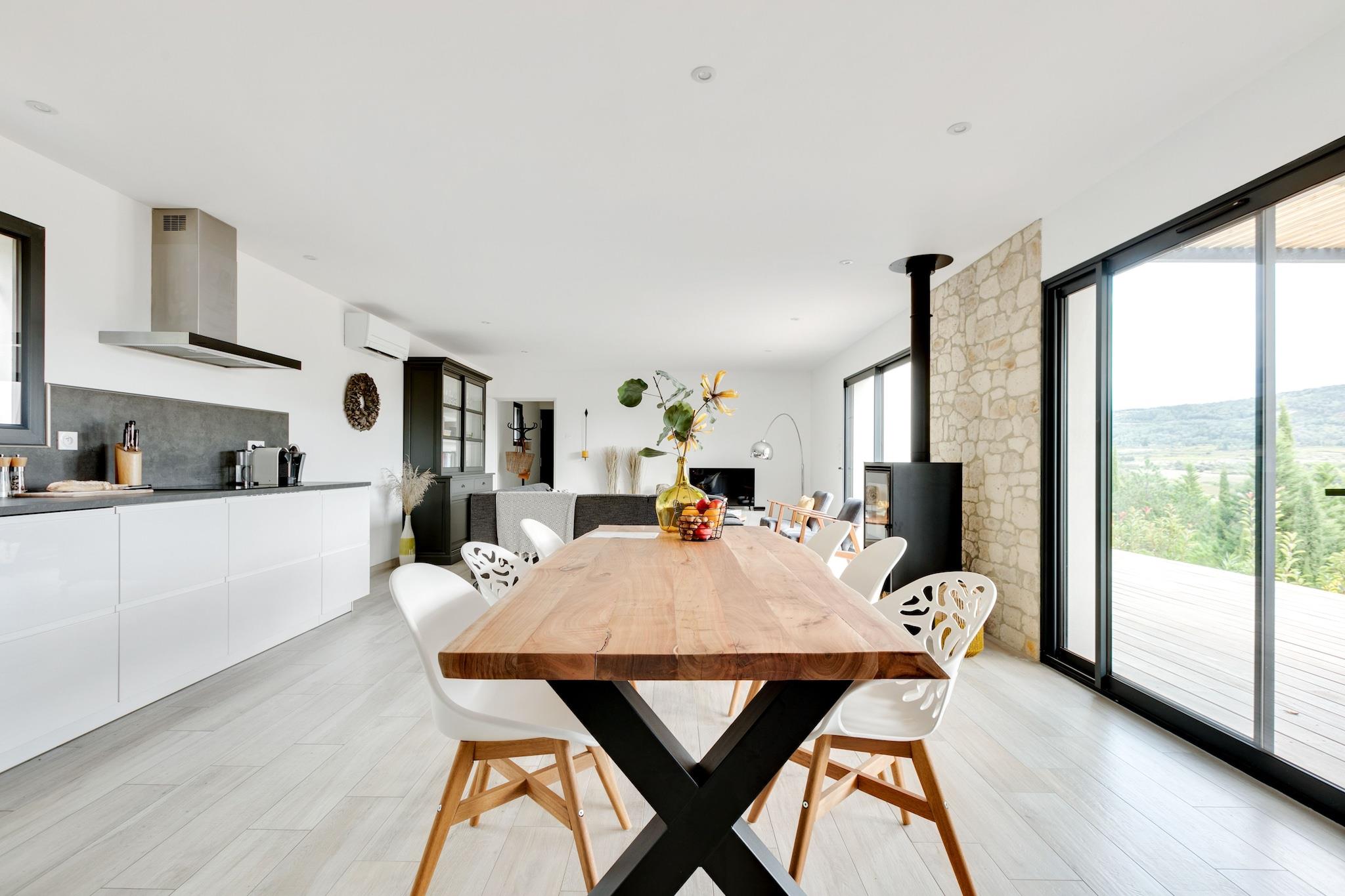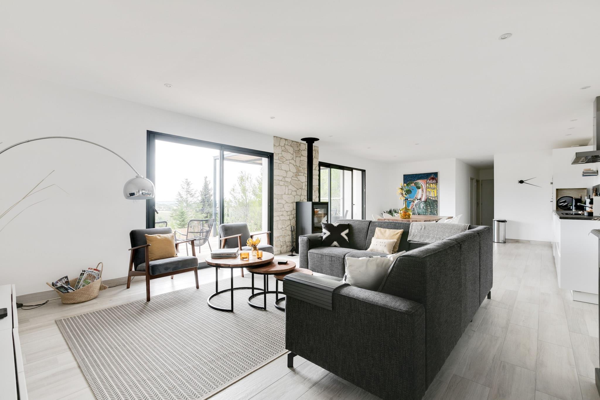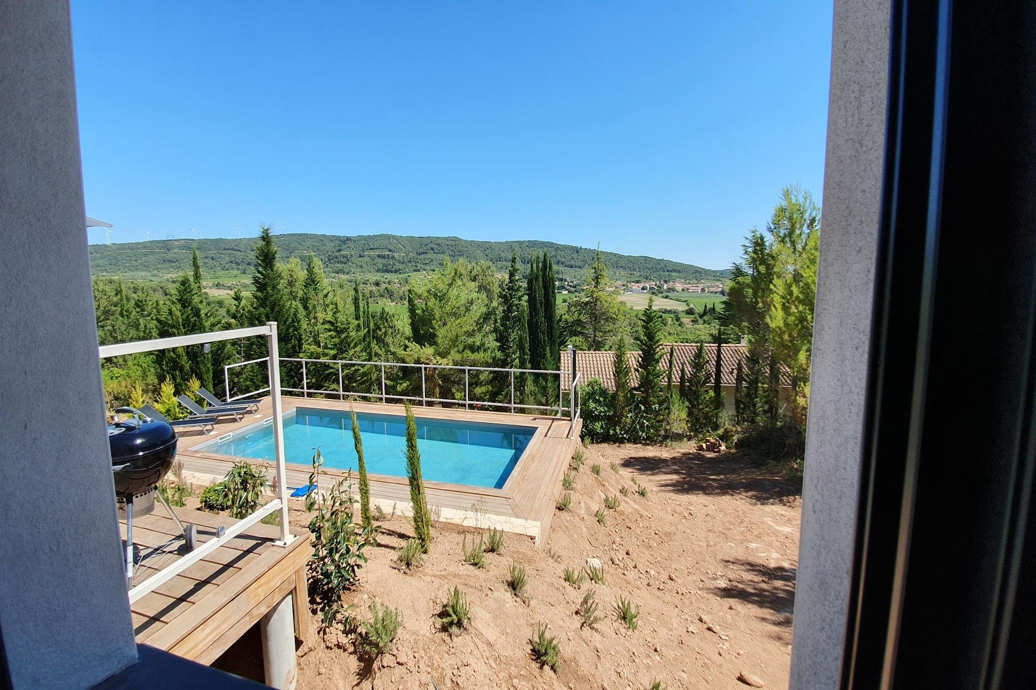 Beliggende i udkanten af Beaufort tilbyder denne stilfulde en-etagers villa en betagende udsigt over landsbyen Oupia. Med 3 soveværelser og plads til 6 gæster er det ideelt for familier, der søger komfort og charme i hjertet af naturparken Haut-Languedoc. Nyd middag på det nærliggende Auberge Saint Martin eller udforsk ruinerne af Beaufort Slot. Kun 2 km væk finder du butikker og restauranter, mens Olonzac byder på et livligt tirsdagsmarked. Villaen har et elegant interiør, automatiske skodder, aircondition og eget badeværelse. Et par trin fører til indgangen, hvilket sikrer privatliv og ro. Udendørs ophold er en fornøjelse med tre terrasser, en grill og liggestole. Den panoramiske udsigt og nærheden til Lac de Jouarres, Canal du Midi og Narbonne Plage (30 km) gør det til en perfekt base for vandreture, svømning og sightseeing. Med fiberoptisk internet, privat parkering og børnevenlige faciliteter blander denne villa moderne komfort med naturlig skønhed.