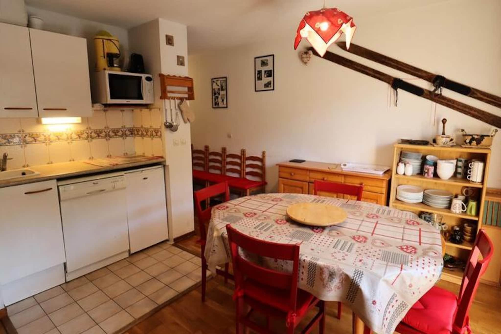 Omgivet af de franske alpers fredfyldte skønhed tilbyder denne charmerende lejlighed i Arêches-Beaufort et hyggeligt tilflugtssted for op til seks gæster. Den er perfekt beliggende i gåafstand fra skiløjperne og landsbyen og kombinerer bekvemmelighed med en betagende udsigt over bjergene. Uanset om du er her for at nyde vintersport eller sommervandreture, er de rolige omgivelser ideelle til at genoprette forbindelsen med naturen og skabe varige minder. Boligen har også en fælles swimmingpool i sommermånederne, hvilket tilføjer et forfriskende præg til din alpine ferie. Indenfor er lejligheden omhyggeligt designet til komfort og praktisk anvendelighed. Entréhallen fører til et bjerghjørne med to køjesenge, et lille soveværelse med en dobbeltseng og en stue med en sovesofa. Den vestvendte balkon inviterer dig til at slappe af med havemøbler, mens du nyder den fantastiske udsigt over bjerggræsgange. Et fuldt udstyret tekøkken med opvaskemaskine gør madlavning ubesværet, mens det separate badeværelse og toilet sikrer bekvemmelighed for alle gæster. Moderne bekvemmeligheder som tv og varme giver en hyggelig atmosfære under hele dit ophold. Beliggenheden er uovertruffen, med skiløjper kun få skridt væk og landsbyen med butikker, restauranter og lokal charme. Om sommeren forvandles området til et paradis for friluftsentusiaster med stier, der snor sig gennem frodige enge, og muligheder for cykling og dyrelivsobservation. Den fælles pool i boligen er perfekt til afslapning efter en dag med udforskning. Uanset om du søger eventyr eller afslapning, er denne lejlighed din port til de fortryllende landskaber i Arêches-Beaufort. Med sin blanding af komfort, bekvemmelighed og alpin charme lover den en uforglemmelig ferieoplevelse.