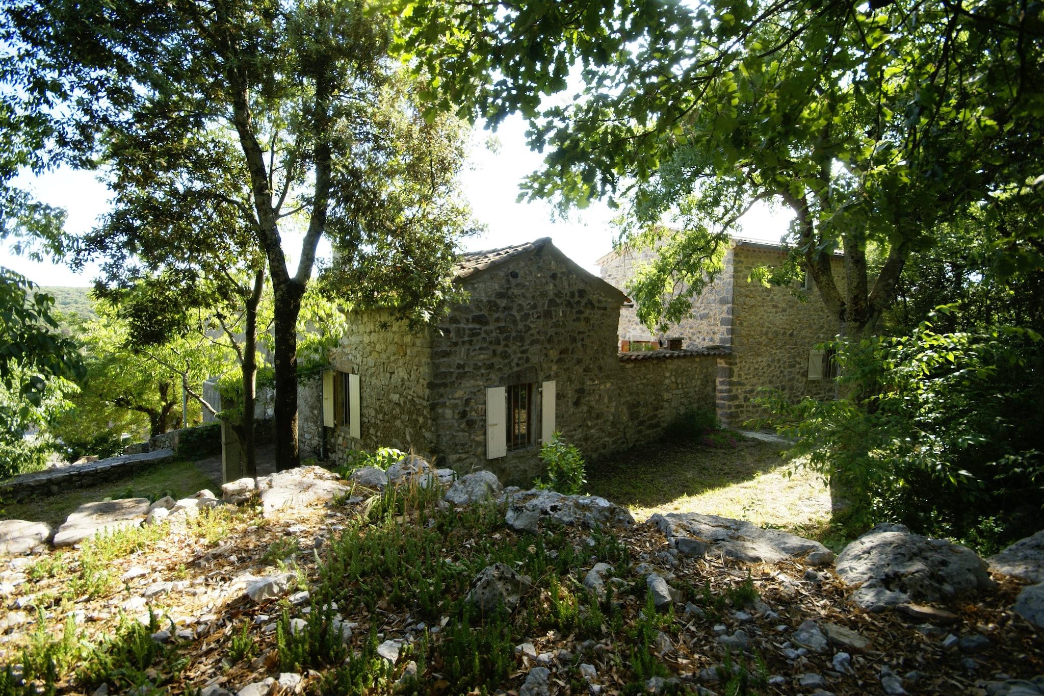Dette charmerende fritliggende feriehus, der ligger på en skovklædt bjergskråning nær Beaulieu, tilbyder et fredeligt tilflugtssted for op til 8 gæster. Omgivet af vinmarker og egeskove, er det perfekt for naturelskere og familier, der søger ro. Den rummelige gårdhave har havemøbler, liggestole og en grill - ideel til dovne eftermiddage og udendørs måltider. Hjemmet er opdelt i to bygninger: en til afslapning i dagtimerne og den anden til afslappende nætter. Beaulieu ligger blot 3 km derfra og byder på nødvendigheder og lokal smag. For at shoppe kan du gå til Centre Commercial Beaulieu, og til fællesbegivenheder eller sammenkomster er Beaulieu Village Hall (Community Centre) et indbydende sted. Nærliggende attraktioner omfatter de fantastiske Gorges de l'Ardèche, Pont d'Arc og de forhistoriske vidundere Grotte Chauvet. Familier vil elske forlystelsesparken ved Le Rouret og svømning ved Mazet-Plage. Uanset om du vandrer gennem egeskove, udforsker huler eller nyder lokalt køkken på hyggelige restauranter, tilbyder dette tilflugtssted på en bakketop den perfekte blanding af komfort og eventyr i det sydlige Ardèche.