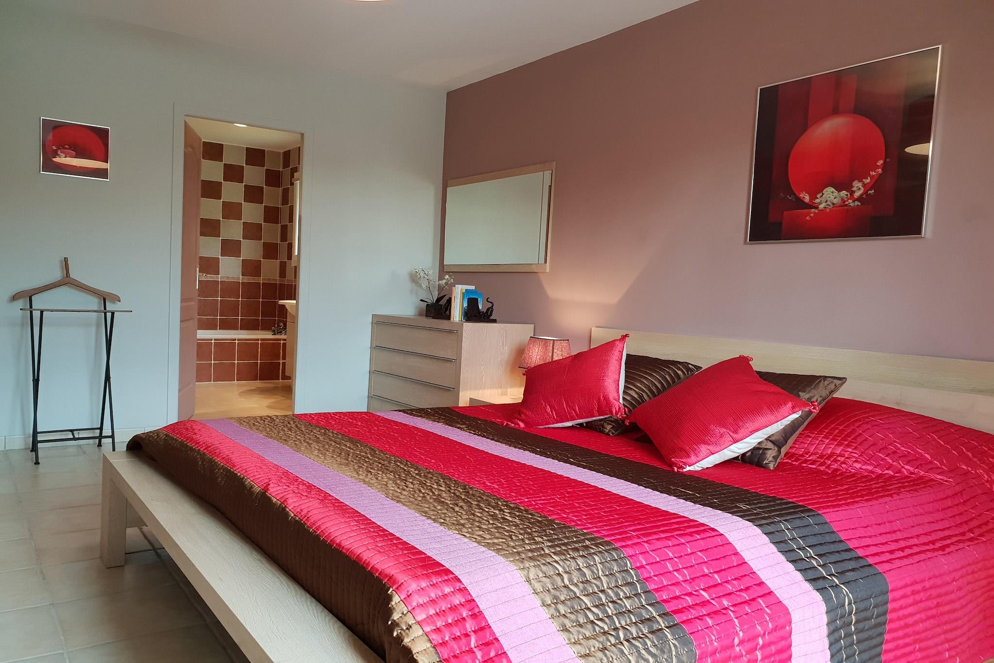 Rummelig villa med privat pool og vingårdscharme Oplev skønheden i Provence i denne fantastiske 5-værelses villa i Beaumes-de-Venise, kun få skridt fra La Salette-floden. Perfekt til familier eller grupper på op til 10, dette tilflugtssted med aircondition har en funklende privat pool, en frodig indhegnet have og to møblerede terrasser, der er ideelle til udendørs spisning. Indenfor sørger en lys stue-spisestue, fuldt udstyret moderne køkken og hyggelige soveværelser for komfort, mens en grill tilføjer det perfekte touch til sommeraftener. Førsteklasses beliggenhed i hjertet af Provence Beliggende kun 600 m fra den charmerende bymidte, vil du have bagerier, butikker og restauranter inden for gåafstand. Udforsk lokale smagsoplevelser med Muscat des Papes-vin, Côtes du Rhône-årgange og friske meloner og abrikoser fra nærliggende gårde. Eventyr venter med tennisbaner, ridning og golf i nærheden, plus skiløb på Mont Ventoux kun 15 km væk. Splashworld Provence ligger en kort køretur derfra til familiehygge. Spisning og kultur i nærheden Forkæl din gane på lokale bistroer eller nyd god middag i nærliggende Avignon (20 km). Gå en tur i historiske gader, opdag markeder fyldt med håndværksvarer, og tag naturskønne køreture gennem lavendelmarker og vinmarker. Uanset om du slapper af ved poolen eller udforsker provencalsk charme, tilbyder denne villa den perfekte balance mellem ro, luksus og tilgængelighed - ideel til at skabe uforglemmelige minder.