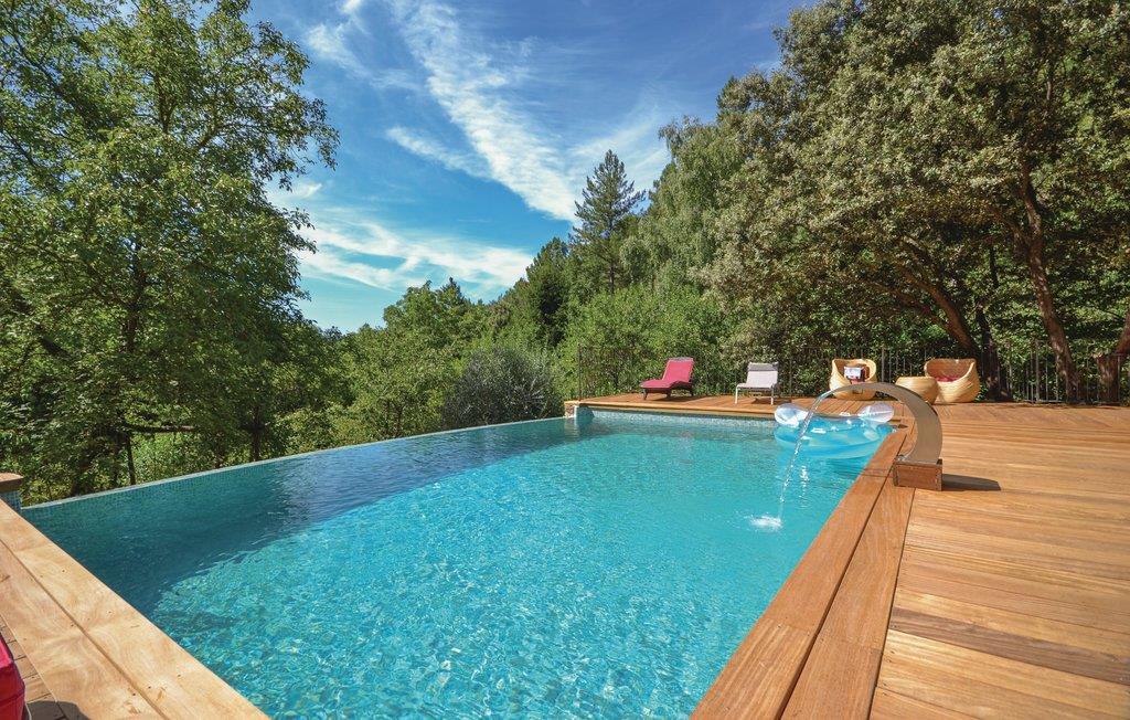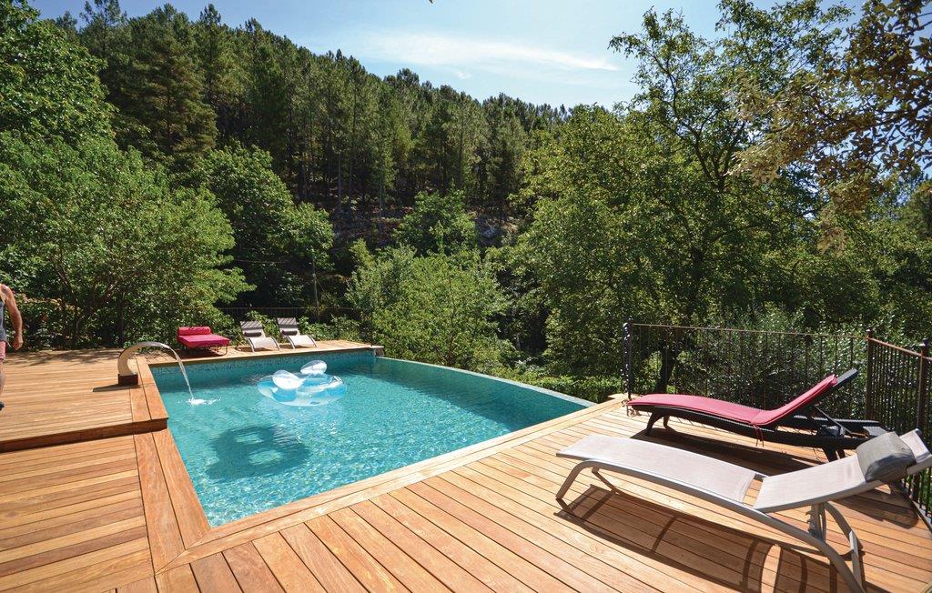 Dette charmerende sommerhus i Cévennes er en ægte oase af fred i naturen og fortryller sine gæster med en privat swimmingpool og et smukt interiør samt køkken. Beliggende nær Ardèche og Gard, er dette den rigtige adresse for rejsende, der kan lide at kombinere natur og sport på ferien. Den afsondrede swimmingpool er omgivet af en træterrasse og ligger i en smuk have. Besøg det imponerende middelalderlige Château d'Aujac og dets tilstødende fortryllende landsby. Der er også sportslige udflugtsmuligheder såsom kanoer. I regionen er der smukke markeder at opdage. Indkørslen er ikke brolagt 300 m.