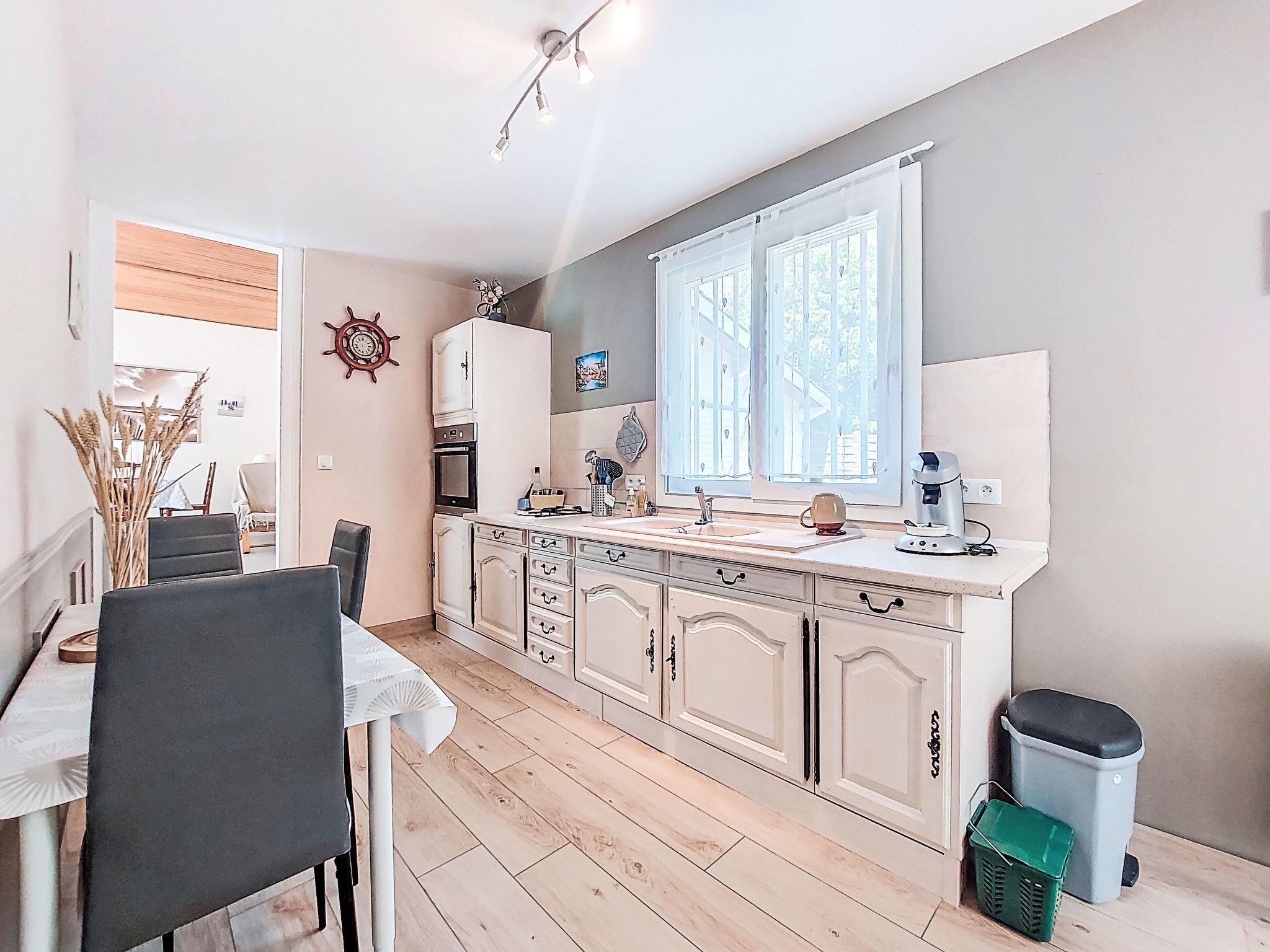 "L‘Estuaire", 3-room semi-detached house 80 m2. Object suitable for 5 adults. Cosy furnishings: living/dining room with dining table and TV (flat screen), radio and CD-player. Exit to the garden. 1 room with 1 bed (90 cm, length 190 cm), 1 french bed (140 cm, length 190 cm). 1 room with 1 french bed (140 cm, length 190 cm). Kitchen (oven, dishwasher, 4 gas rings, toaster, kettle, microwave, freezer, electric coffee machine) with small dining table. Shower, sep. WC. Electric heating. Terrace. Terrace furniture, barbecue (portable), deck chairs (2), box-room. View of the garden and the canal. Facilities: washing machine, iron, children's high chair, baby cot. Internet (WiFi, free). Please note: suitable for families. Non-smoking house. Maximum 1 pet/ dog allowed. Smoke alarm. AQB110