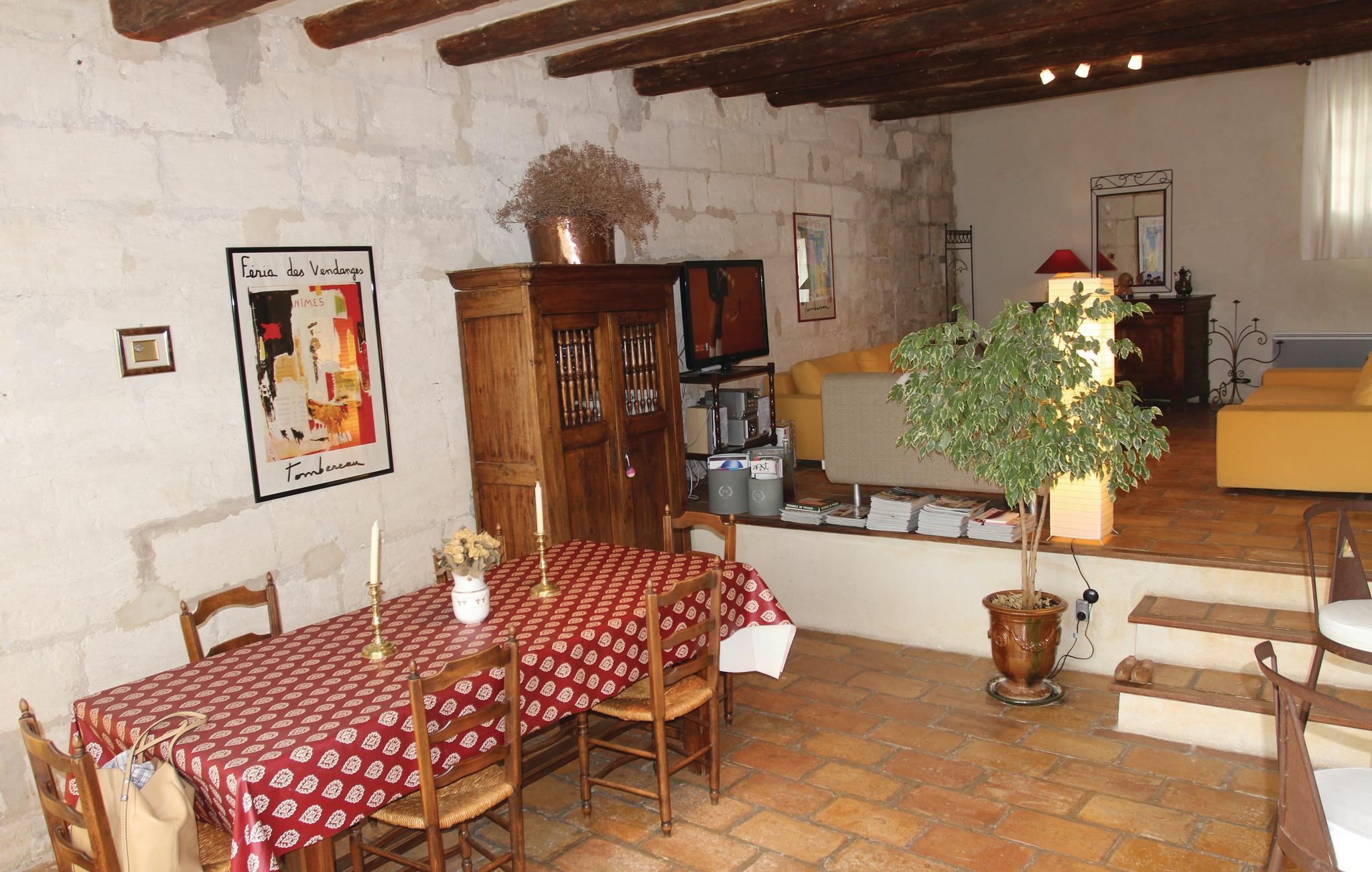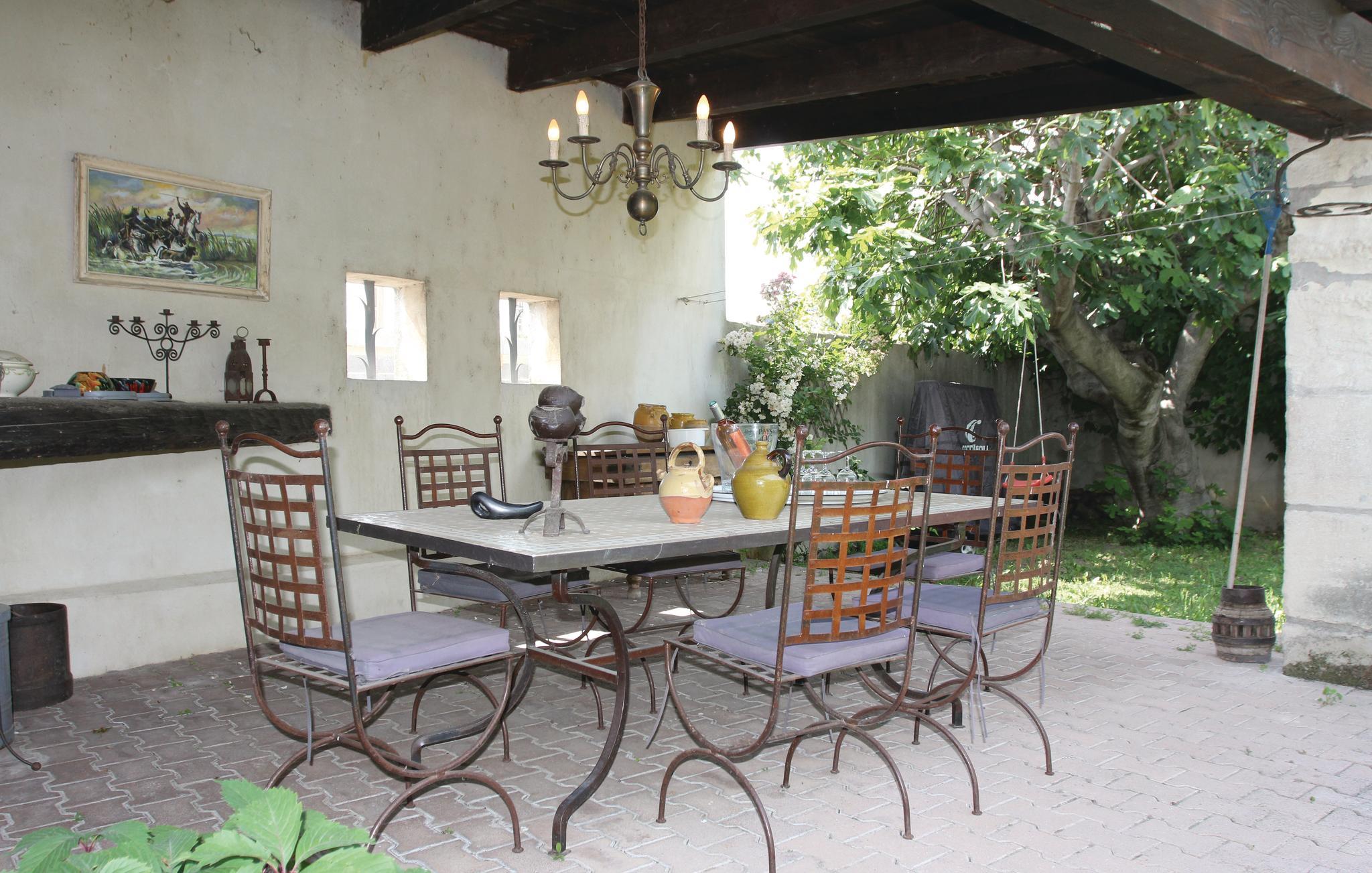 Denne store afdeling af et indbydende hus der ligger ved porten til Camargue, har en unik beliggenhed ikke langt fra centrum af den gamle bydel i Bellegarde med højt tronende tårn og flere springvand. Den grønne gård, der hører til dette familievenlige hus, åbner sig til en lille have med træer og et charmerende udendørs køkken med grill, der ligger op mod terrassen med mange solskinstimer. Der er god plads i huset, stuen er hyggelig og komfortabel. Den velplejede indretning er understreget af de frilagte loftsbjælker og de rå stenmure. Den lille havn i Bellegarde ligger ud til kanalen der forbinder Rhône og Sète. Her er I ikke langt fra Alpillernes skønne byer, fx Baux-de-Provence, den galloromanske Saint-Remy-de-Provence samt Camargue, der indbyder til ture på hesteryg, mellem Middelhavet, vådområder og rismarker og hvor I kan se vilde tyre og lyserøde flamingoer. Besøg byerne Nîmes og Arles, byer med en spændende historie, hvor der afholdes mange festivaler i de gamle romerske arenaer.