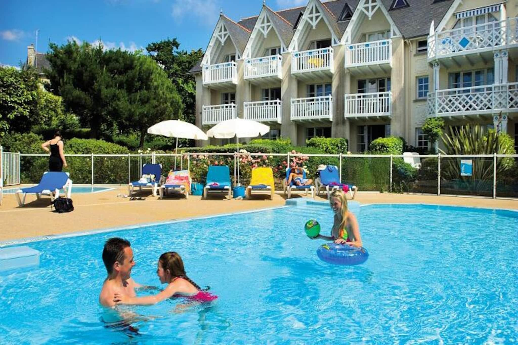 I hjertet af det sydlige Bretagne, hvor havet møder frodige landskaber, inviterer Cap Glénan-residensen i Bénodet dig til en rolig kystferie. Dette charmerende kystparadis ligger kun 800 meter fra det pulserende bycentrum og den berømte Bénodet-spa og tilbyder en ideel blanding af afslapning og eventyr. Forestil dig at vågne op til den friske havbrise, nyde en afslappet morgenmad i din lyse, farverige lejlighed og gå ud på en dag med udforskning eller forkælelse. Residensen har en 2-værelses lejlighed designet til op til fire gæster, komplet med et åbent køkken, en rummelig spiseplads og en hyggelig stue, der er perfekt til afslapning efter en dag med aktiviteter. Den opvarmede udendørs swimmingpool, der er åben fra april til september, tilføjer et strejf af luksus til dit ophold, mens den direkte adgang til stranden sikrer, at du aldrig er langt fra de beroligende bølger. Med essentielle faciliteter og Maeva Home Comfort Label, der garanterer fremragende værdi, er denne indkvartering skræddersyet til en ubekymret ferieoplevelse. Bénodets charme strækker sig ud over det gyldne sand. Som en berømt badeby er det et paradis for sejladsentusiaster og en indgangsport til uforglemmelige udflugter. Oplev den kunstneriske charme i Pont-Aven, de historiske gader i Concarneau eller de betagende Glénan-øer. Uanset om du udforsker de lokale markeder, nyder frisk fisk og skaldyr eller begiver dig ud på kysteventyr, er hvert øjeblik her gennemsyret af bretonsk autenticitet. Vælg Cap Glénan for dens uovertrufne beliggenhed, gennemtænkte faciliteter og løftet om at skabe dyrebare minder ved havet. Uanset om du søger ro eller spænding, er dette din perfekte base i Bretagne.