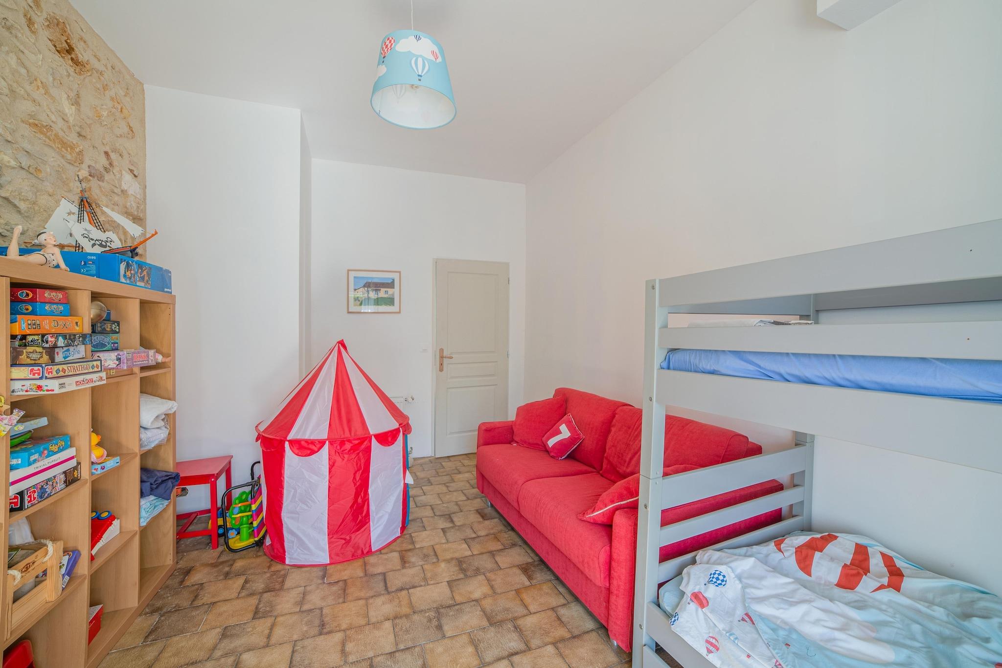 Gemt væk i hjertet af Bergerac, kun 120 meter fra den maleriske Dordogne-flod, er dette charmerende feriested perfekt for dem, der søger en blanding af afslapning, natur og fransk charme. Dette hjem er omgivet af en privat have og byder på en forfriskende, opvarmelig pool - ideel til at køle af i de varme sommermåneder - samt et hyggeligt loungeområde og grillplads til at nyde udendørs spisning under solen eller stjernerne. Familier og grupper vil elske de fredelige omgivelser med sjove legeredskaber til børn og tankevækkende detaljer som en høj stol for at sikre komfort for alle aldre. Uanset om du starter din morgen med en svømmetur, slapper af med en bog eller nyder et glas Bergerac-vin ved poolen, skaber dette hjem en perfekt balance mellem aktivitet og hvile. Beliggende i den berømte vinregion Dordogne, kan Bergerac prale af en rig kulturel og kulinarisk arv. Tag en kort gåtur til restauranter ved floden som Le Vin'Quatre eller La Table du Marché Couvert, som begge byder på lokale specialiteter og en charmerende atmosfære. Vinelskere kan udforske nærliggende vinmarker såsom Château de Monbazillac, kendt for sine søde hvidvine og panoramaudsigt. Ud over vinen og maden er Bergeracs gamle bydel fuld af brostensbelagte gader, bindingsværkshuse og museer dedikeret til Cyrano de Bergerac. Tag en traditionel gabarre-bådtur på Dordogne eller udforsk de nærliggende bastide-byer som Eymet og Monpazier, der er rig på middelalderhistorie. Dette hjem er ikke kun et paradis for afslapning, men også en fremragende base for at opdage det bedste fra Dordogne-regionen.