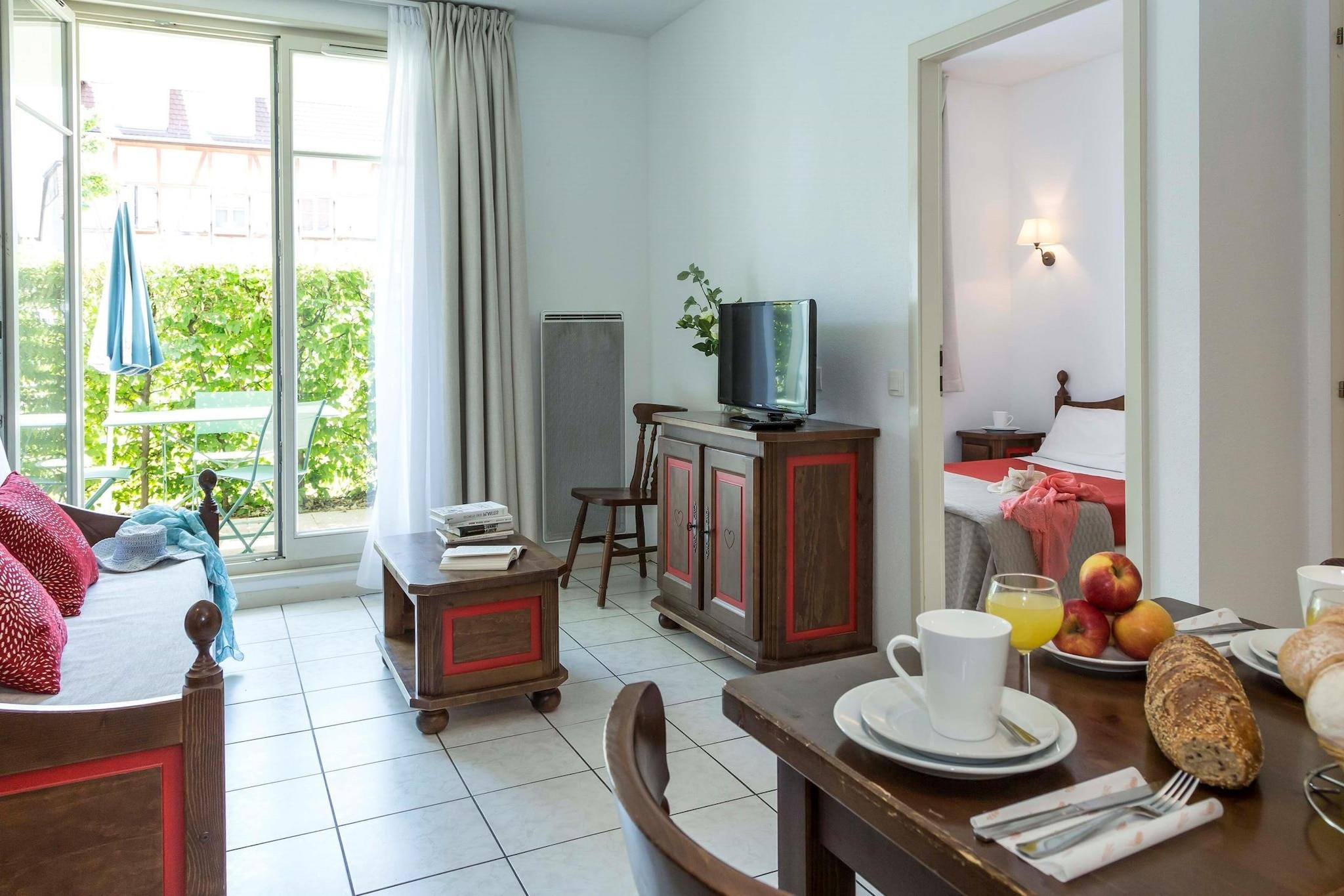 Charmerende ophold i hjertet af Alsace Velkommen til Résidence Le Domaine des Rois, hvor komfort møder charme kun en kort gåtur fra middelalderlandsbyen Bergheim. Denne velindrettede lejlighed har et fuldt udstyret tekøkken, hyggelige sammenklappelige senge og et moderne badeværelse med en kombination af badekar og bruser. Træd udenfor til din egen balkon eller haveterrasse - perfekt til at slappe af med et glas Alsace-vin efter en dag med opdagelse. Gæsterne har også adgang til boligens opvarmede indendørs swimmingpool, ideel til afslapning året rundt. Uovertruffen beliggenhed i vinlandet Lejligheden ligger på den berømte Alsace-vinrute og er omgivet af postkortværdige vinmarker og brostensbelagte gader med farverige huse. Du finder traditionelle restauranter, bagerier og vinkældre kun få minutter væk til fods. Tilbring dine dage med at udforske nærliggende landsbyer som Ribeauvillé og Riquewihr eller nyd vandreture gennem Vogeserne. Med Bergheims rige arv og centrale beliggenhed er det den perfekte affyringsrampe til dit Alsace-eventyr. Tag dit kæledyr med på rejsen Kæledyr er ikke kun tilladt - de er velkomne! Området omkring Bergheim byder på naturskønne vandrestier, hvor du og din lodne ledsager kan nyde den friske landluft. Gå ikke glip af den kæledyrsvenlige sti, der fører op til Château du Haut-Koenigsbourg for panoramaudsigt. Flere lokale caféer tilbyder også udendørs siddepladser, hvor kæledyr kan slappe af ved din side. Oplev Alsace med hele familien – inklusive firebenede medlemmer.