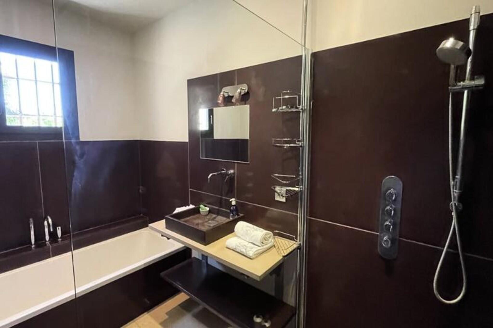 Meget smukt enplanshus, ideelt til et afslappende og behageligt feriested. Tæt på Aix en Provence og Marseille, men også på Alpilles, er det et ideelt sted at nyde regionen fuldt ud. Haven, den smukke terrasse og 8x4 swimmingpoolen samt det perfekt udstyret poolhus. tilbyde dig al den komfort, du har brug for til dit ophold. Beliggende på landet, omgivet af marker beregnet til gartneri, tilbyder denne smukke villa med sin U-form dig funktionelle og intime rum, smukke rumfang og omhyggelig indretning. 30 minutter fra strandene i Sausset les Pins og Camargue, kun 30 minutter fra strandene i Sausset les Pins og Camargue. nærhed fra Aix en Provence og Marseille, dens beliggenhed tilbyder dig adskillige fritids- eller kulturelle aktiviteter. **Indvendige rum**: * Stor entré med garderobe og gæstetoilet * Smuk opholdsstue med perfekt udstyret og indrettet åbent køkken med stor central ø. Badet spiseplads med lys udgang til side terrasse syd. * Kælder med ekstra køleskab og vaskerum. * Komfortabel stue med pejs. * Soveværelse 1: 160 cm seng med eget badeværelse * Soveværelse 2: 160 cm seng med tilhørende badeværelse * Soveværelse 3: 140 cm seng med tilhørende badeværelse * Børneområde bag stuen: 2 små senge Dette hus kan rumme maksimalt 6 voksne med 2 børn, for 8 senge. Bemærk et meget behageligt kølegulv om sommeren. **Udvendige**: * Fuldt lukket have på 2500m2 * 8x4 swimmingpool med dens nedsænkede strand (åben fra 1. maj til 15. oktober. Uopvarmet swimmingpool), liggestole og hynder. * Poolhus med sommerkøkken, spiseplads og bruser. * Skøn skyggefuld terrasse ved siden af ??ejendommen syd med pergola * Indendørs parkering til 4 biler Sengelinned og håndklæder leveres. Sengene gøres klar lige før din ankomst. Du vil finde kosmetiske artikler på badeværelserne og nogle kolde drikkevarer i køleskabet. Valgfri tjenester er tilgængelige efter anmodning efter anmodning. ved reservation eller under dit ophold: * Køkkenchef hjemme (efter reservation) * Linned og ekstra rengøring * Vintur (efter reservation) * Cykeludlejning * Madindkøb tilgængelig ved din ankomst Du vil blive budt velkommen af ??en leder, som vil introducere dig til ejendommen, give dig gode adresser og forblive tilgængelig under dit ophold. * Tag på en rejse til opdagelsen af ??de autentiske landsbyer i Alpilles * Camargue Regional Natural Park byder på exceptionelle naturlandskaber * Hver dag afslører et marked farverigt provencalsk og rigt på sine lokale produkter * Strandene i Sausset les Pins og Carry le Rouet er meget tæt på * Gå en tur gennem shoppinggaderne i Aix en Provence efter en picnic ved foden af ??Sainte Victoire * Forkæl dig selv med en spadseretur i åerne omkring Marseille og Cassis Depositum (i euro) - 500