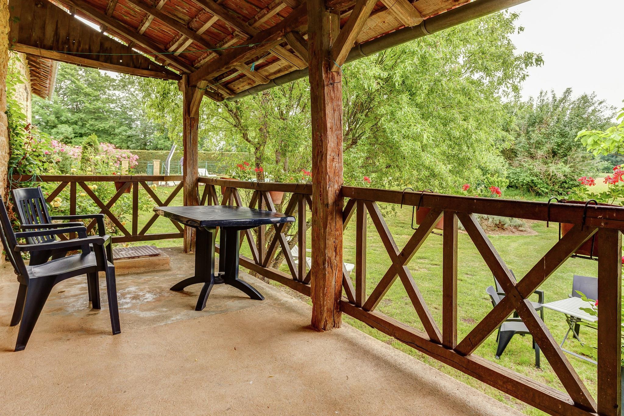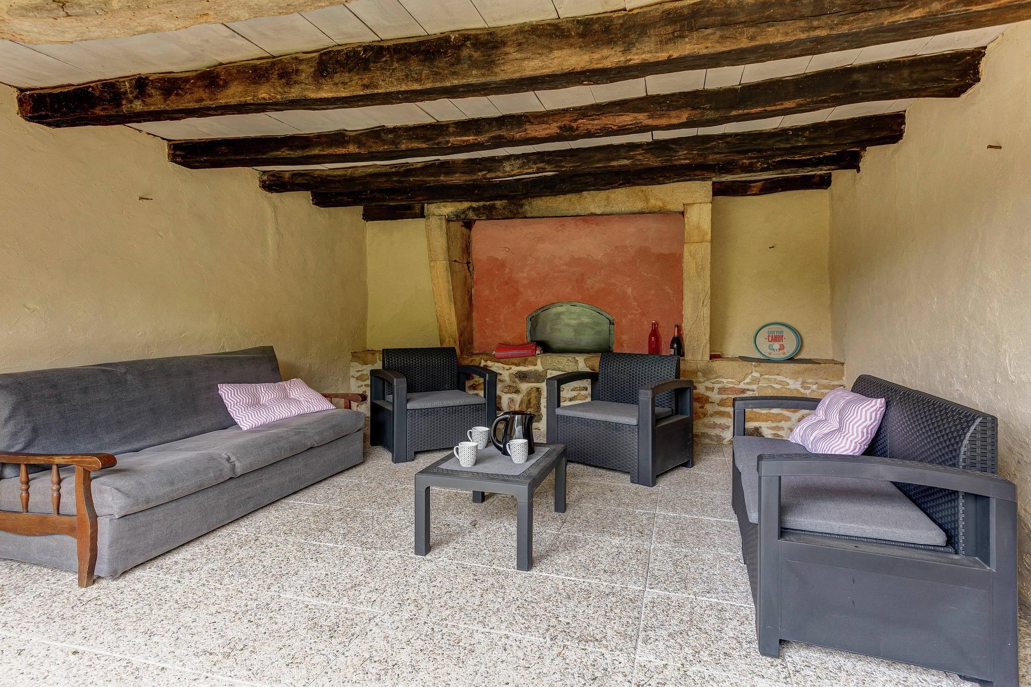 Beliggende i den fredelige landsby Le Moulinal-Haut, nær Besse, tilbyder dette charmerende feriehus til 7 gæster en perfekt blanding af komfort, privatliv og natur. Med tre soveværelser - inklusive et med dobbeltseng (160 x 190 cm) og håndvask, et med dobbeltseng og enkeltseng og et andet med dobbeltseng - passer layoutet til familier, venner eller grupper i flere generationer. Stuen har pejs, opholdsområde, spisebord, tv og dvd-afspiller, mens det fuldt udstyrede køkken omfatter gaskomfur, kaffemaskine, elkedel, ovn, mikroovn, opvaskemaskine og køleskab med fryser. Et badeværelse med bruser, håndvask og separat toilet samt varme og høj stol sikrer komfort for alle aldre. Træd udenfor for at nyde den private, indhegnede swimmingpool (10 × 5 m) - åben fra april til september - ved siden af en terrasse, have, grill og havemøbler. Kæledyr er velkomne! Med en sø kun 2 km væk, og tennis, butikker, restauranter og en offentlig pool inden for 5 km, er dette hjem en fantastisk base for at udforske Dordognes landskab