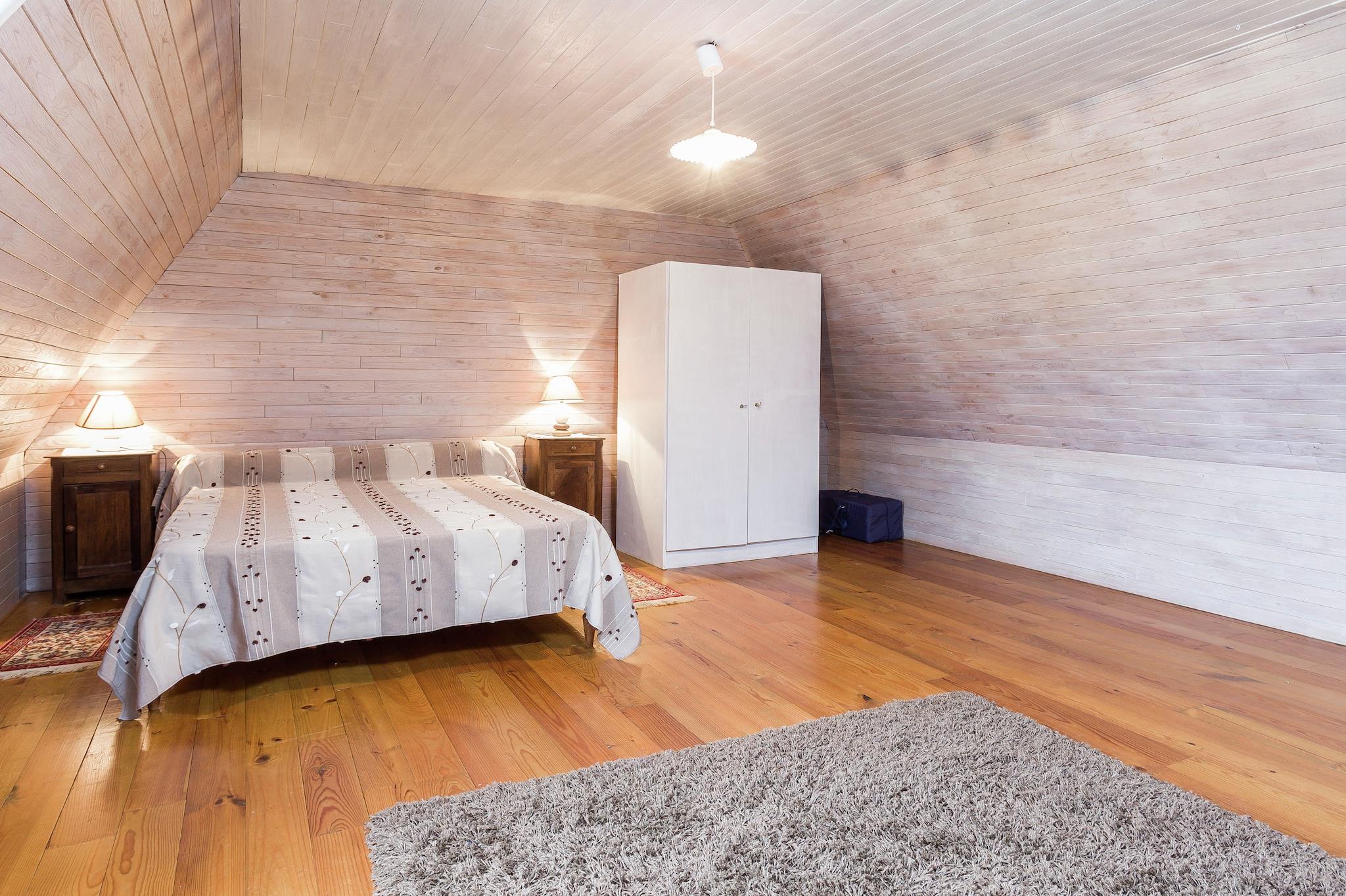 På 1. etage: (soveværelse(enkeltseng, dobbeltseng), soveværelse(dobbeltseng)) Stue(Fjernsyn, spisebord, pejs, sofahjørne, DVD-afspiller), Køkken(elkedel, komfur(gas), kaffemaskine, ovn, mikrobølgeovn, opvaskemaskine , køle-fryseskab), soveværelse(dobbeltseng(160 x 190 cm), håndvask), badeværelse(bruser, håndvask), toilet, varme, terrasse, have, havemøbler, grill, swimmingpool(privat, indhegnet, 10 x 5 m., opened from Apr upto and including Sep), barnestol