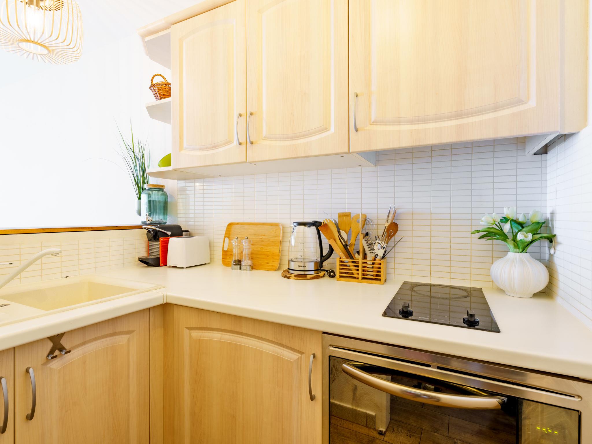 1-room studio 30 m2 on 3rd floor. Comfortable and beautiful furnishings: living/sleeping room with 1 double fold-away bed (140 cm, length 190 cm), TV (flat screen). Exit to the terrace. Small, open kitchen (2 hot plates, toaster, kettle, electric coffee machine, Capsules for coffee machine (Nespresso) extra, combination microwave). Shower, sep. WC. Electric heating. Terrace 7 m2. Terrace furniture. Beautiful view of the sea. Facilities: washing machine, iron, hair dryer. Internet (WiFi, free). Please note: fridge without freezer, non-smokers only. Smoke alarm. Offer by a private individual according to Art. 155, IV of CGI. 6412200116559